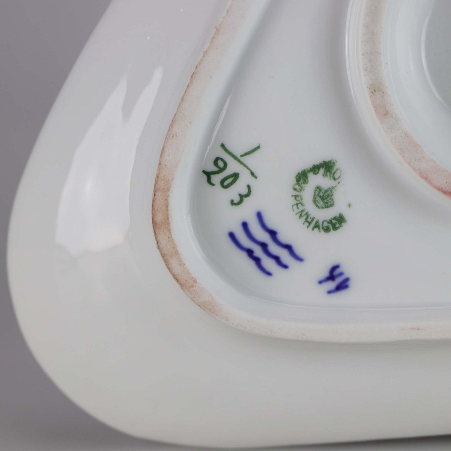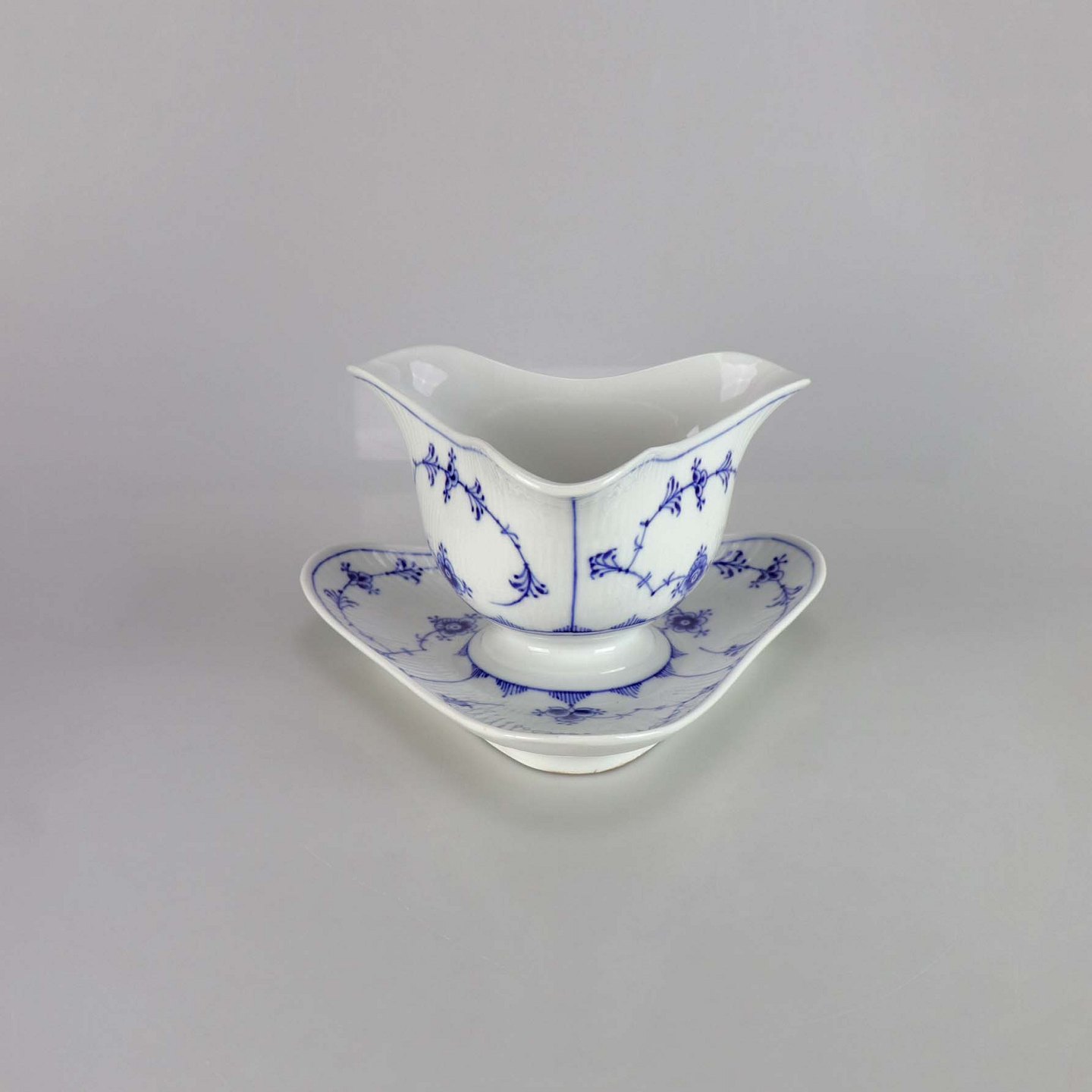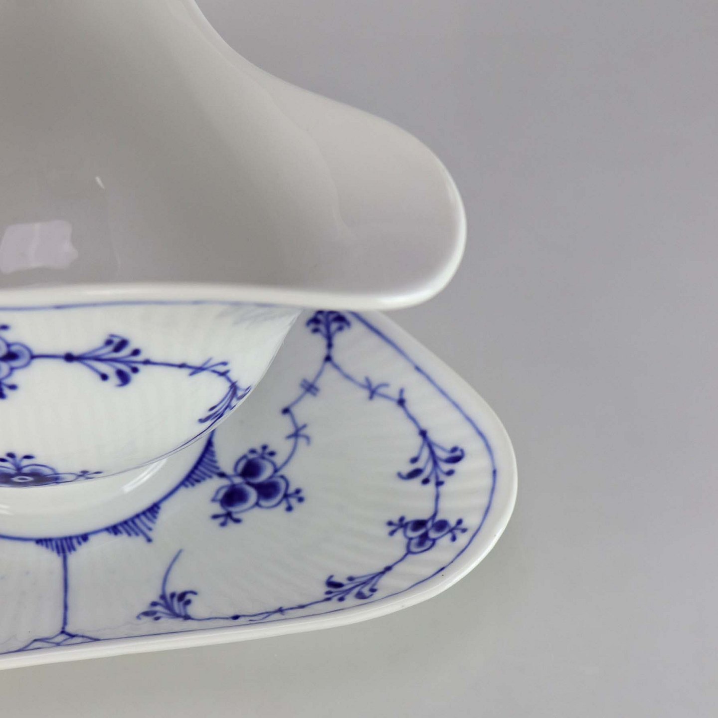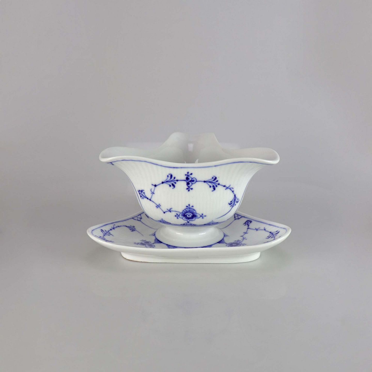 Kongeligt musselmalet riflet sovseskål no 1/203