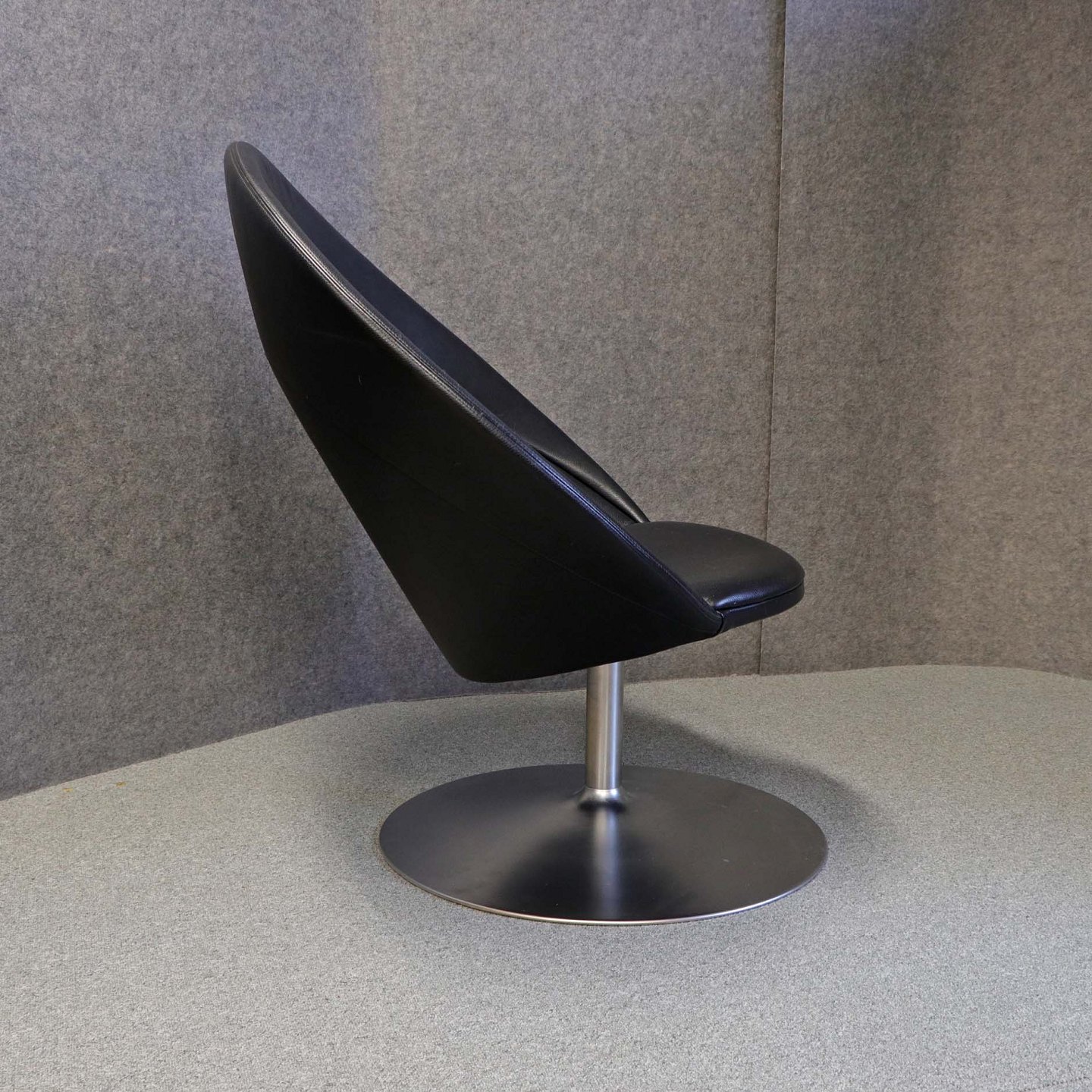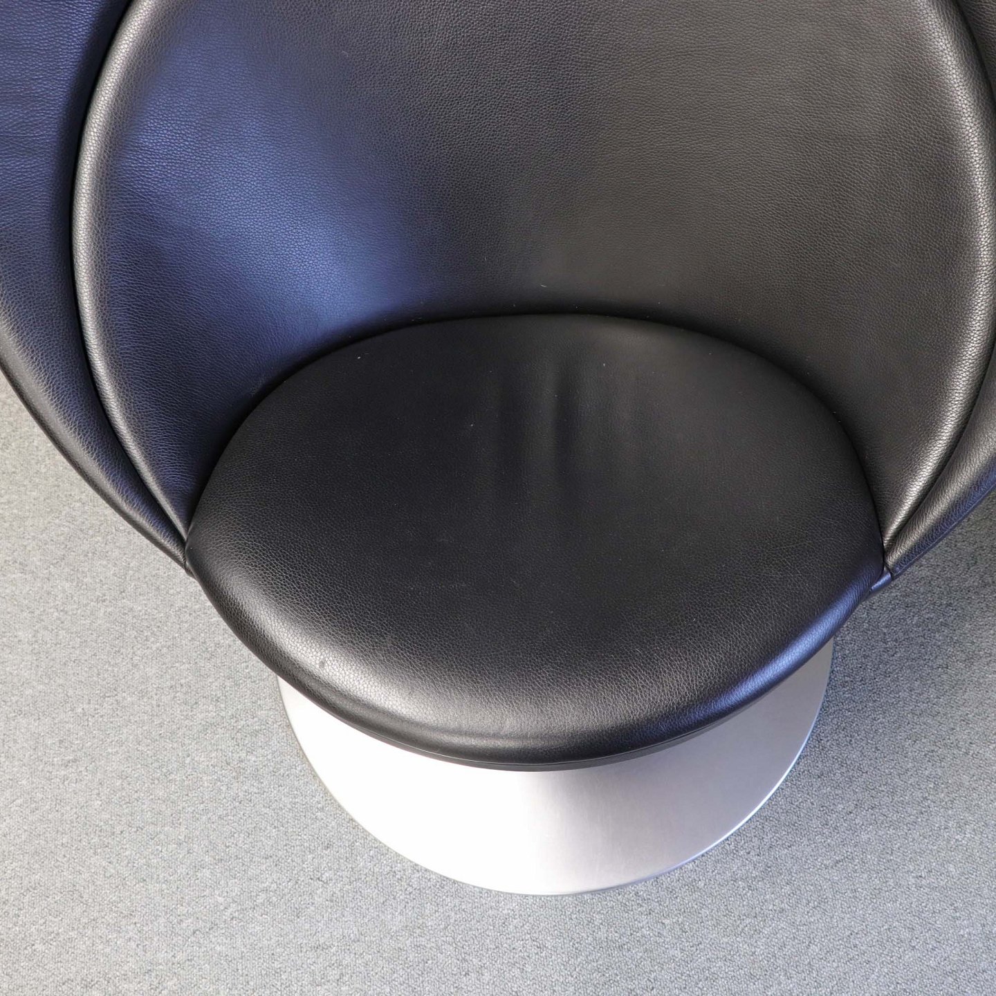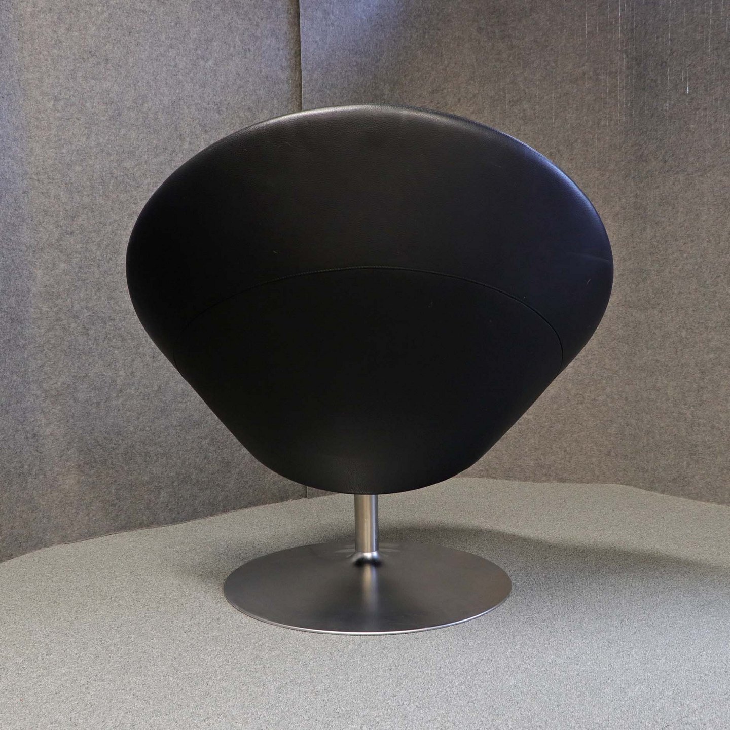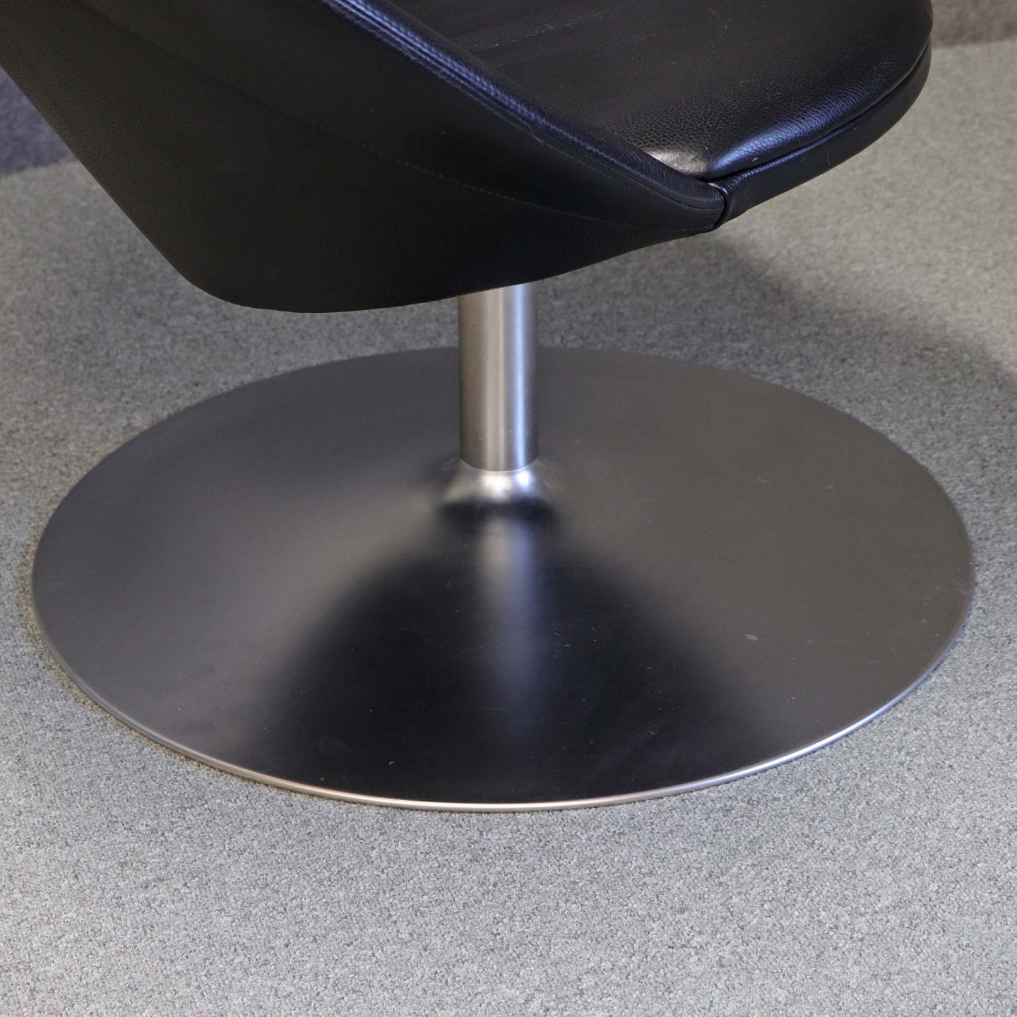 Stol med sort lædersæde på mat poleret stål fod