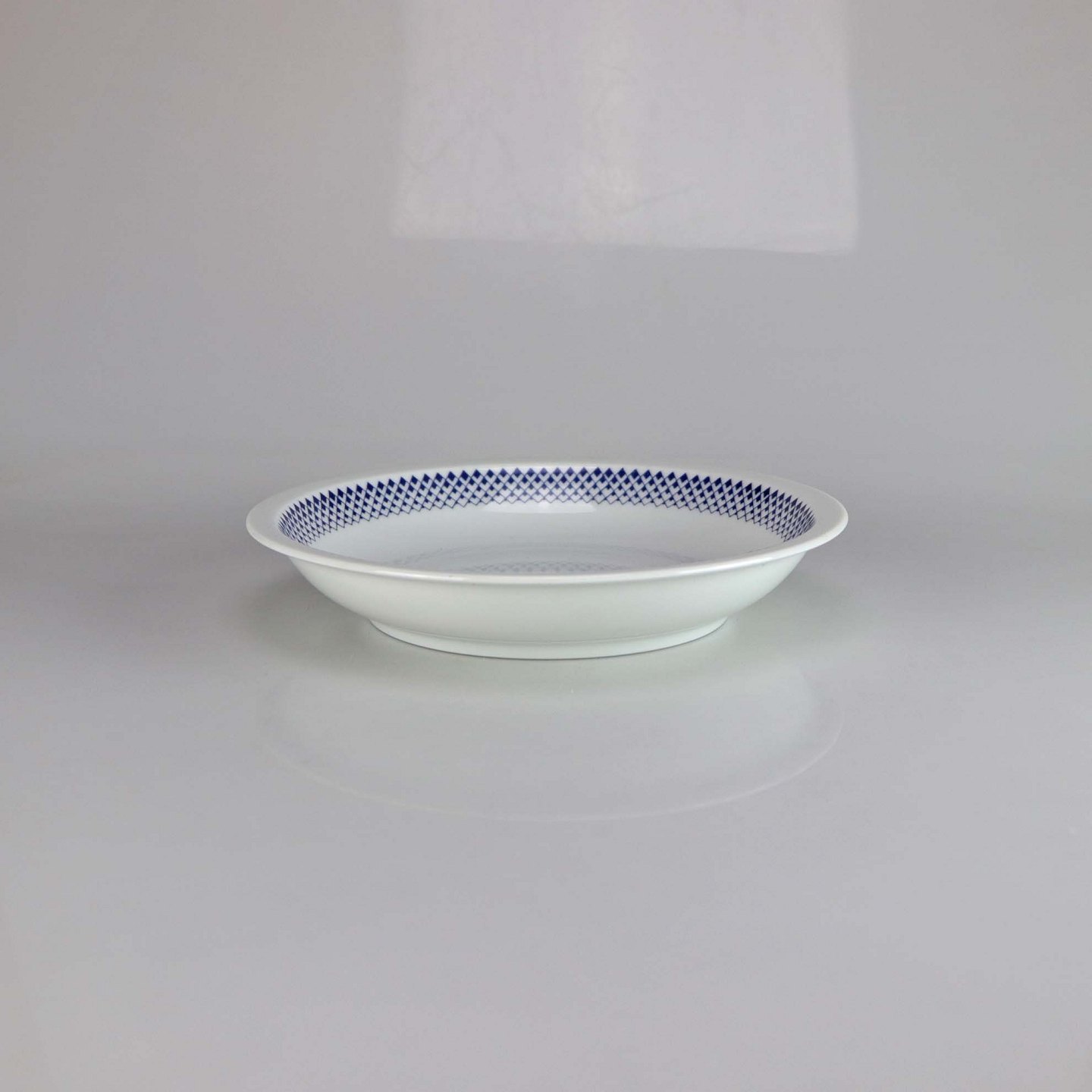 Glat hvidt porcelæn med mørkeblå rombe dekoration
