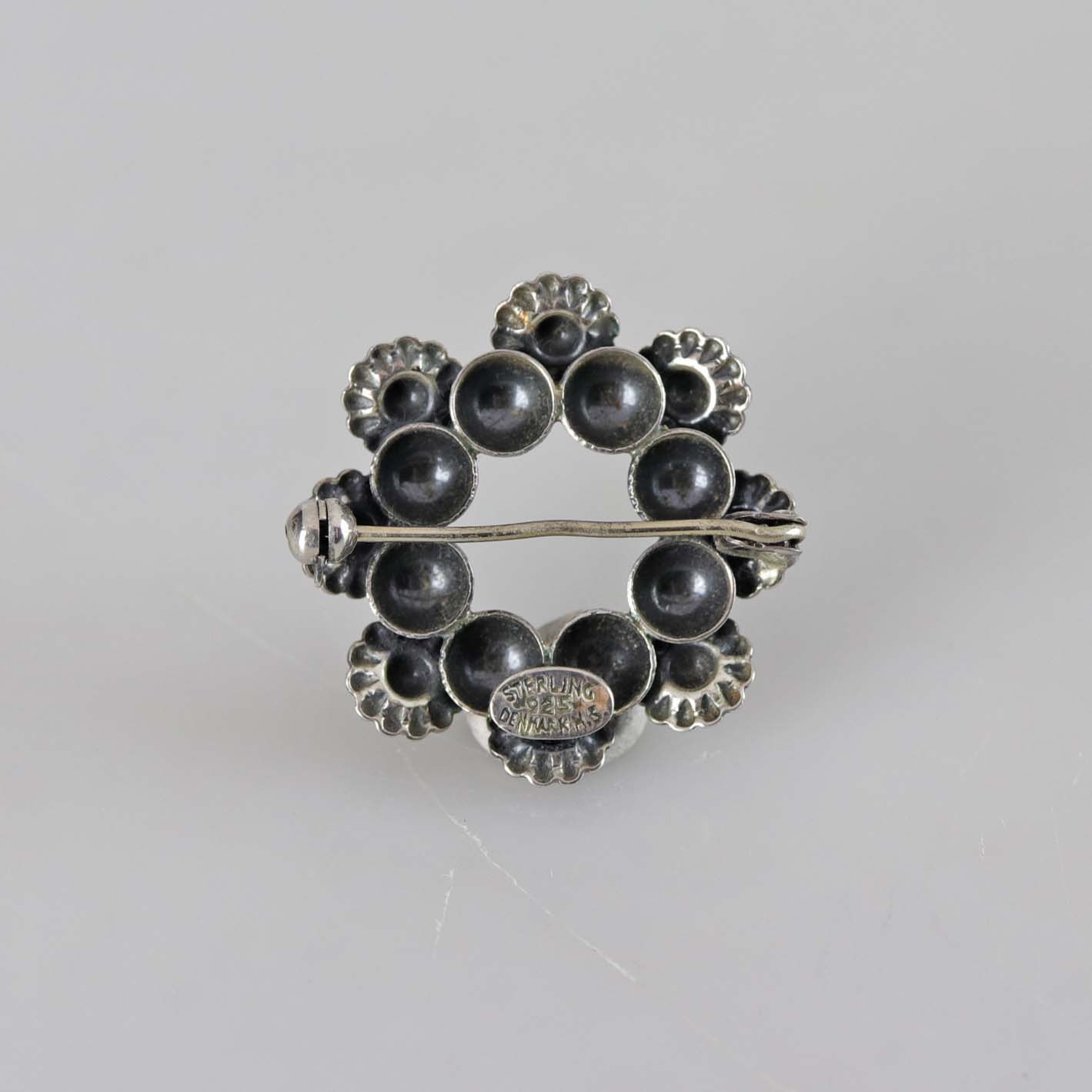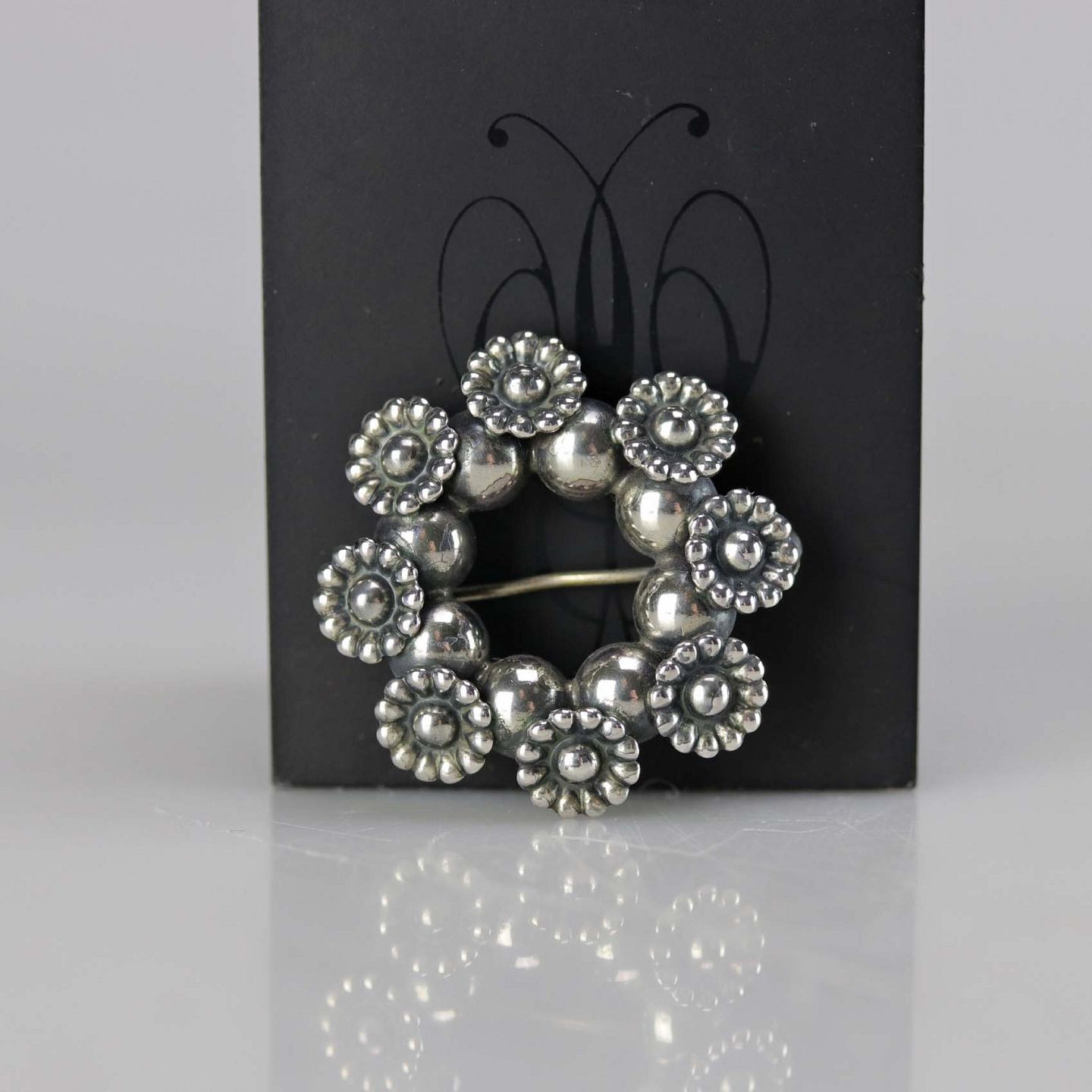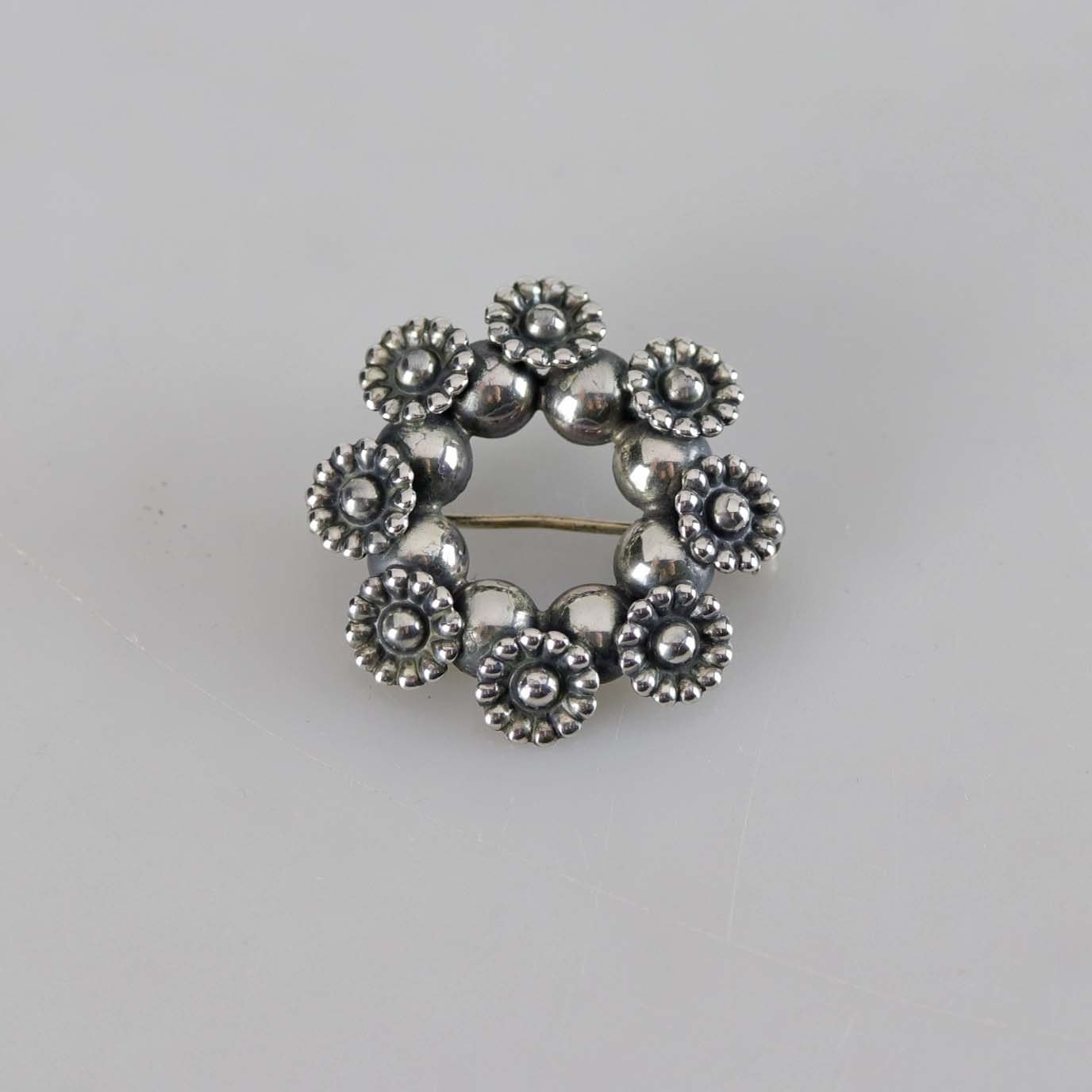 Broche i sterling sølv med motiv af krans med blomster