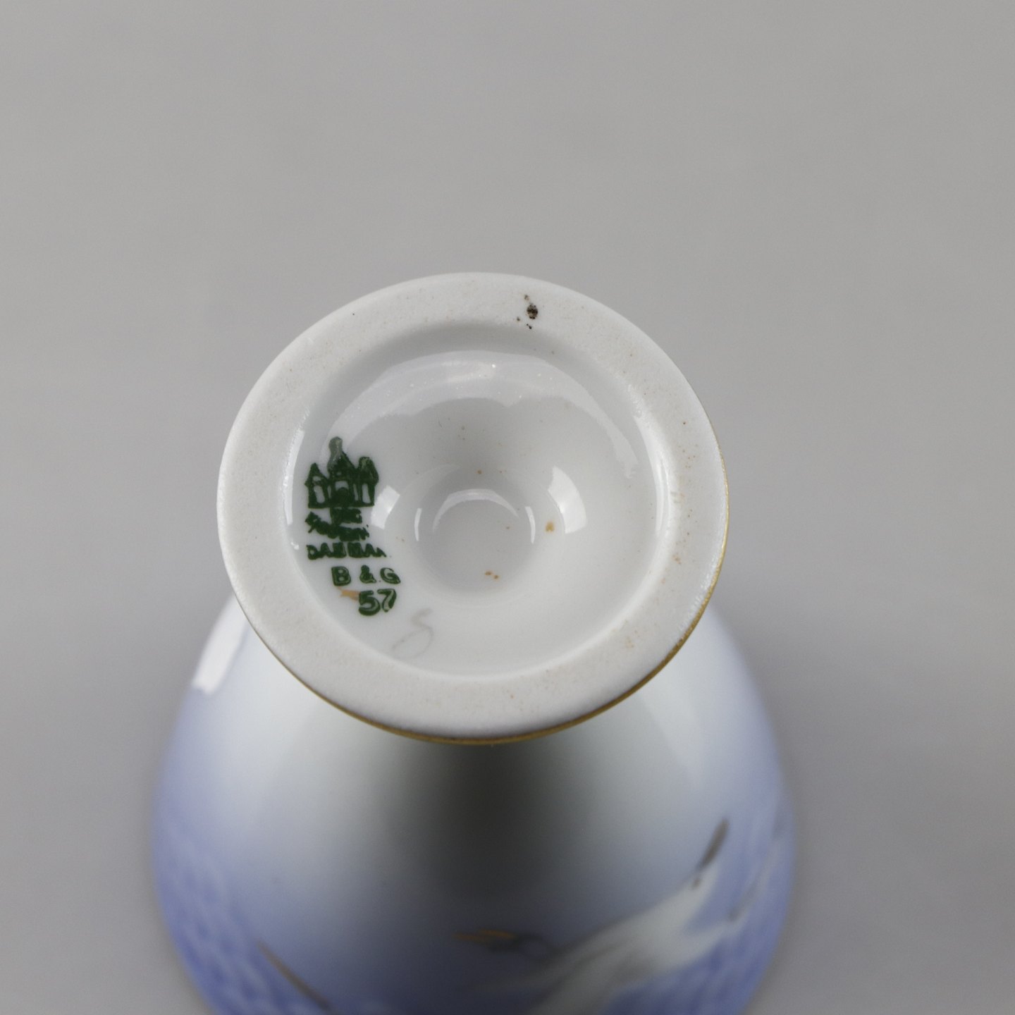 Porcelæn med skelform i gradueret blå nuancer med guldkant samt motiv af måge