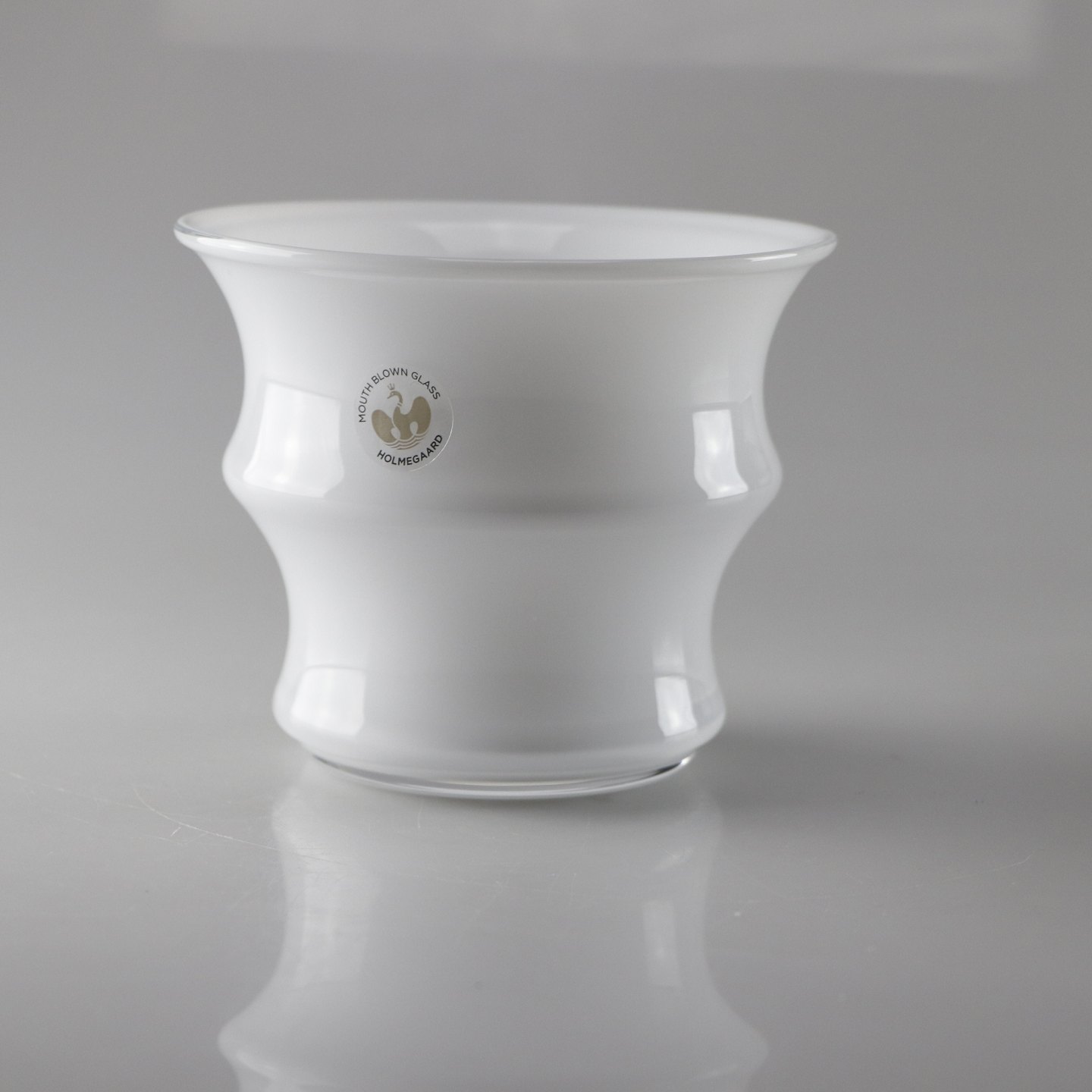 Holmegård vase, opalhvid med grønt omfangsglas. So