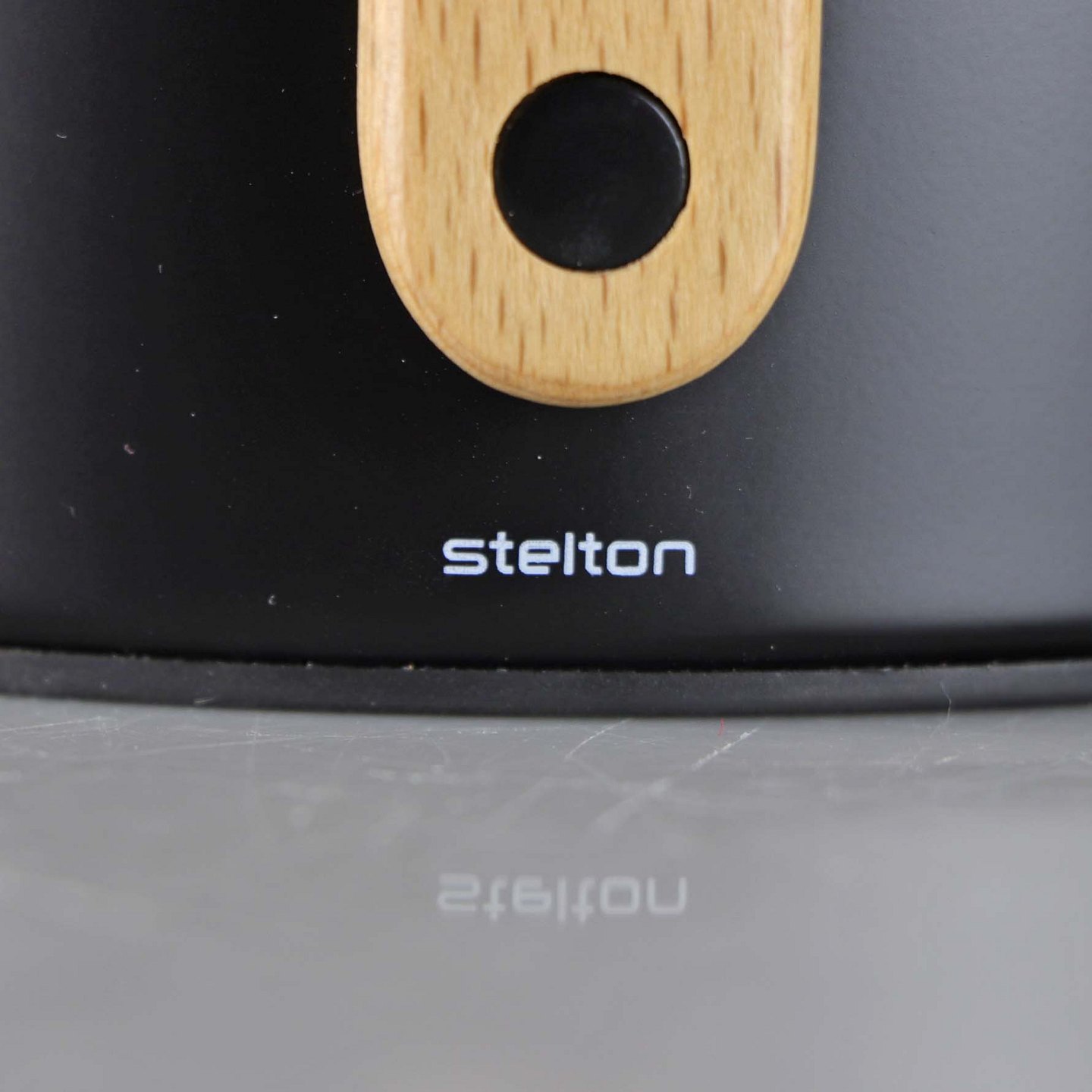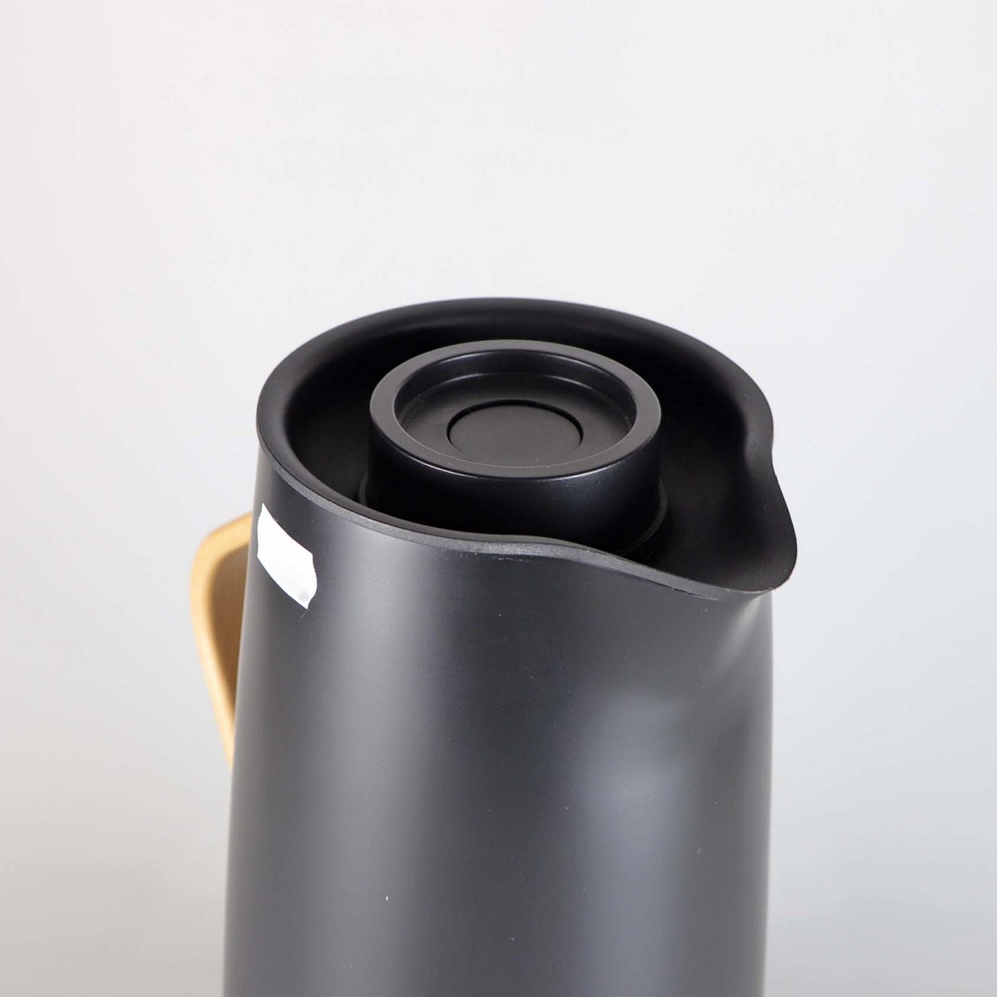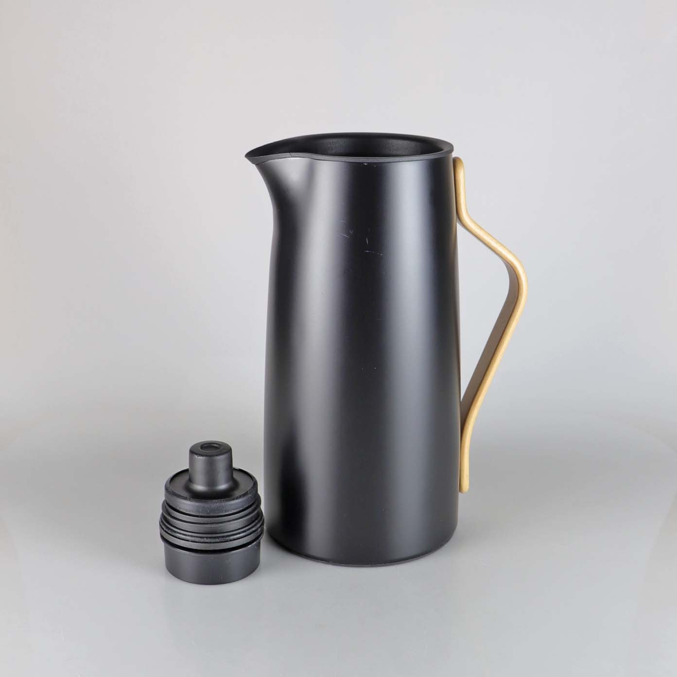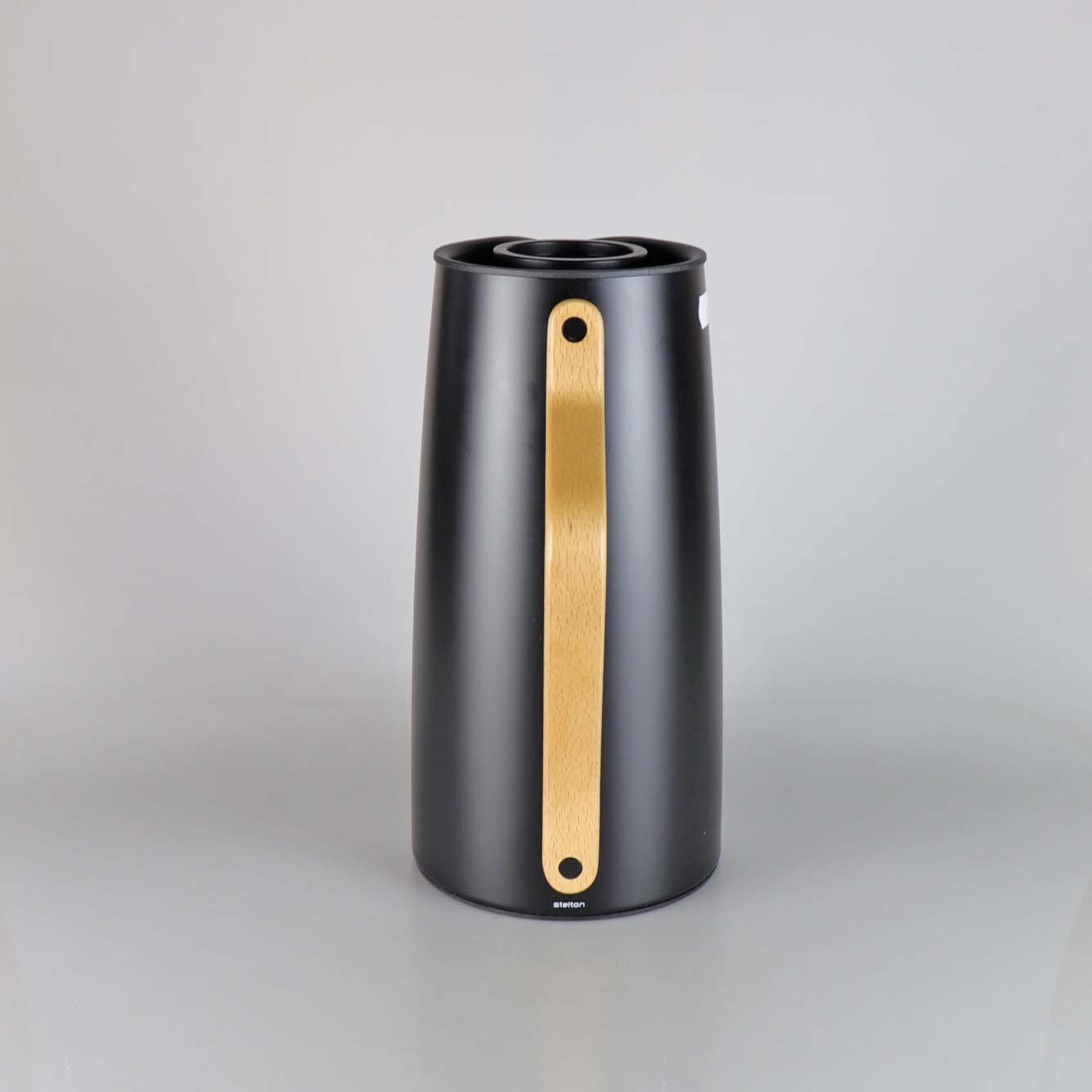 Kande i rustfrit stål med matsort coating og hank i lakeret bøg