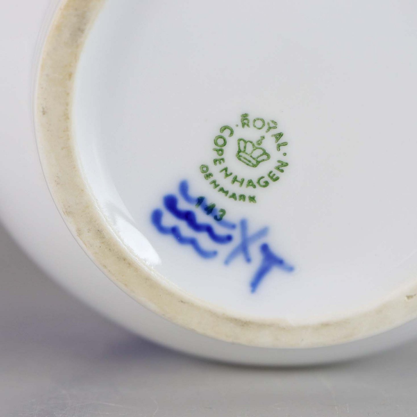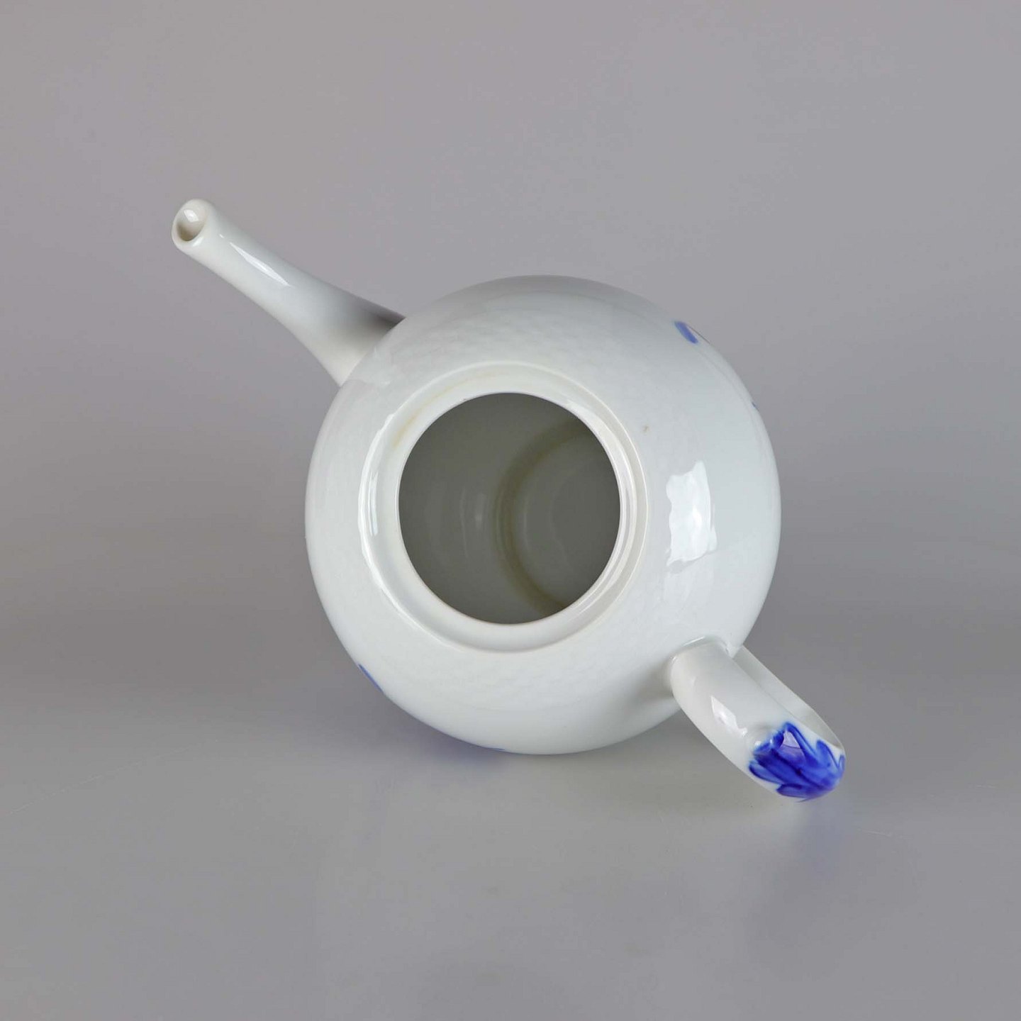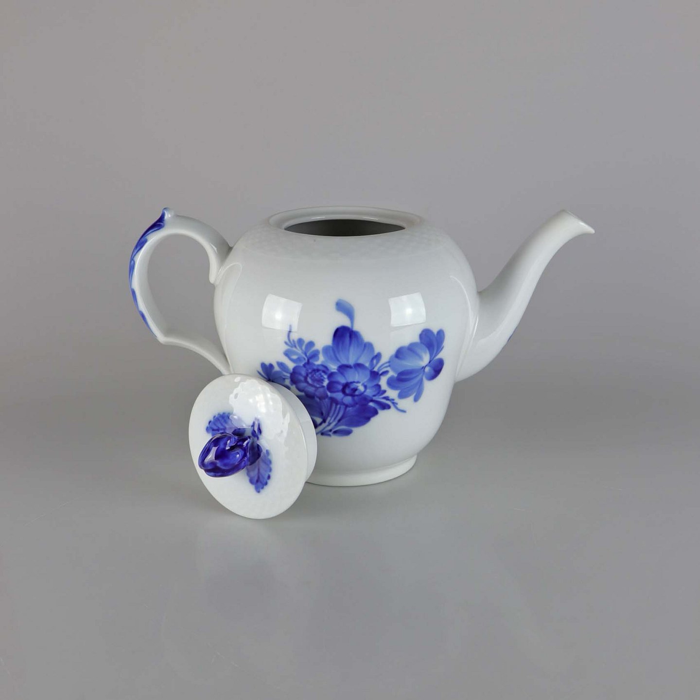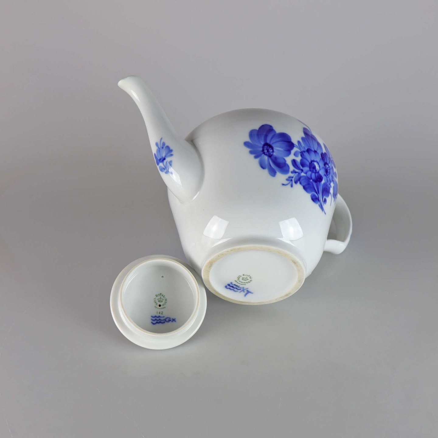 Kongelig tekande fra stellet Blå blomst flettet. Låg no 142. Kande no 143
