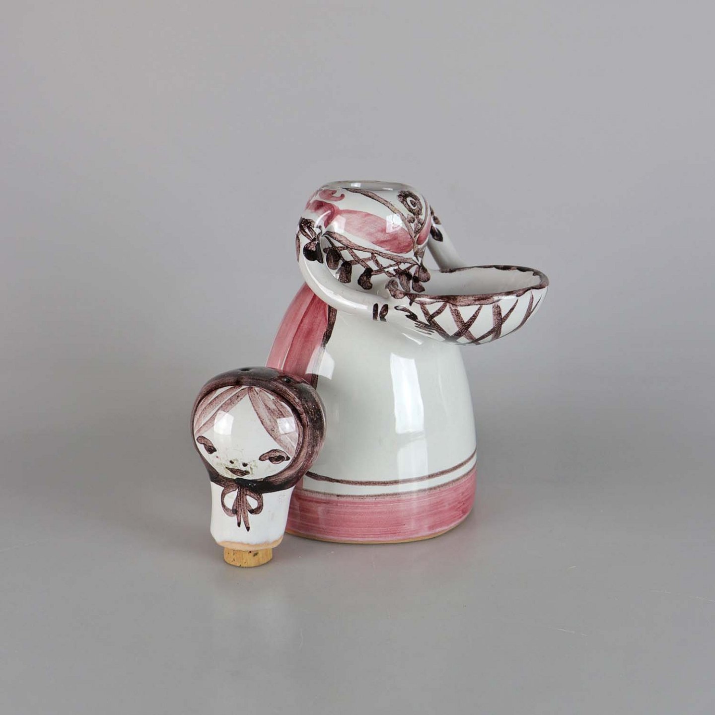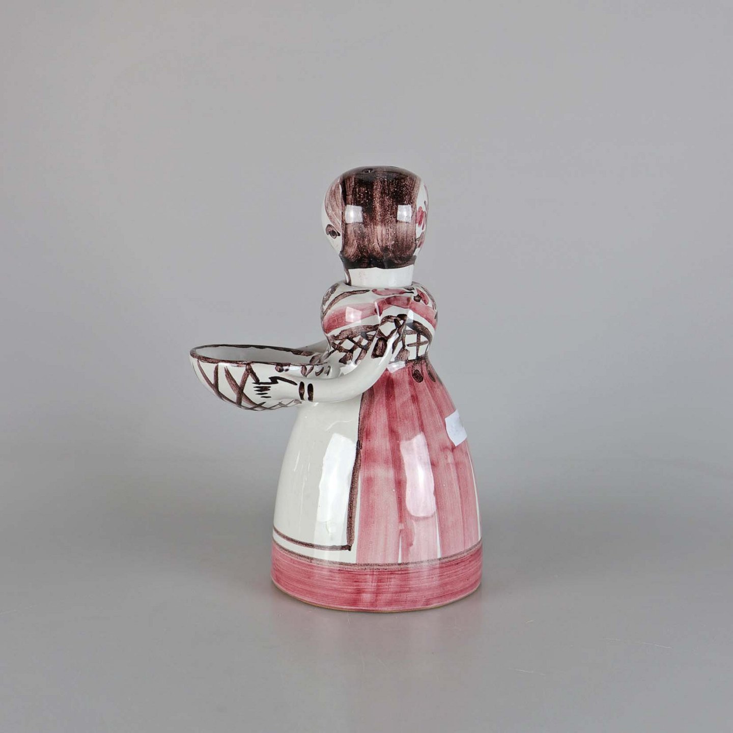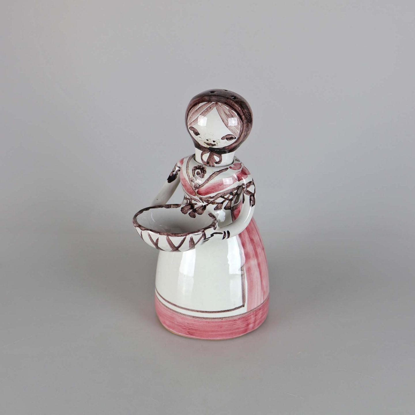 Håndlavet keramik kvinde i lys rød kjole. Lavet som saltkar og peberbøsse i et.