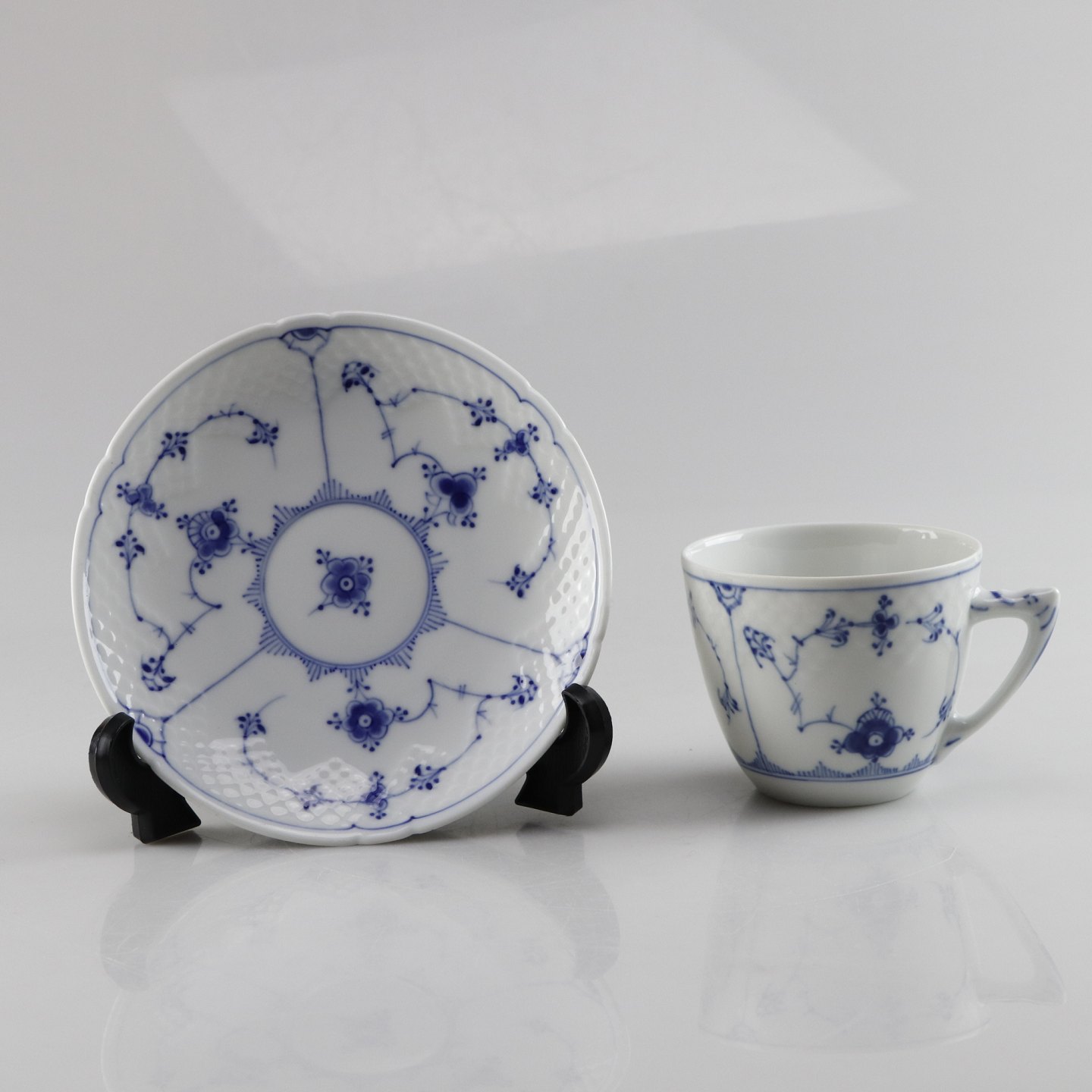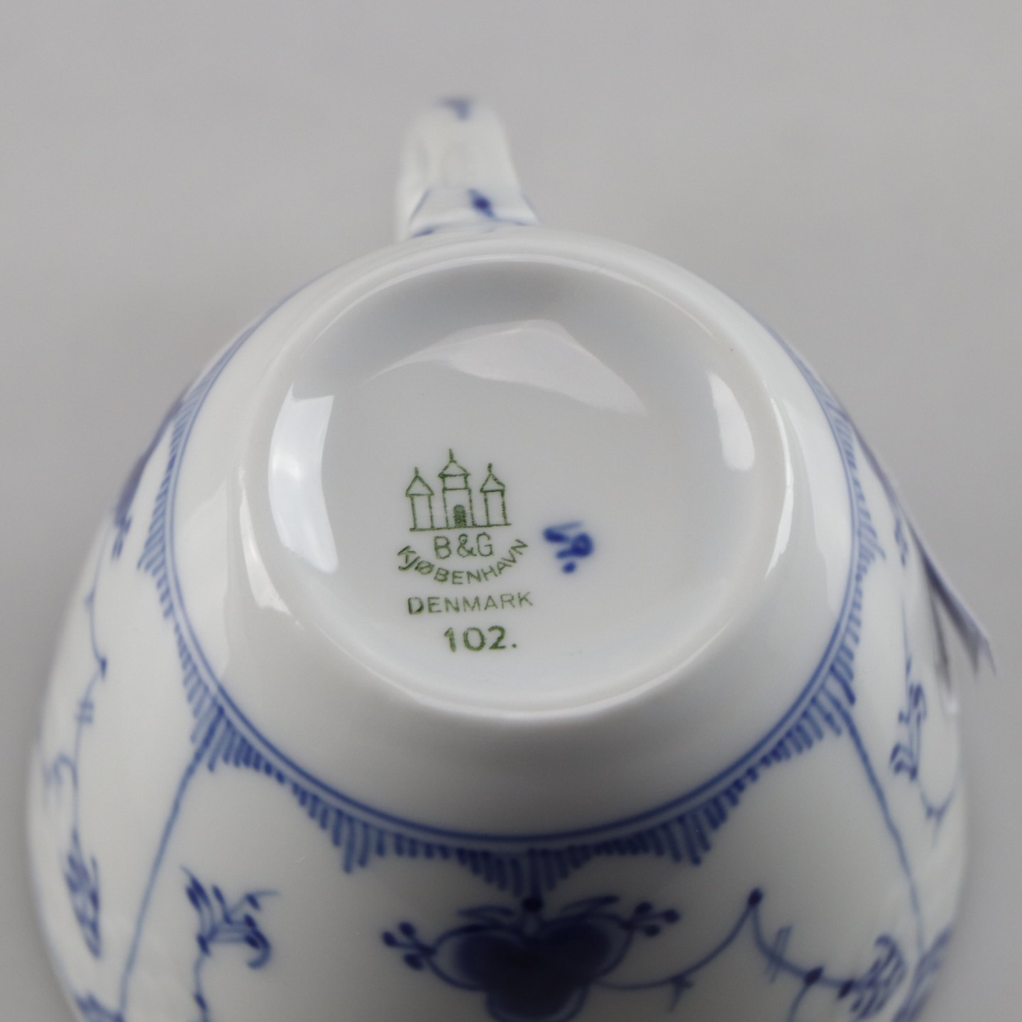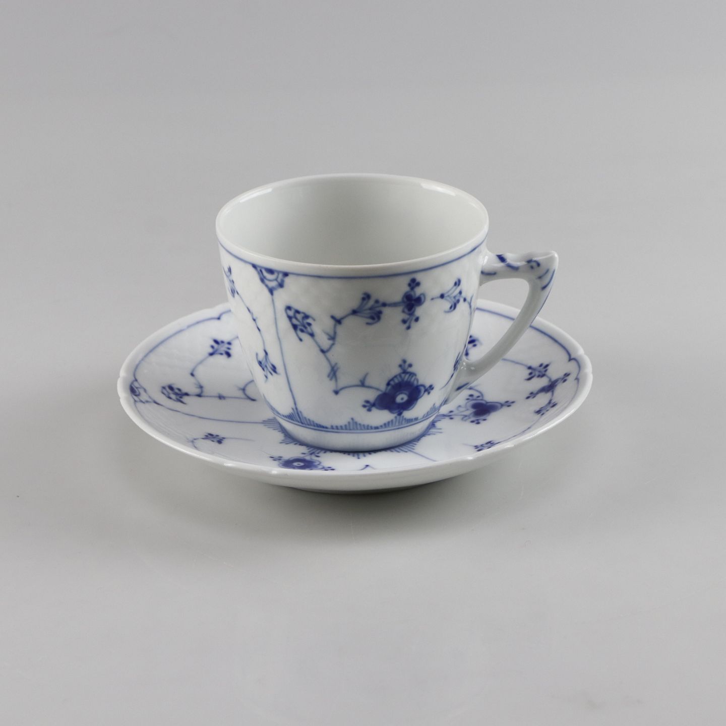 Kop og underkop i porcelæn fra stellet Blåmalet no. 102