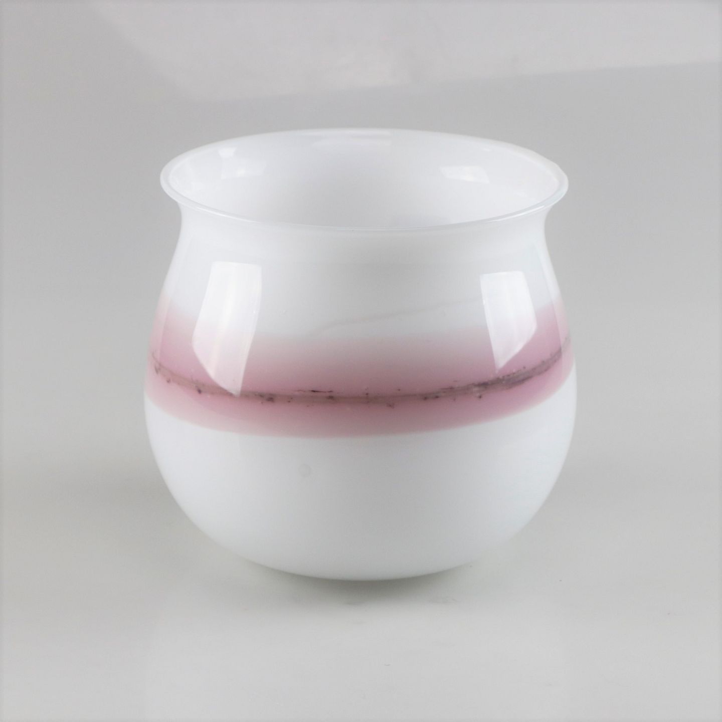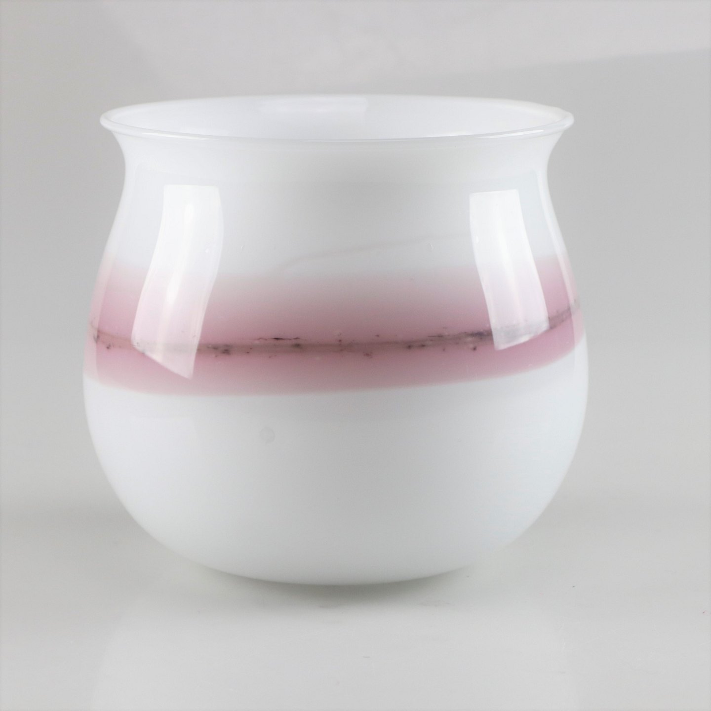 Mundblæst i opal hvidt glas med indlagt rosa farve