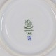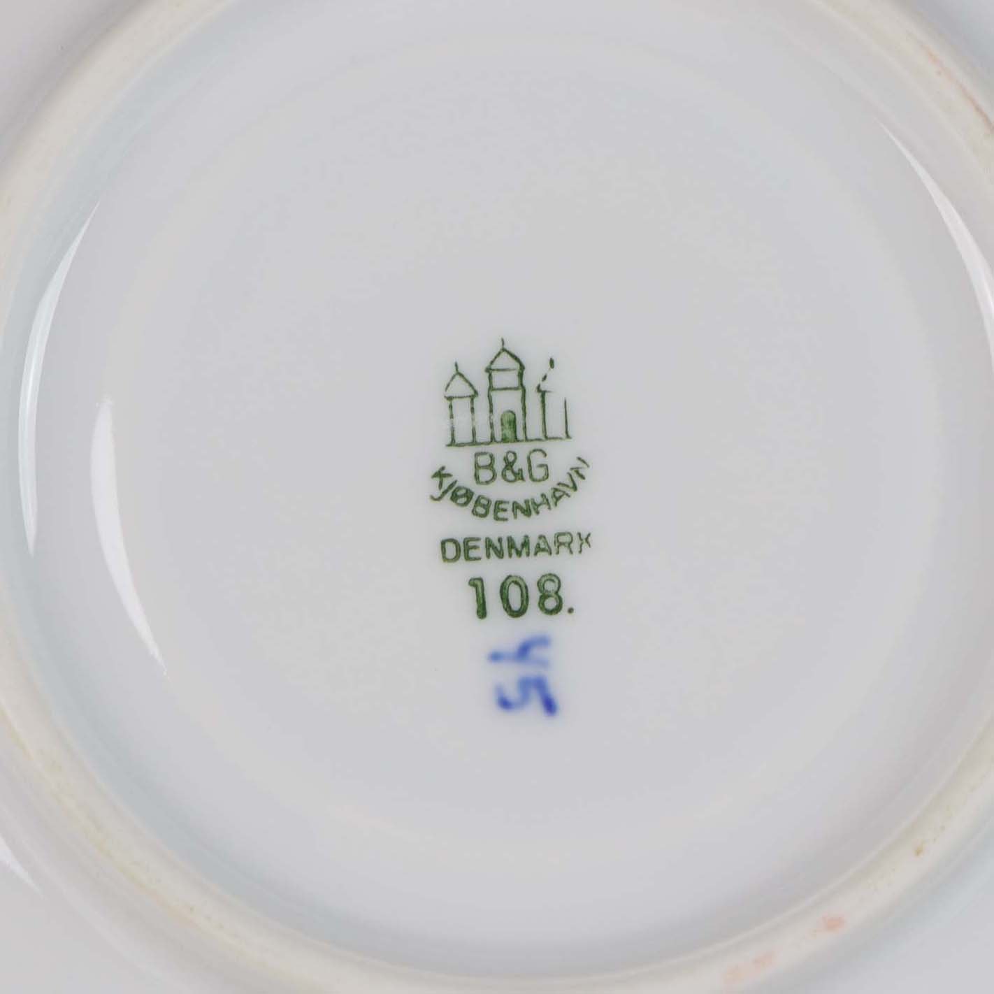 Kop i hvidt skælformet porcelæn med blå motiver af blomster og sommerfugle.