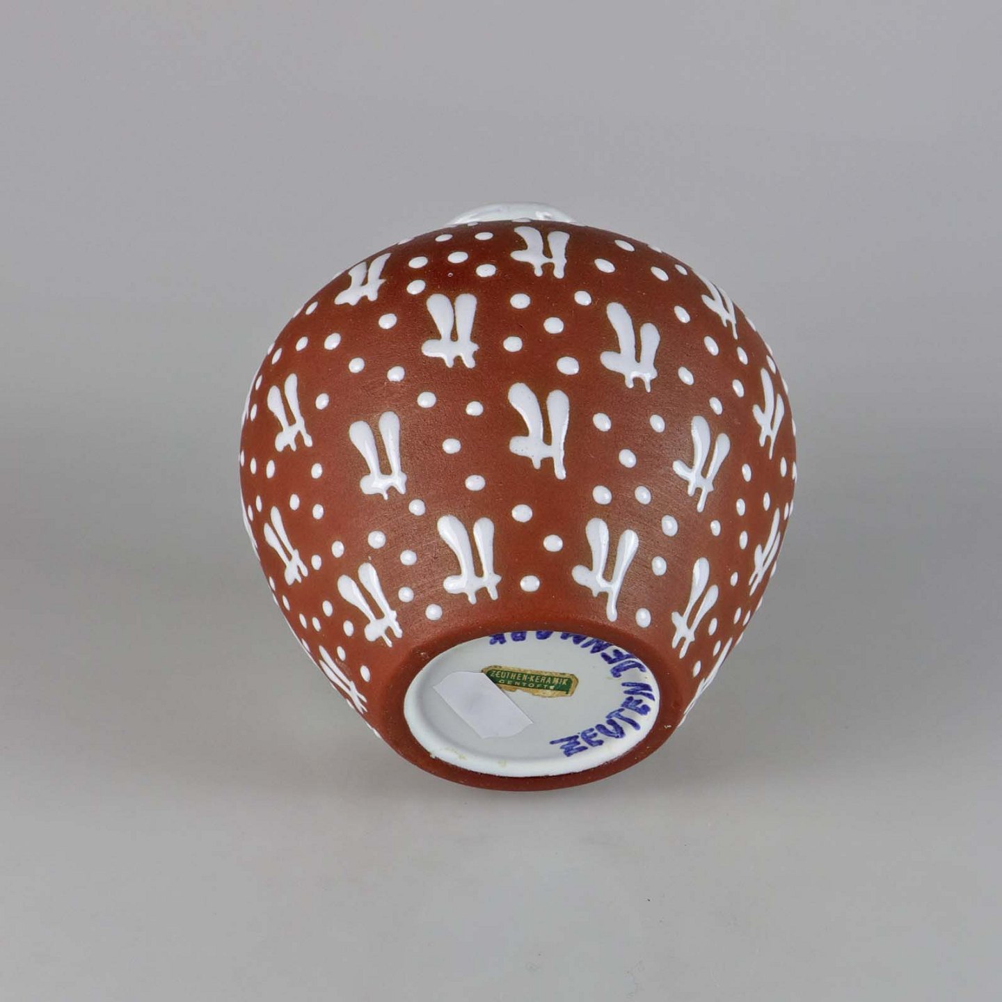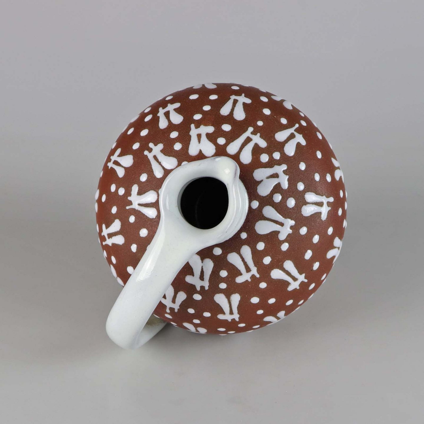 Zeuten kande i rødbrunt keramik med hvidt motiv