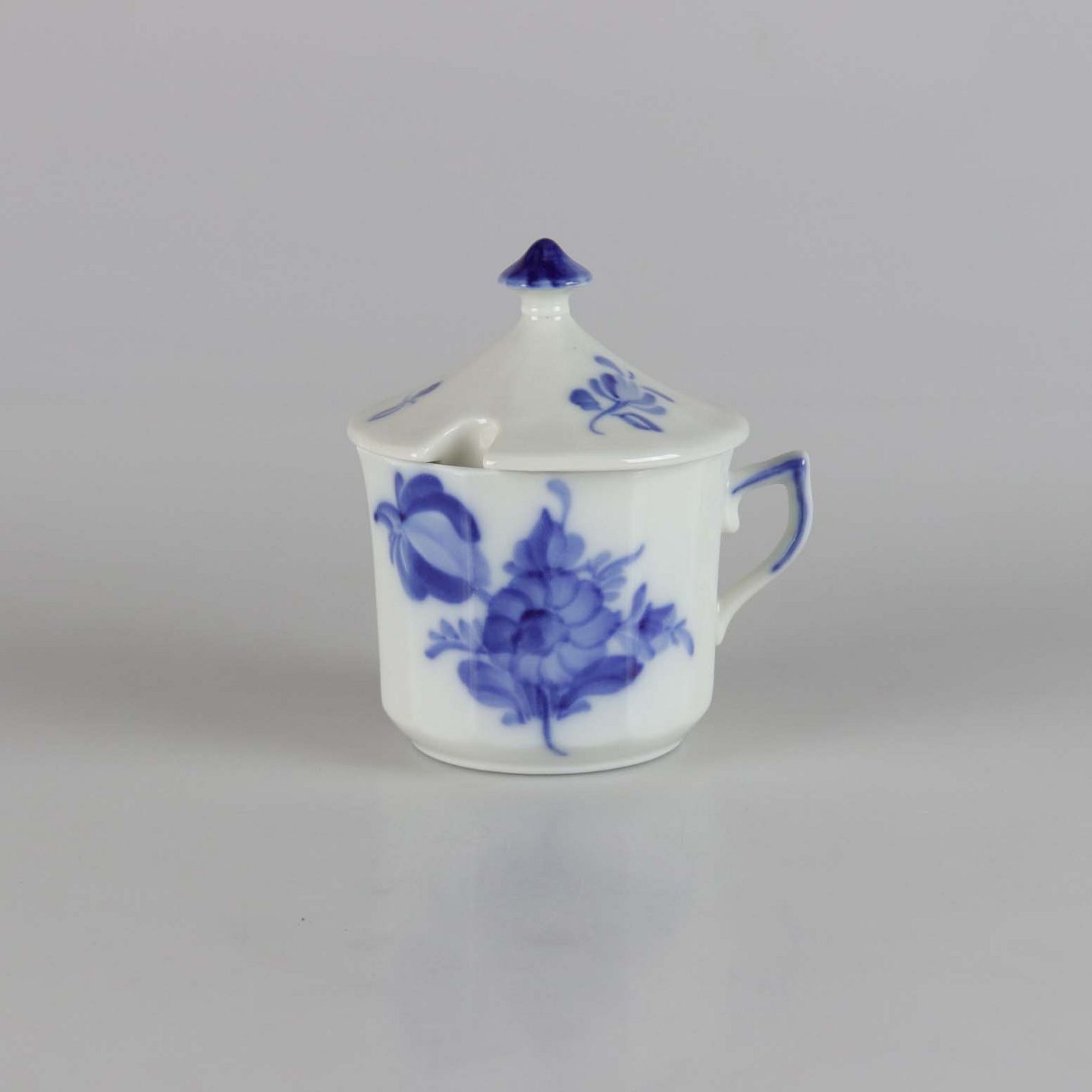 Sennepskrukke i porcelæn fra stellet Blå Blomst kantet nr. 10/8586 og 10/8586-70