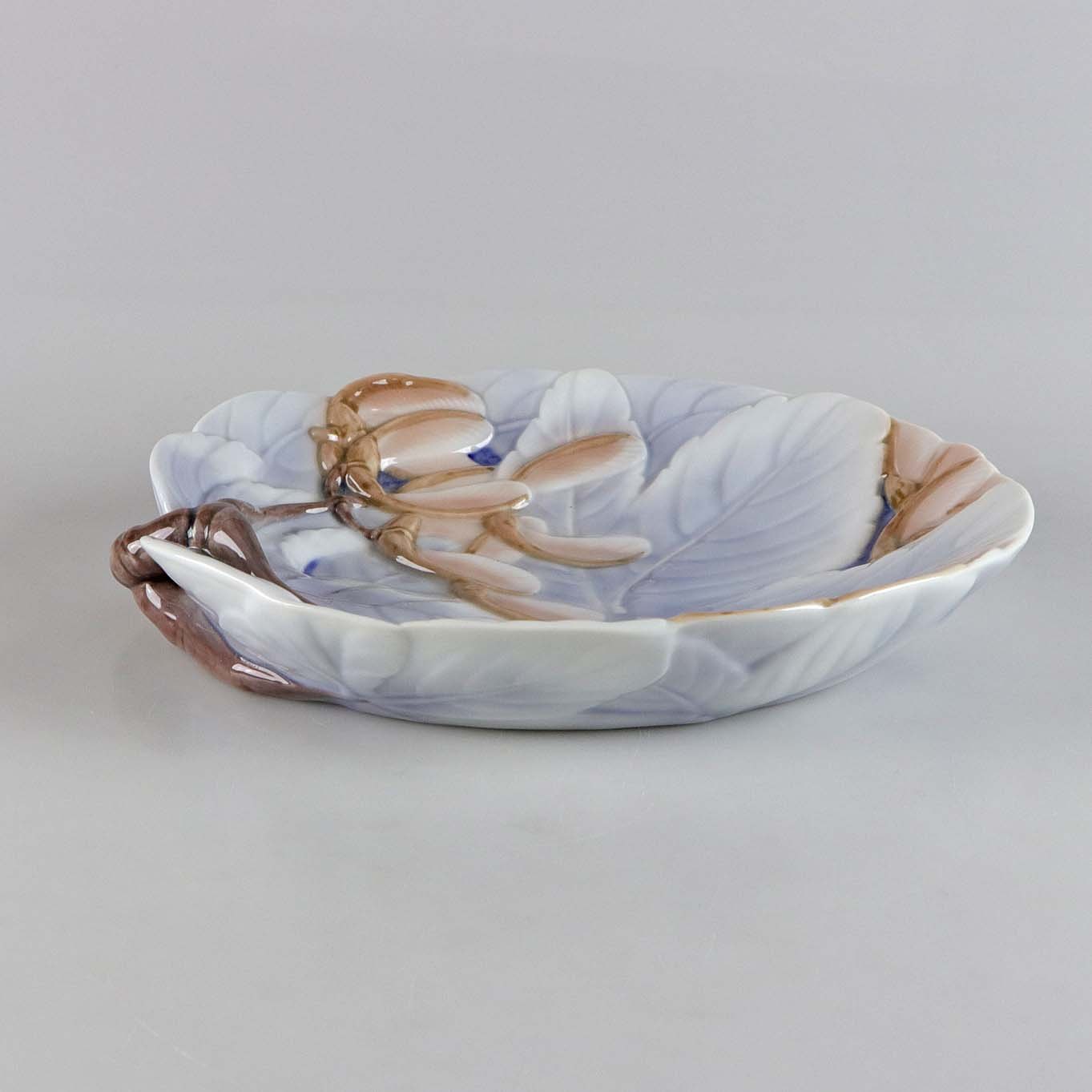 Fad i porcelæn med motiv af ahorn blade og frø no 1113