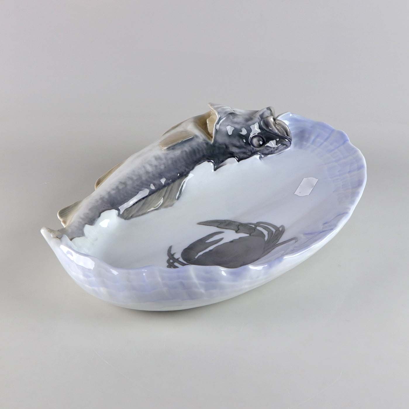 Fad i porcelæn med motiv af torsk og krabbe no 1/481