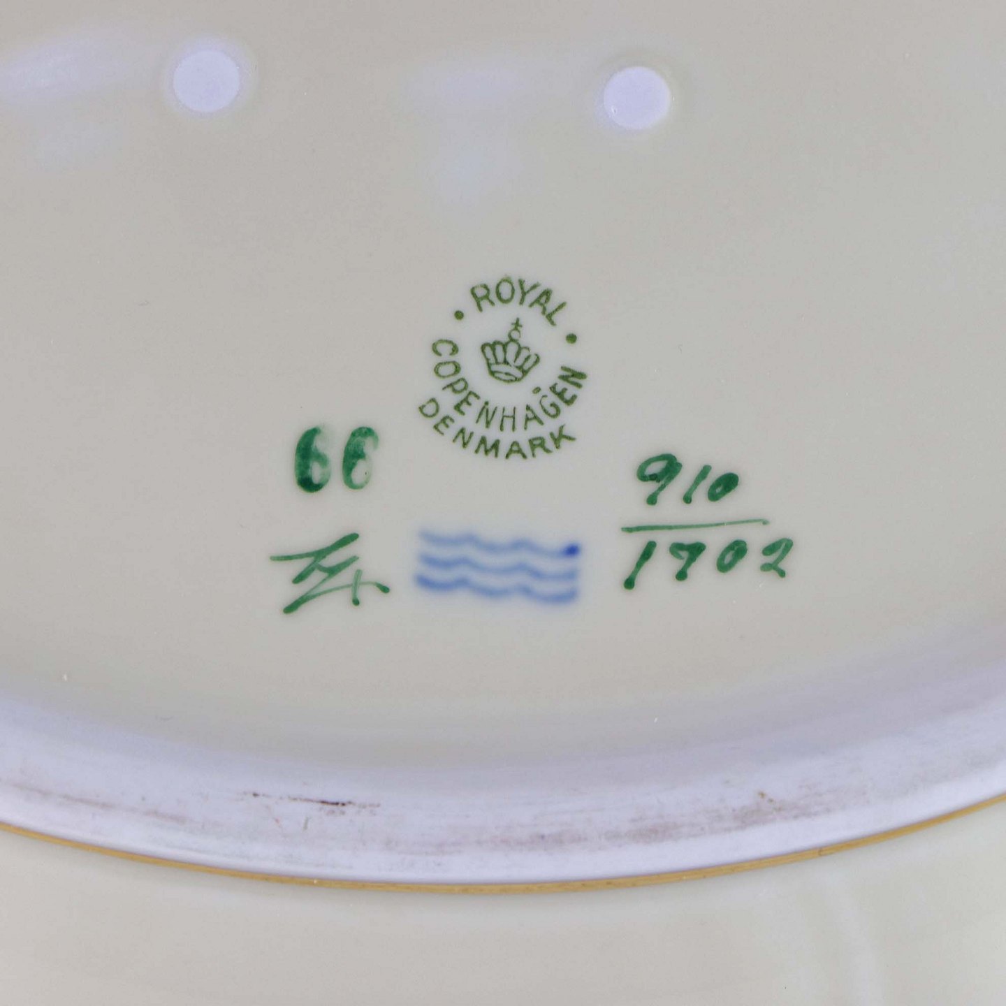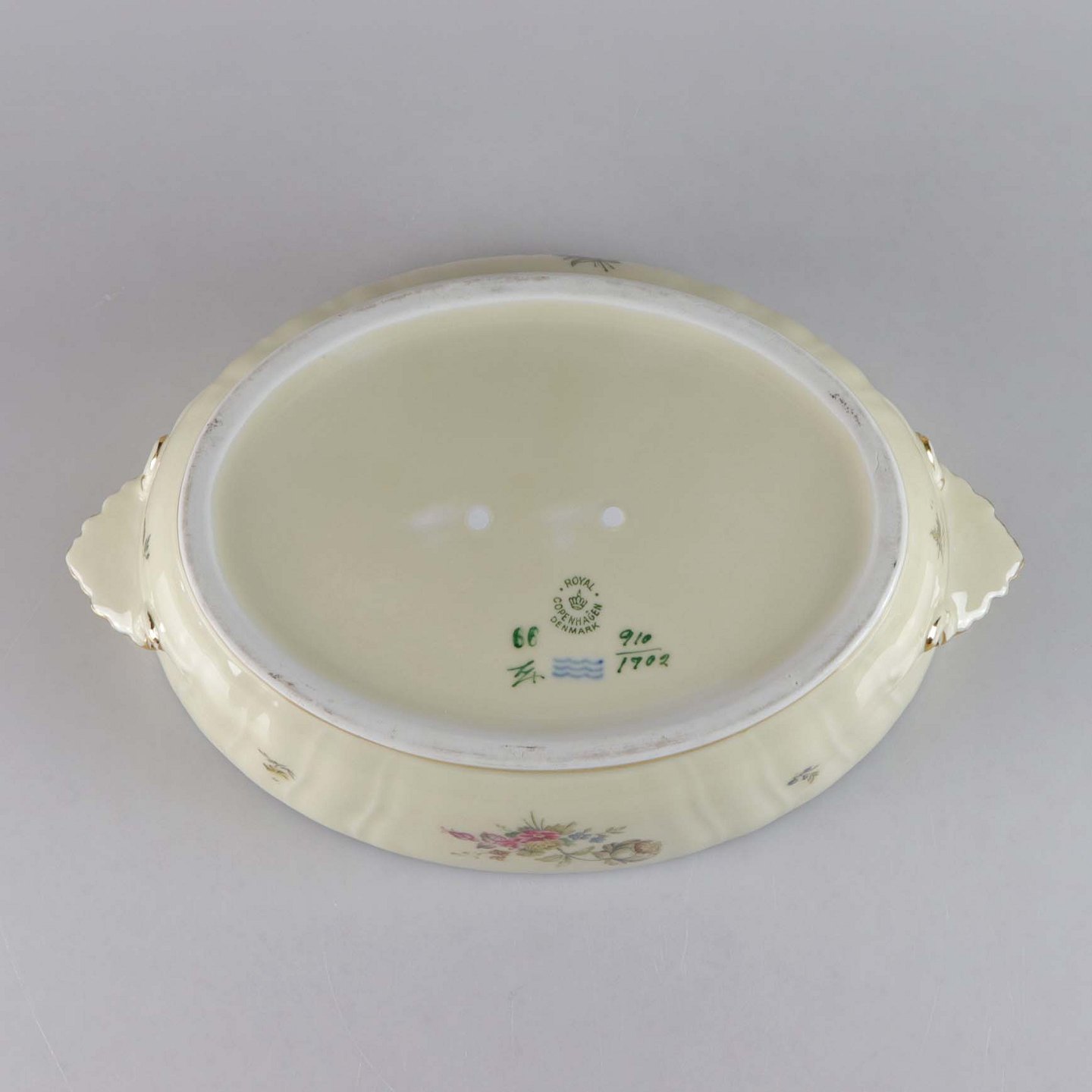 Lågfad i cremefarvet porcelæn med flettet og forgyldt kant samt overførte blomstermotiver.