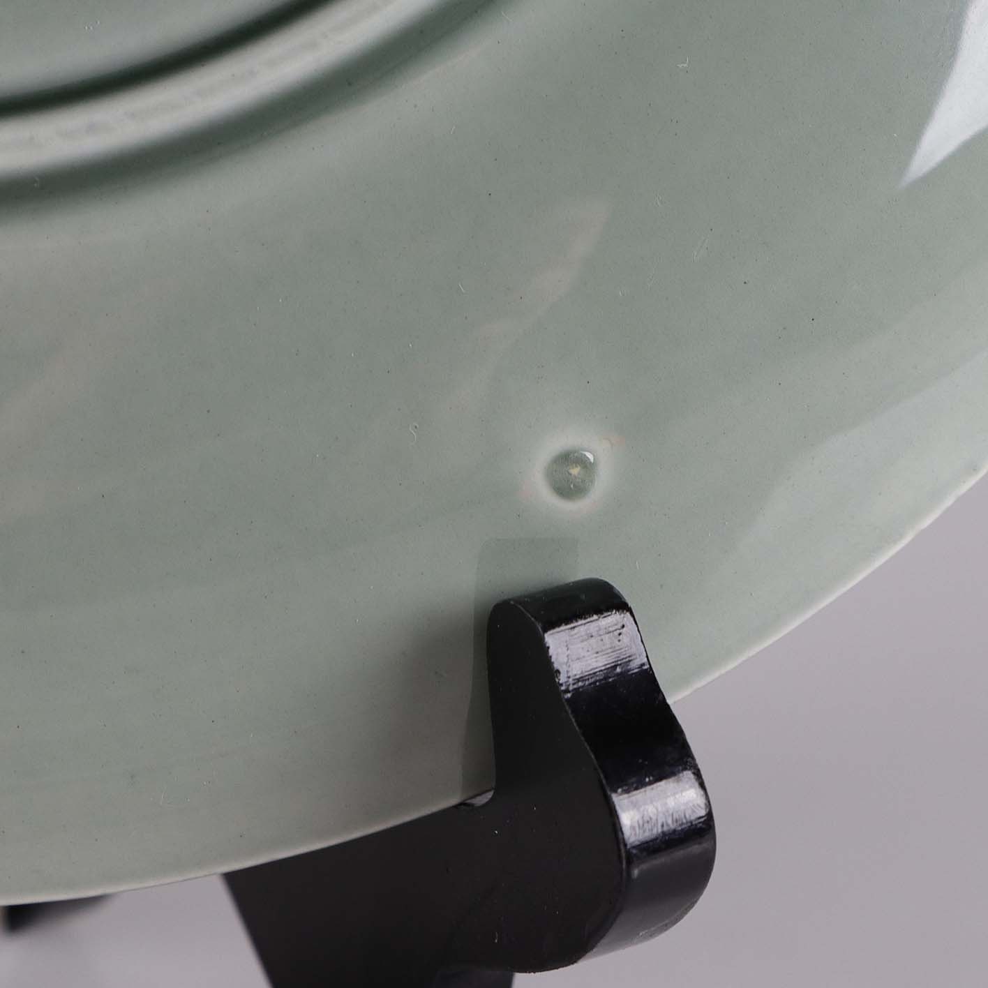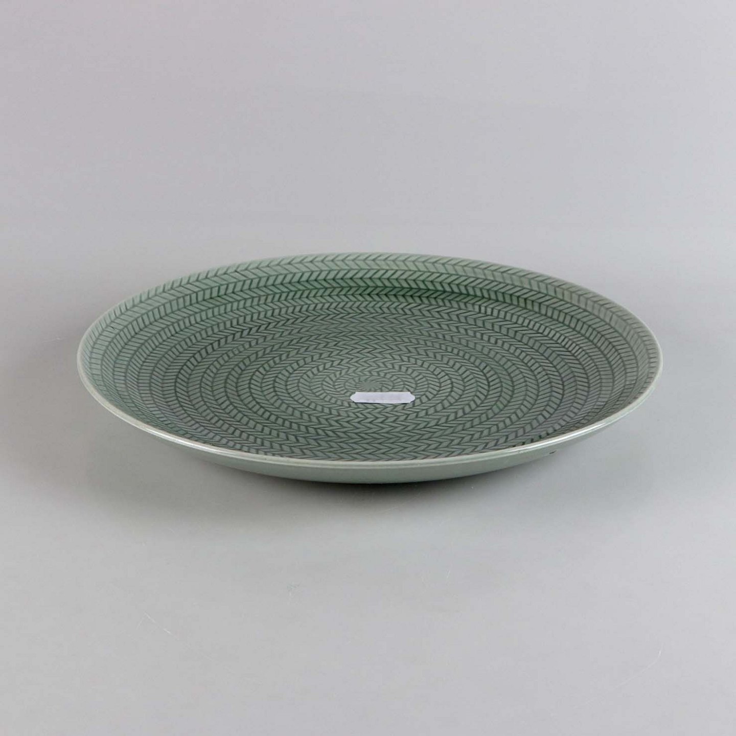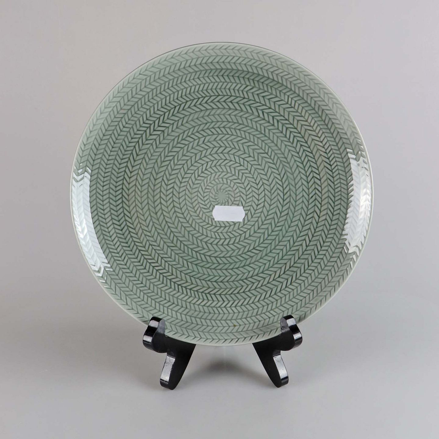 Sjælden set tallerken i fajance fra stellet Blå Eld i den grå farve no 61