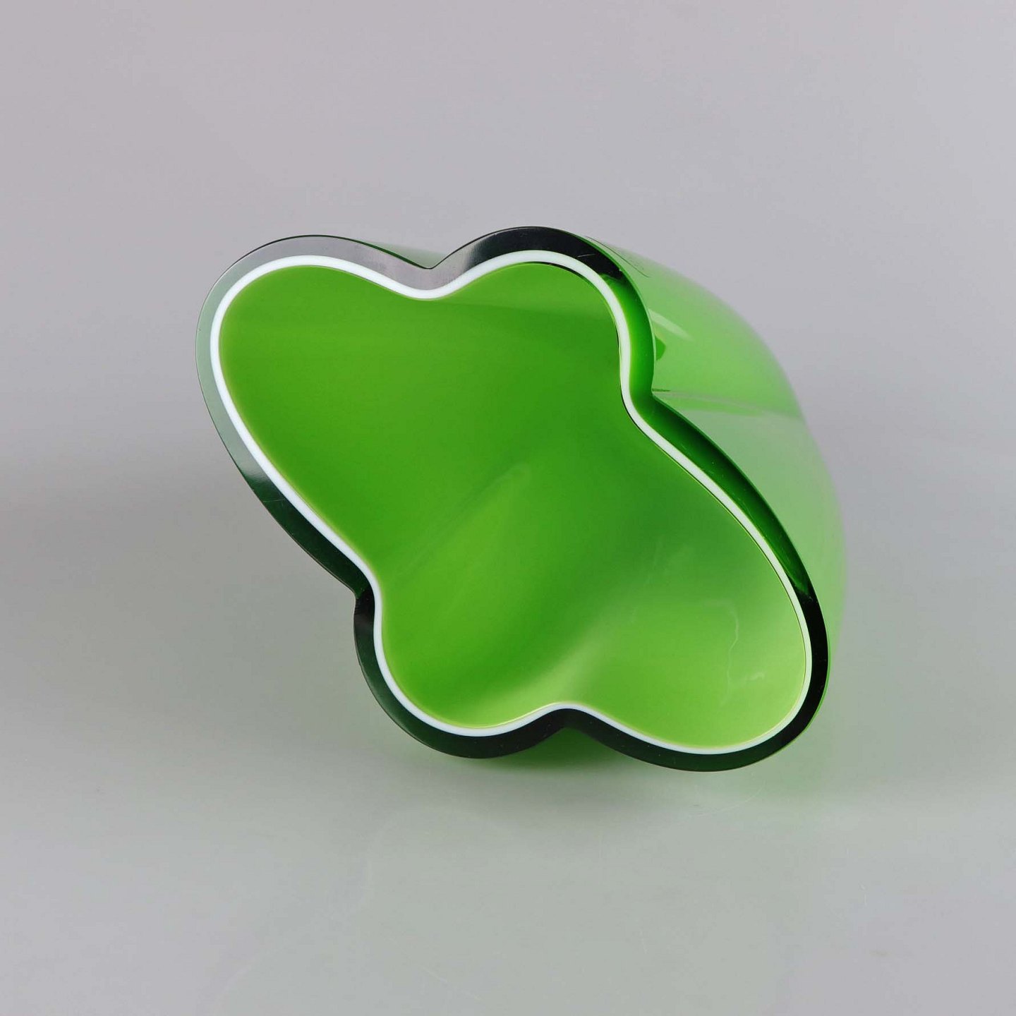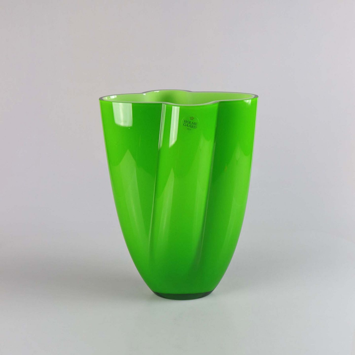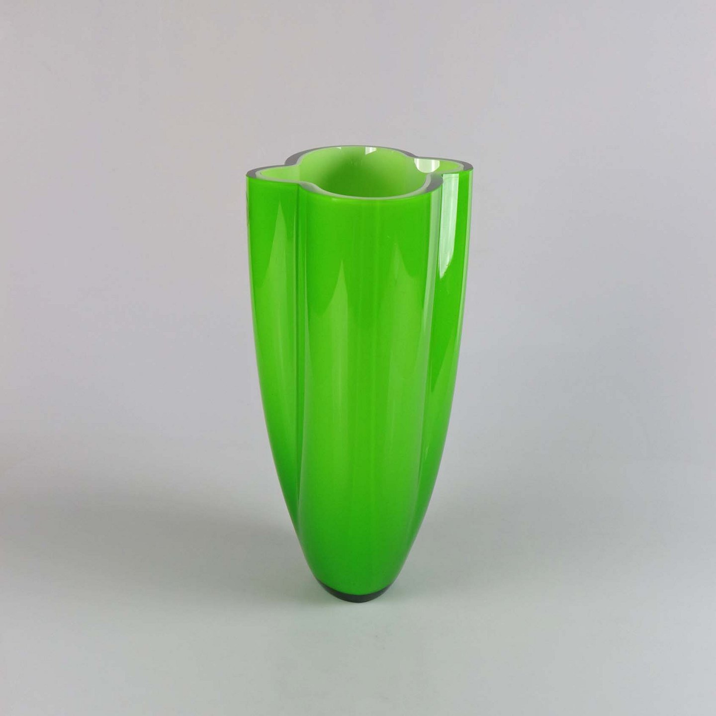 Vase i opal hvid og grønt mundblæst glas model Gardenia fra år 1990