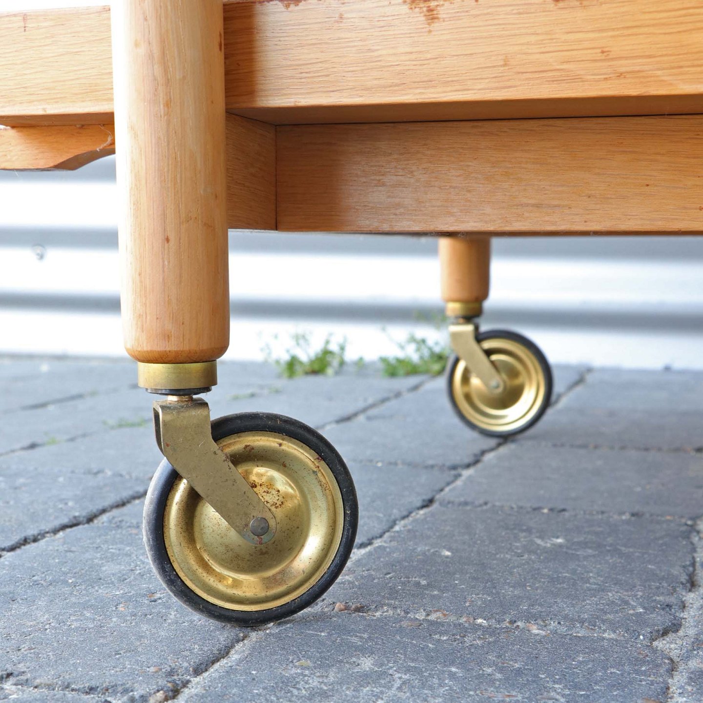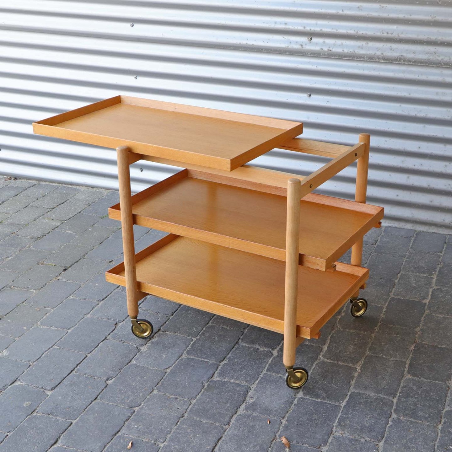 Sjælden rullebord med 3 aftagelige bakker i lakeret egetræ.