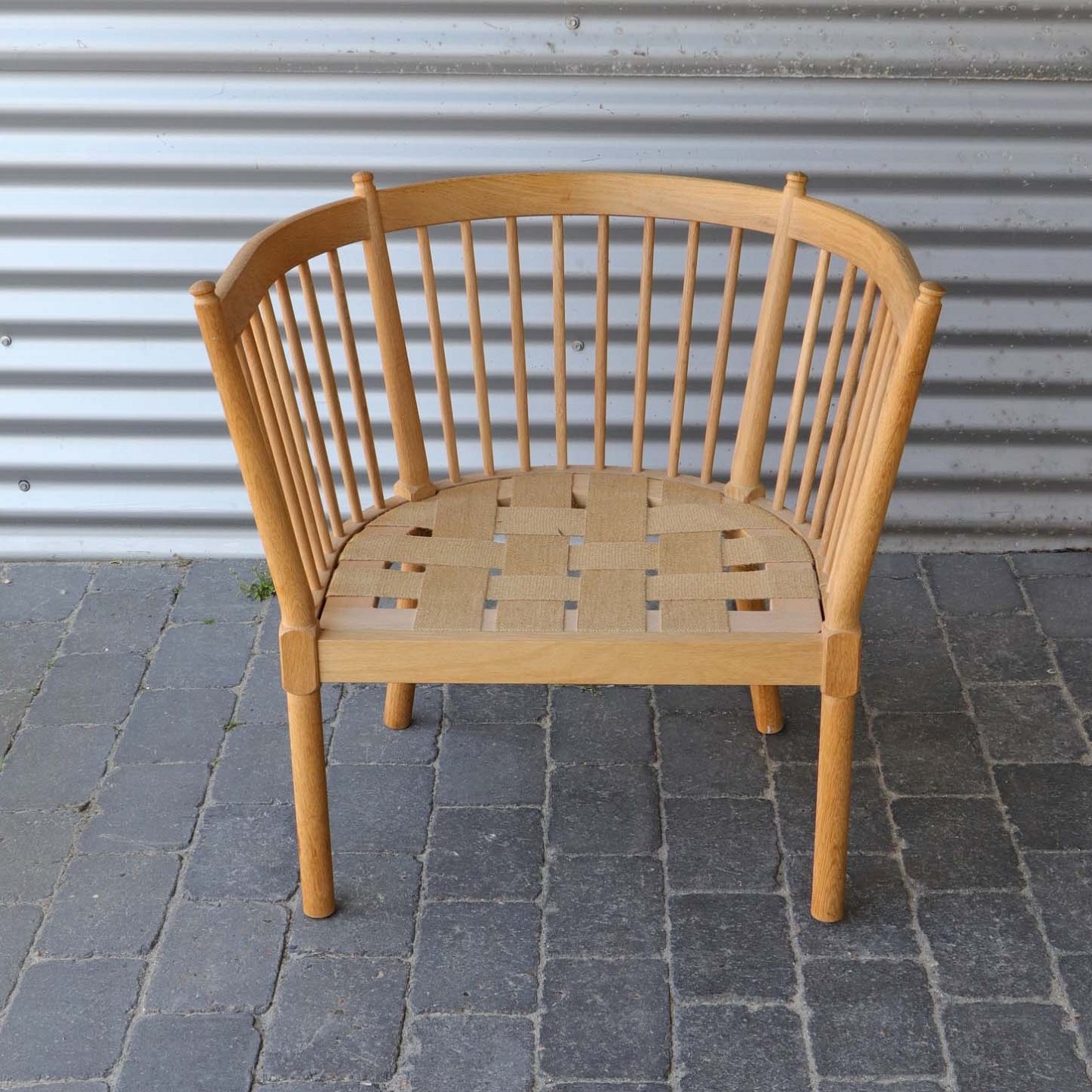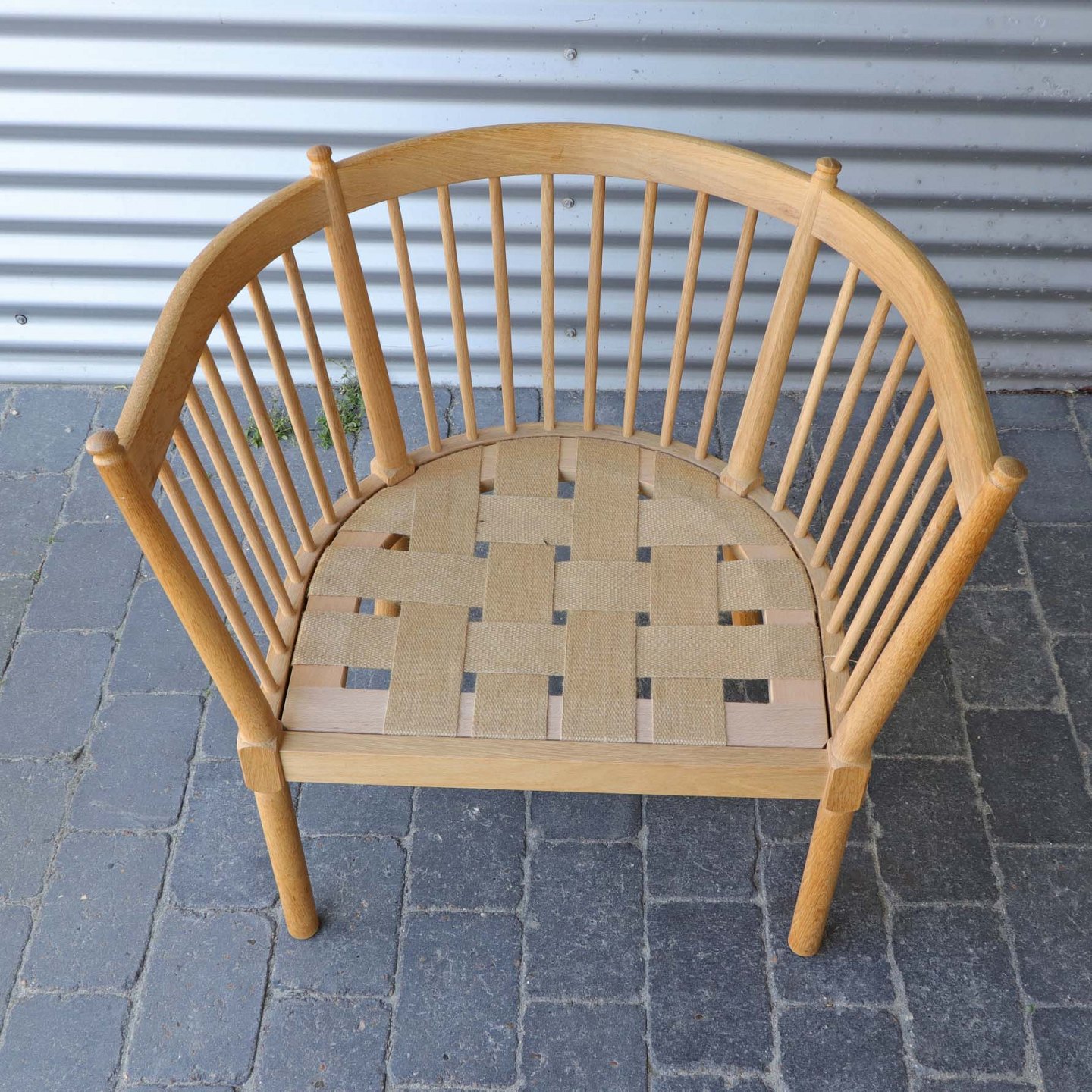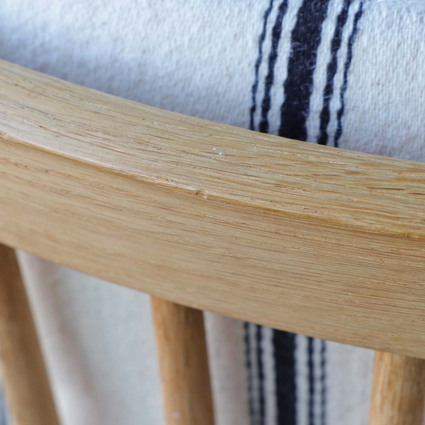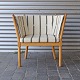 Dansk design tremmestol udført i massivt bøg. Dertilhørende hynder i lyst meleret savak uld med sorte striber. No 1790 4389