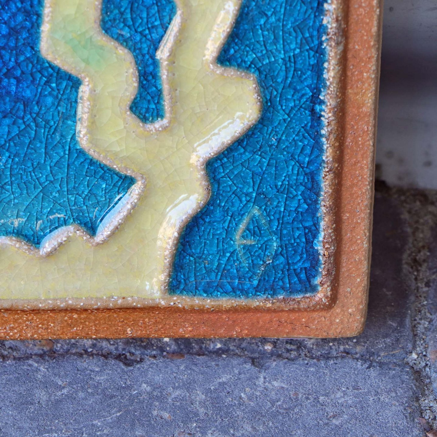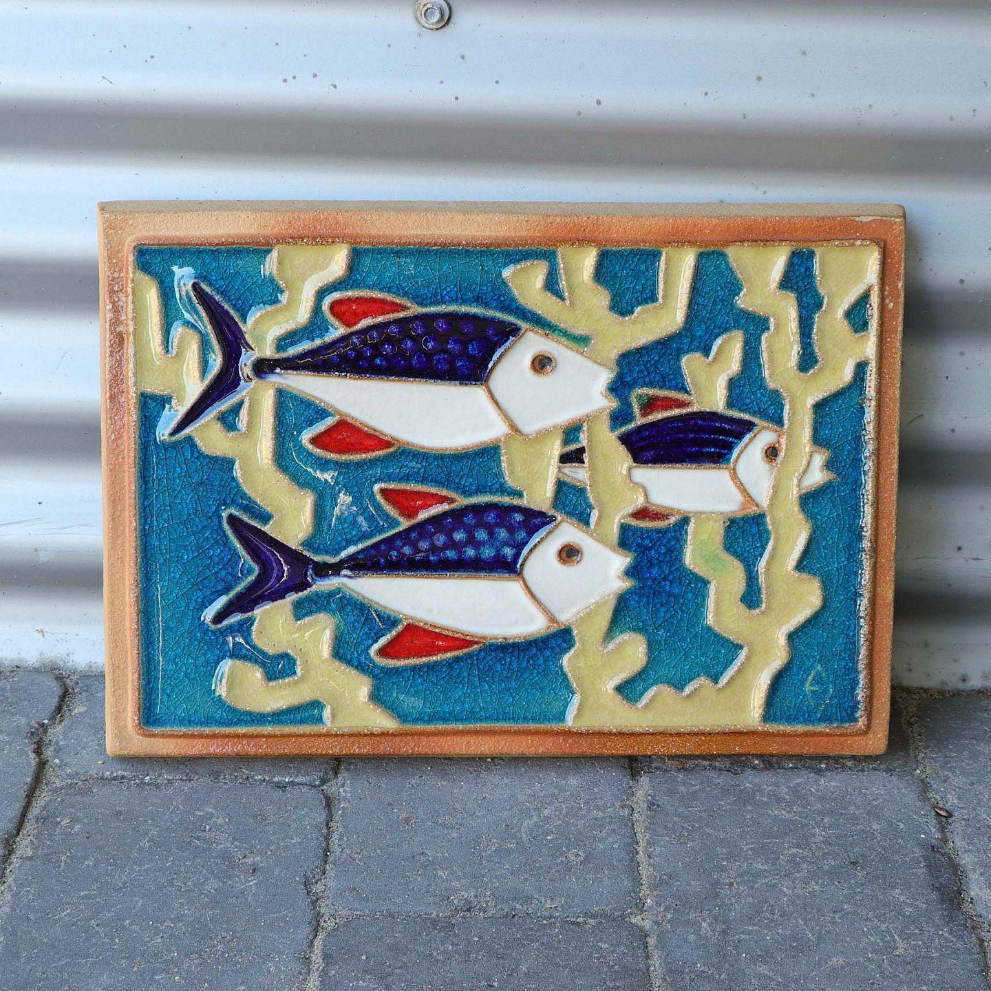 Relief af stentøj med motiv af tre fisk og tang. Stemplet no 3547