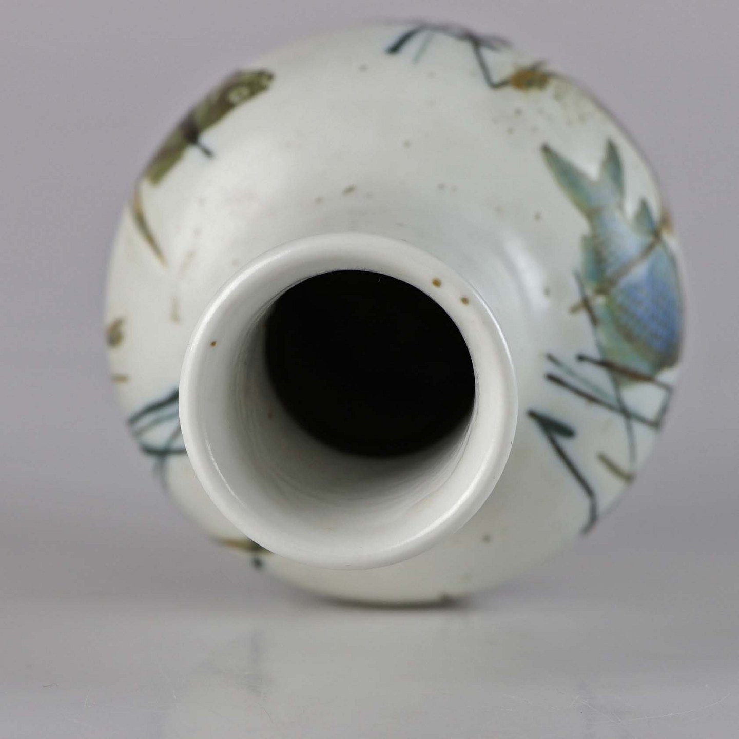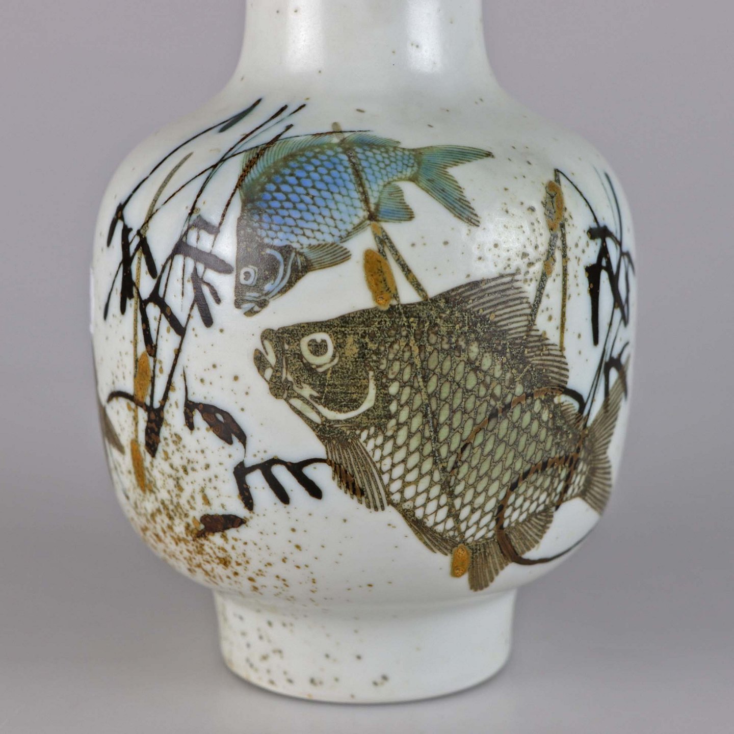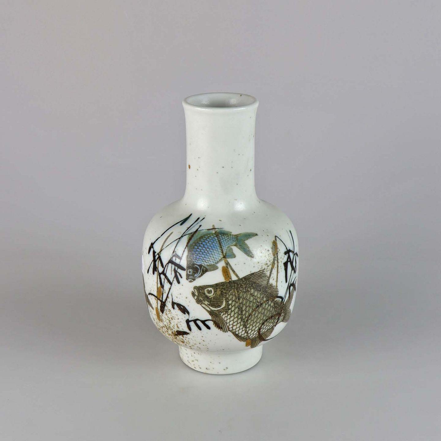 Meleret hvid vase med motiv af fisk