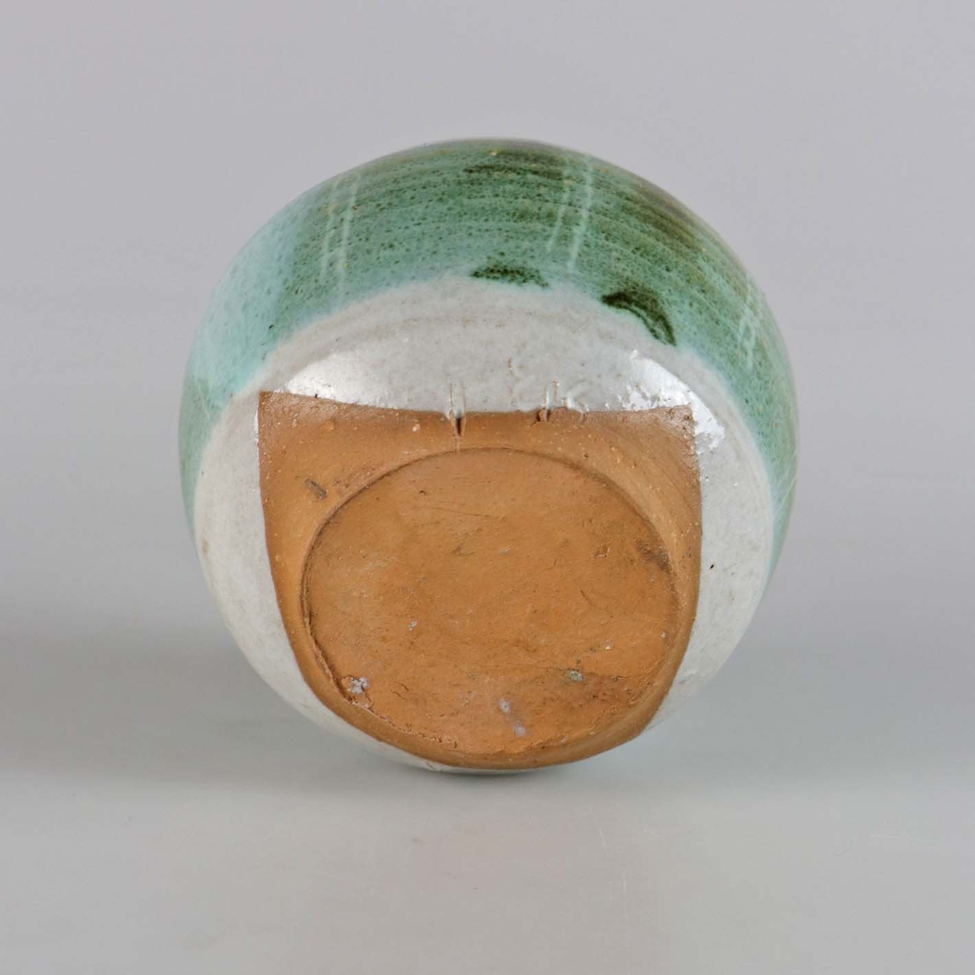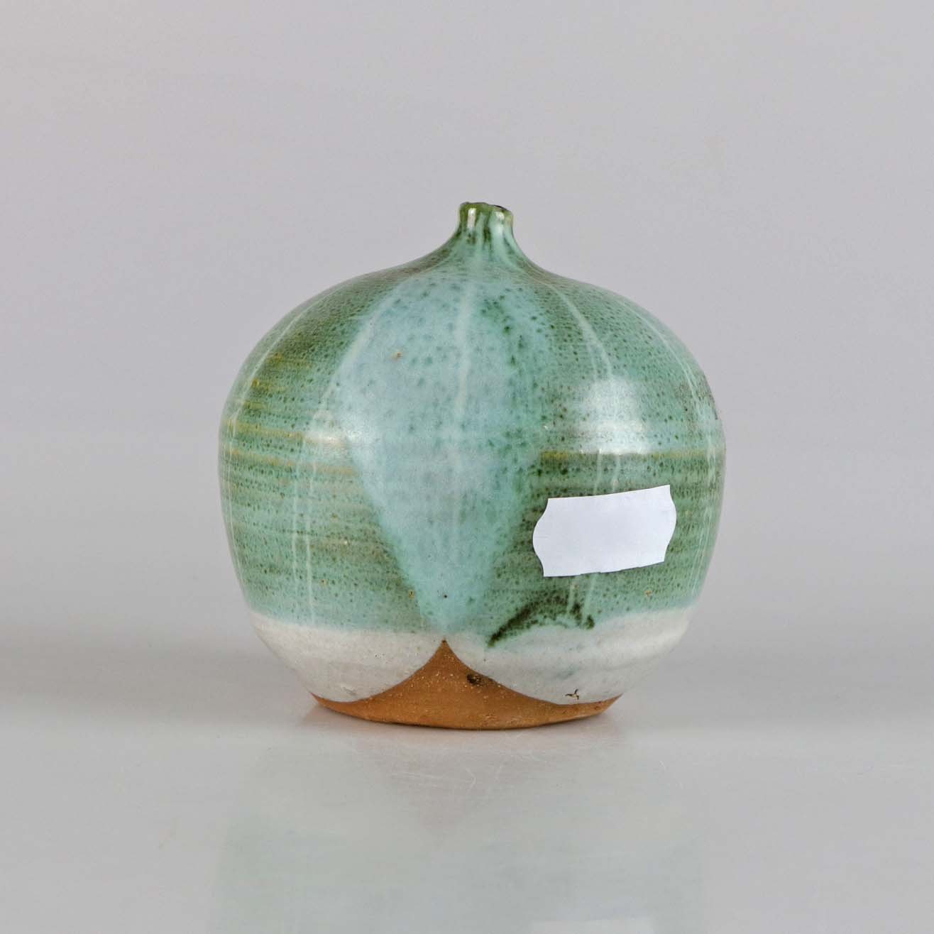 Vase i stentøj. Glaseret med søgrøn og motiv som søpindsvin