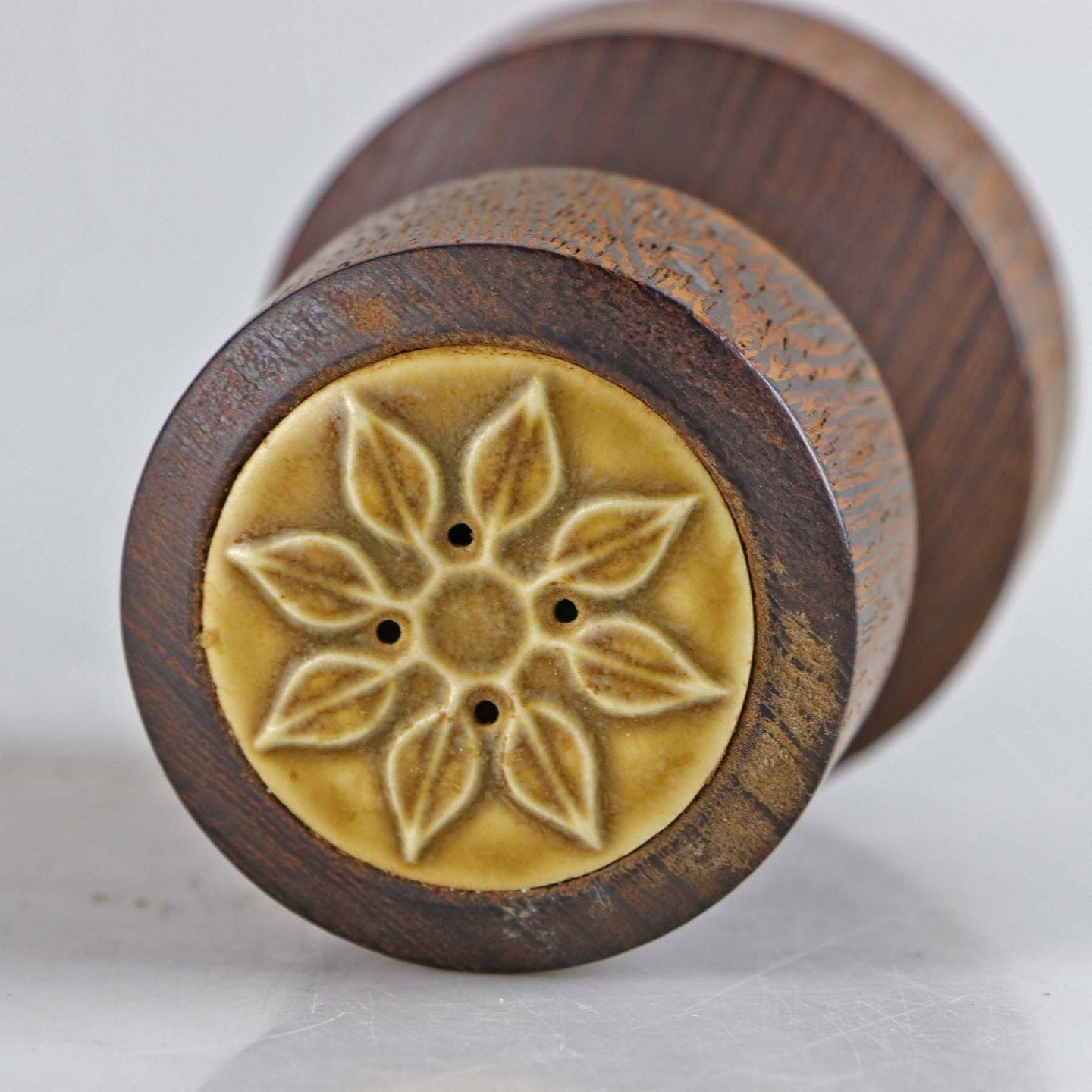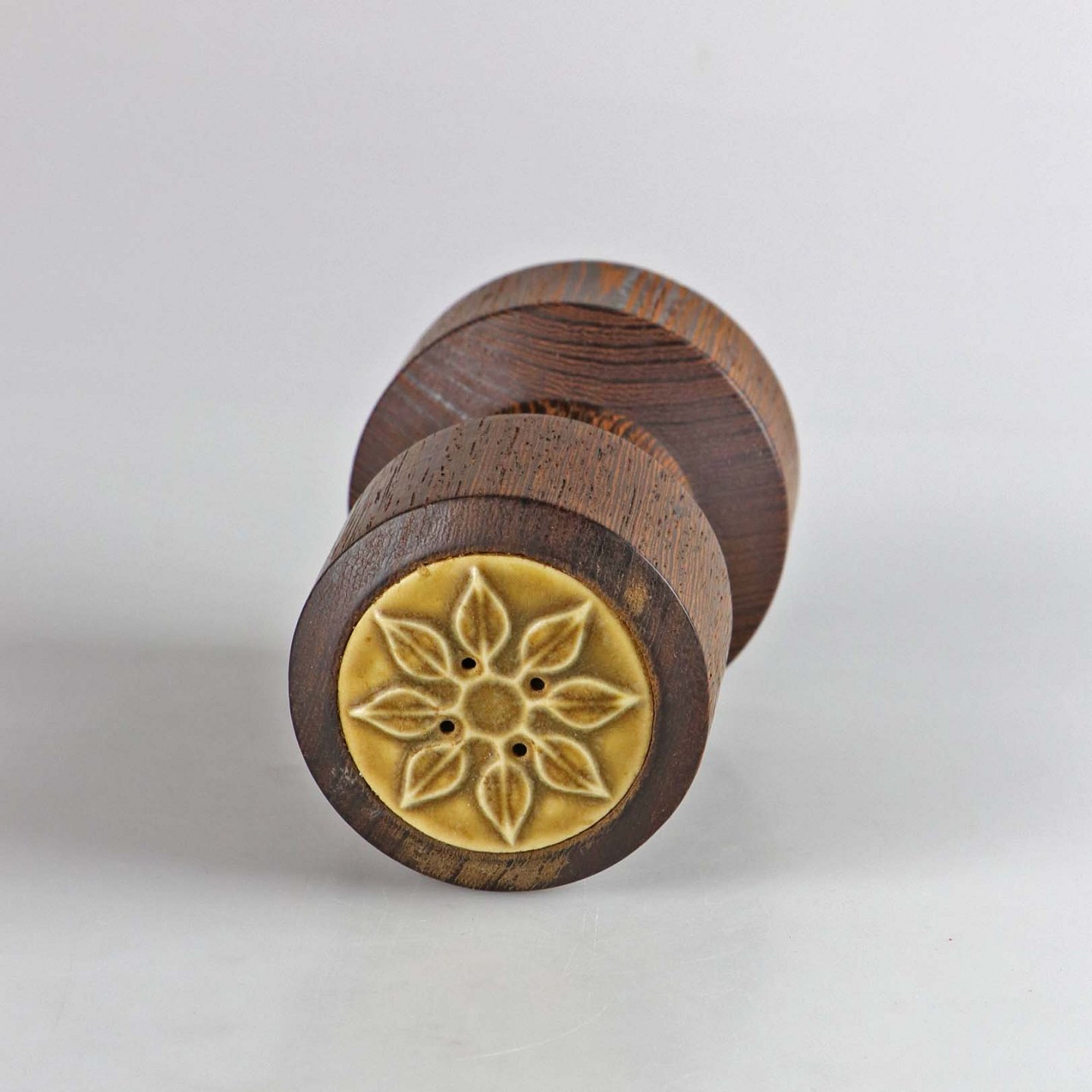 Saltbøsse og peberkværn i et, af stentøj og palisander fra stellet Relief. Meget sjældent til relief stellet
