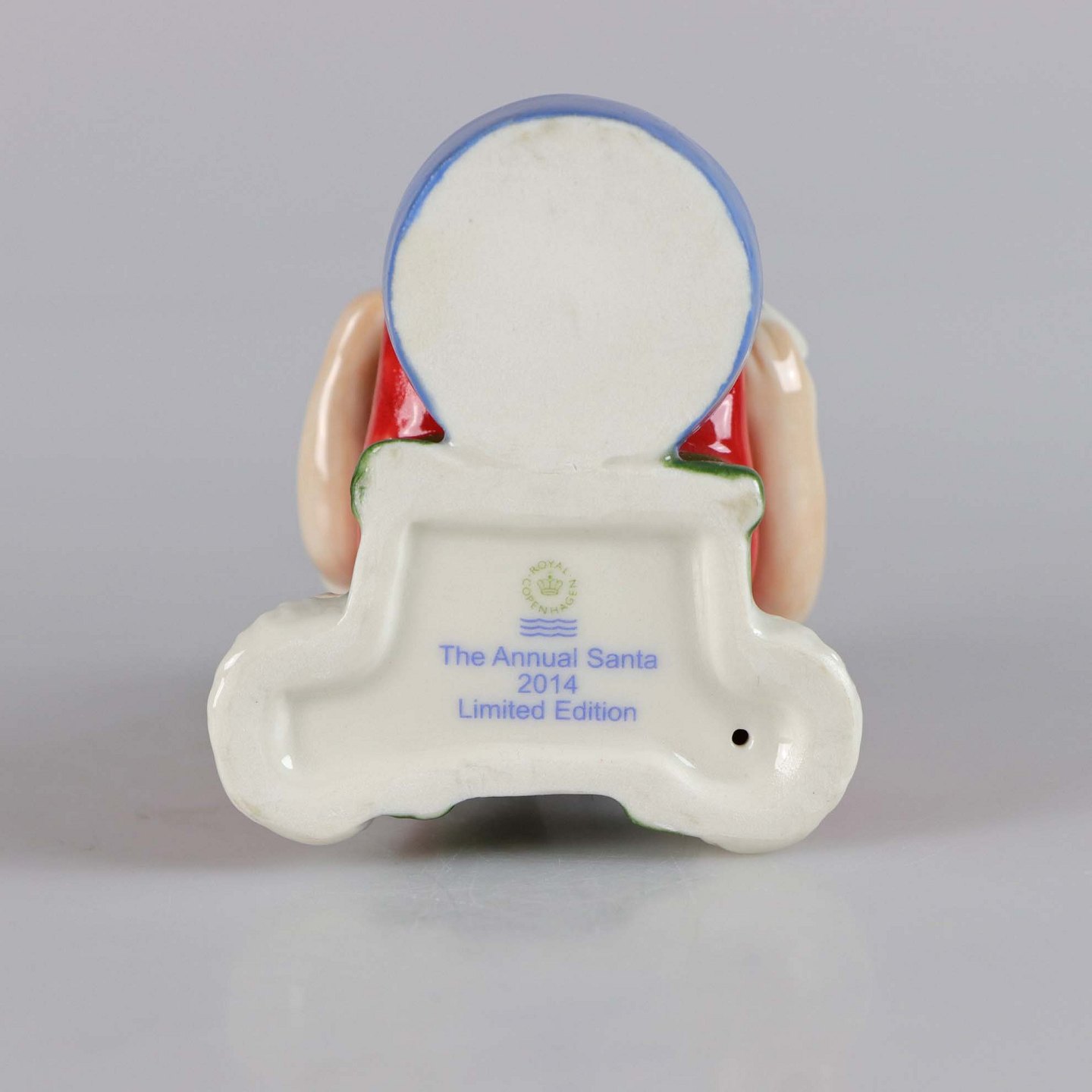 Årets Julemand i porcelæn År 2014. Julemanden med en kop chokolade og fødderne i vand.