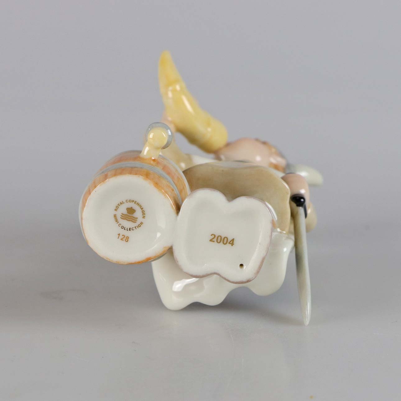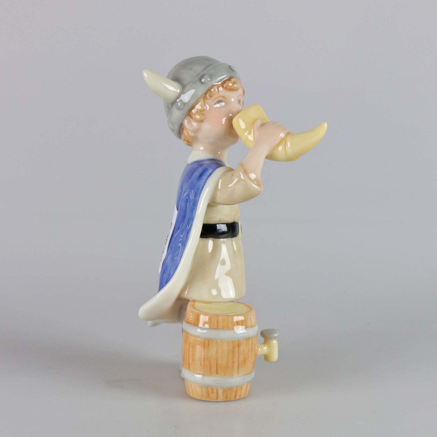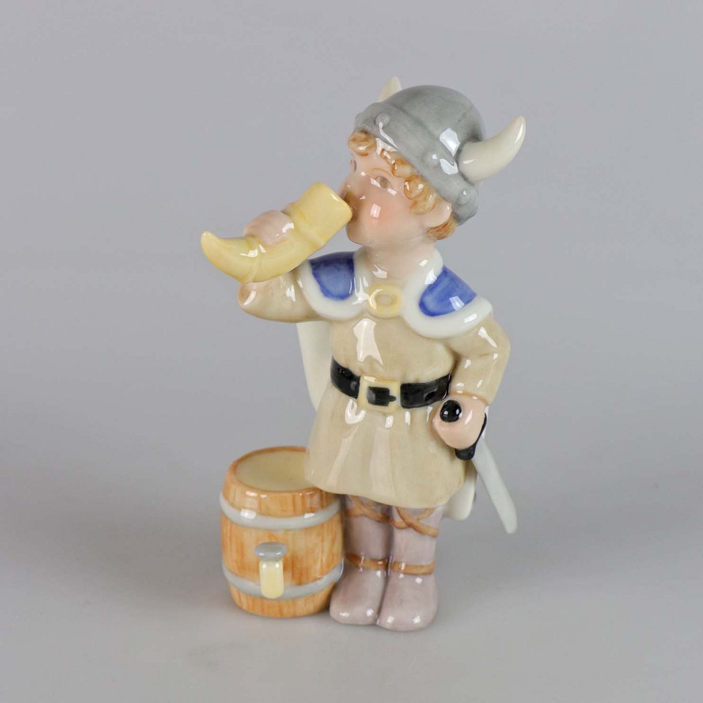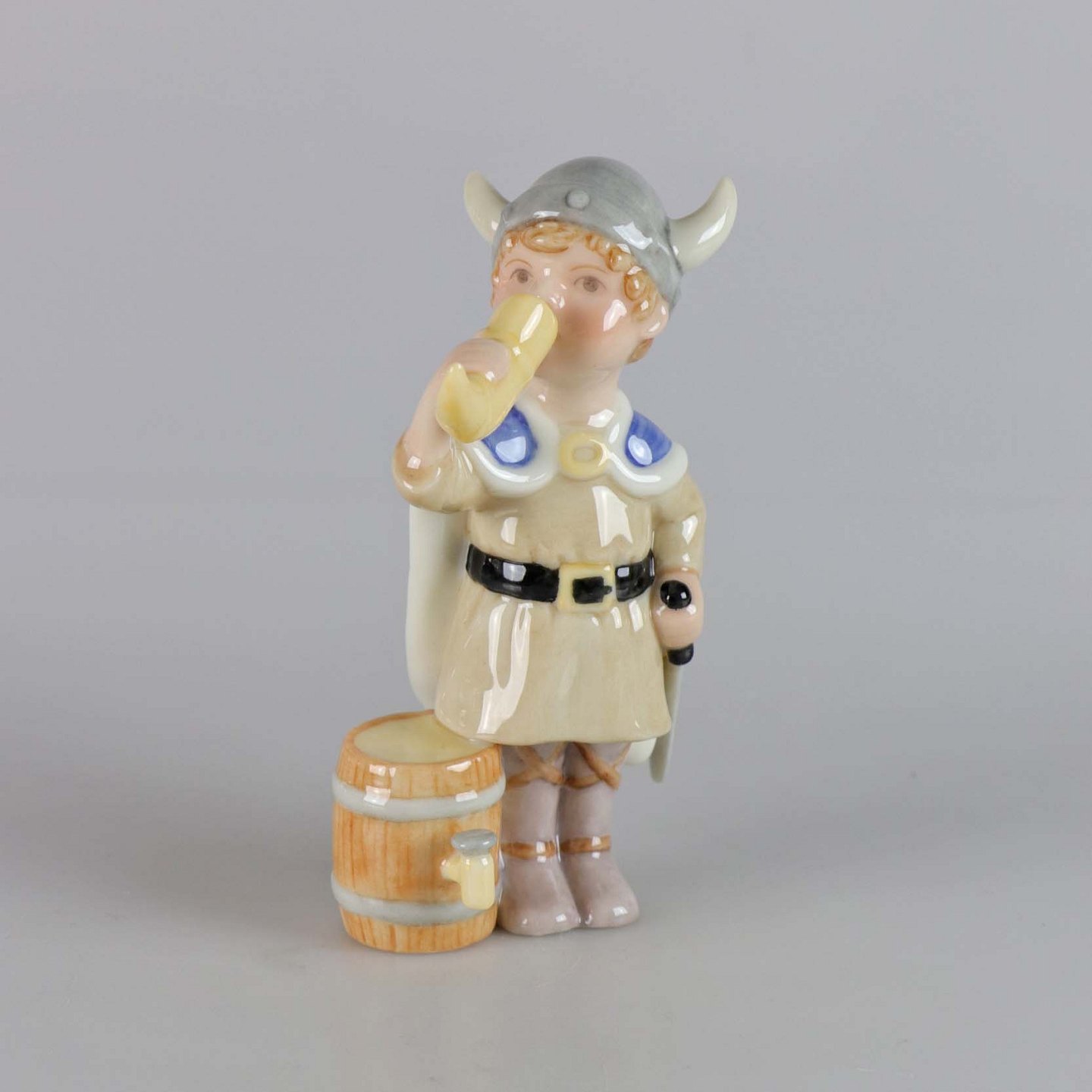 Årets Viking 2004 i porcelæn fra serien Mini Collection Viking. Dreng med sværd, ølhorn og øltønde. No 128 Vikingenavn: Bjarke