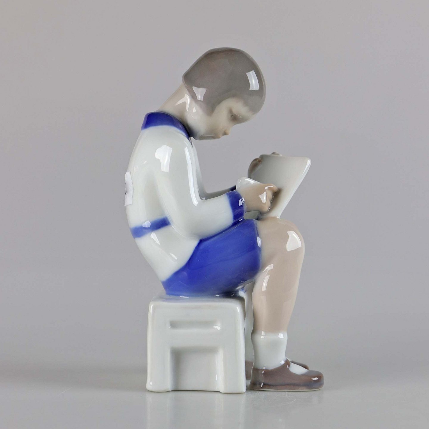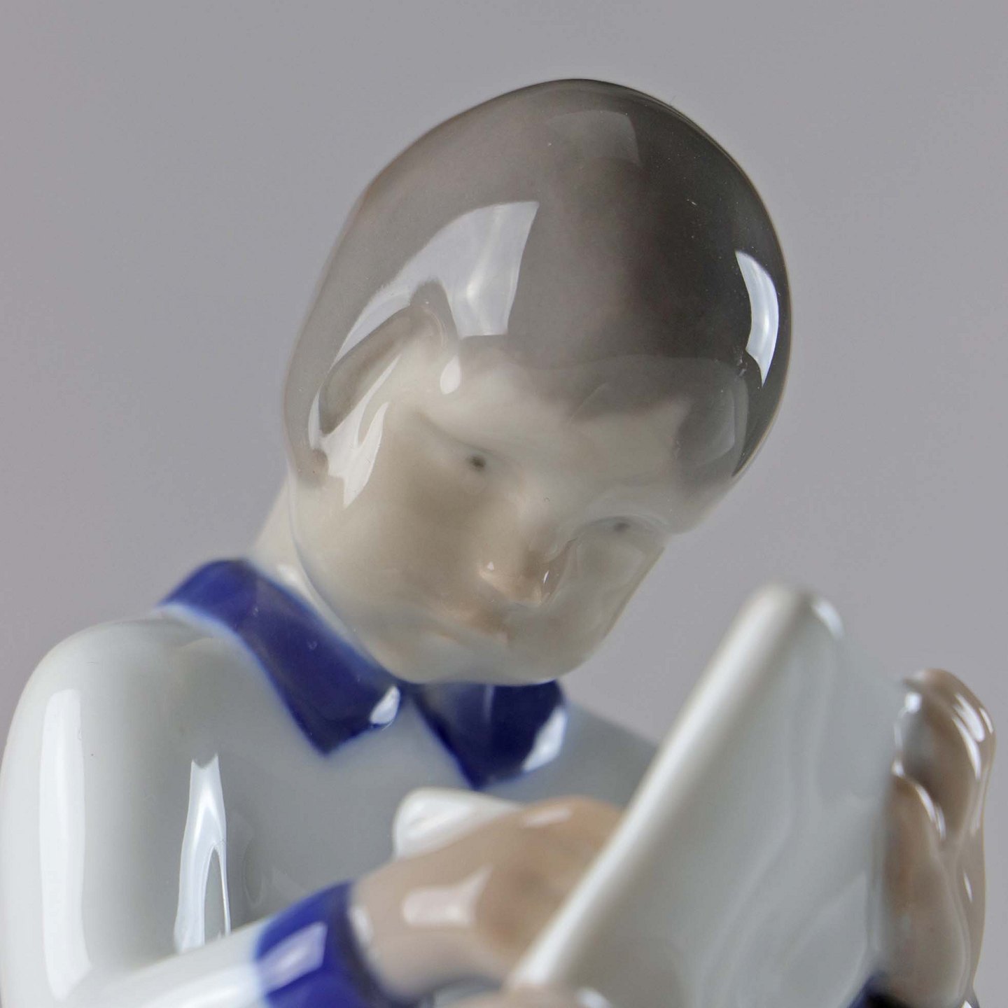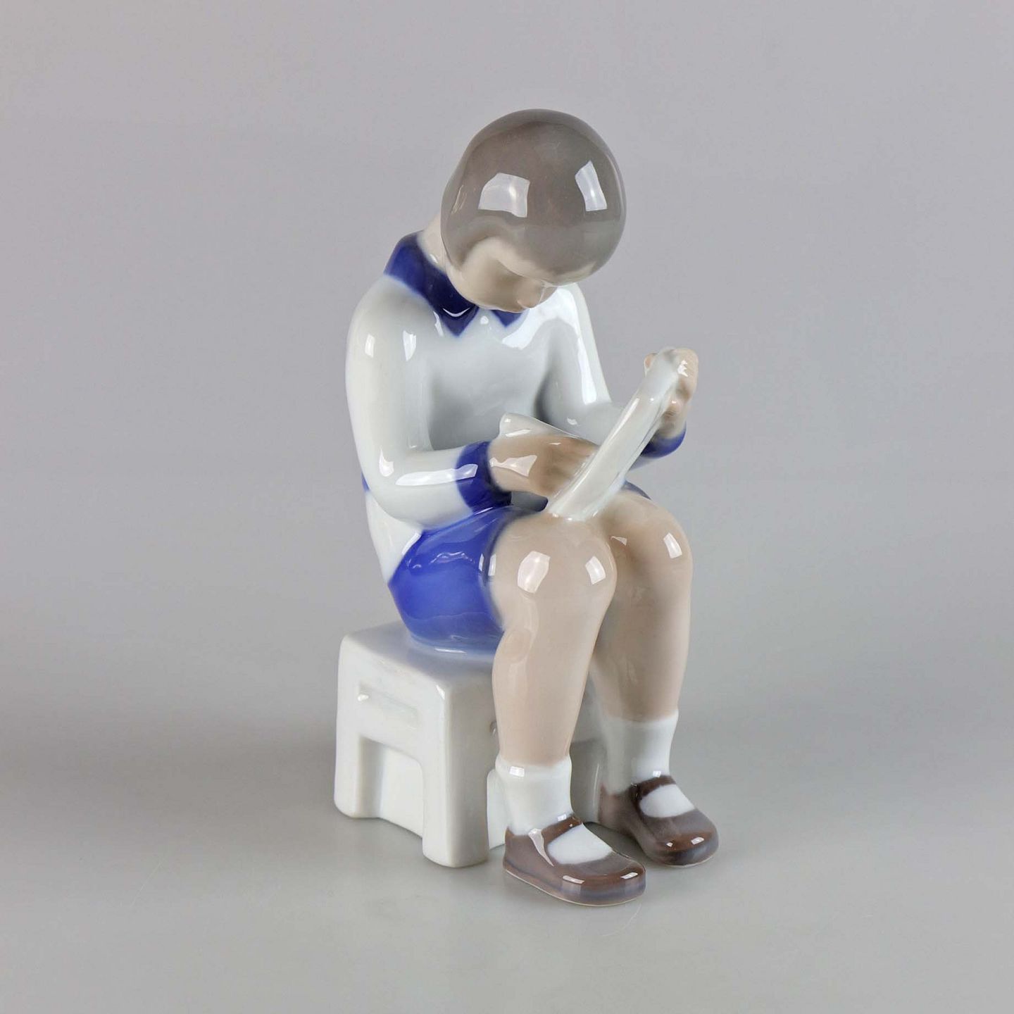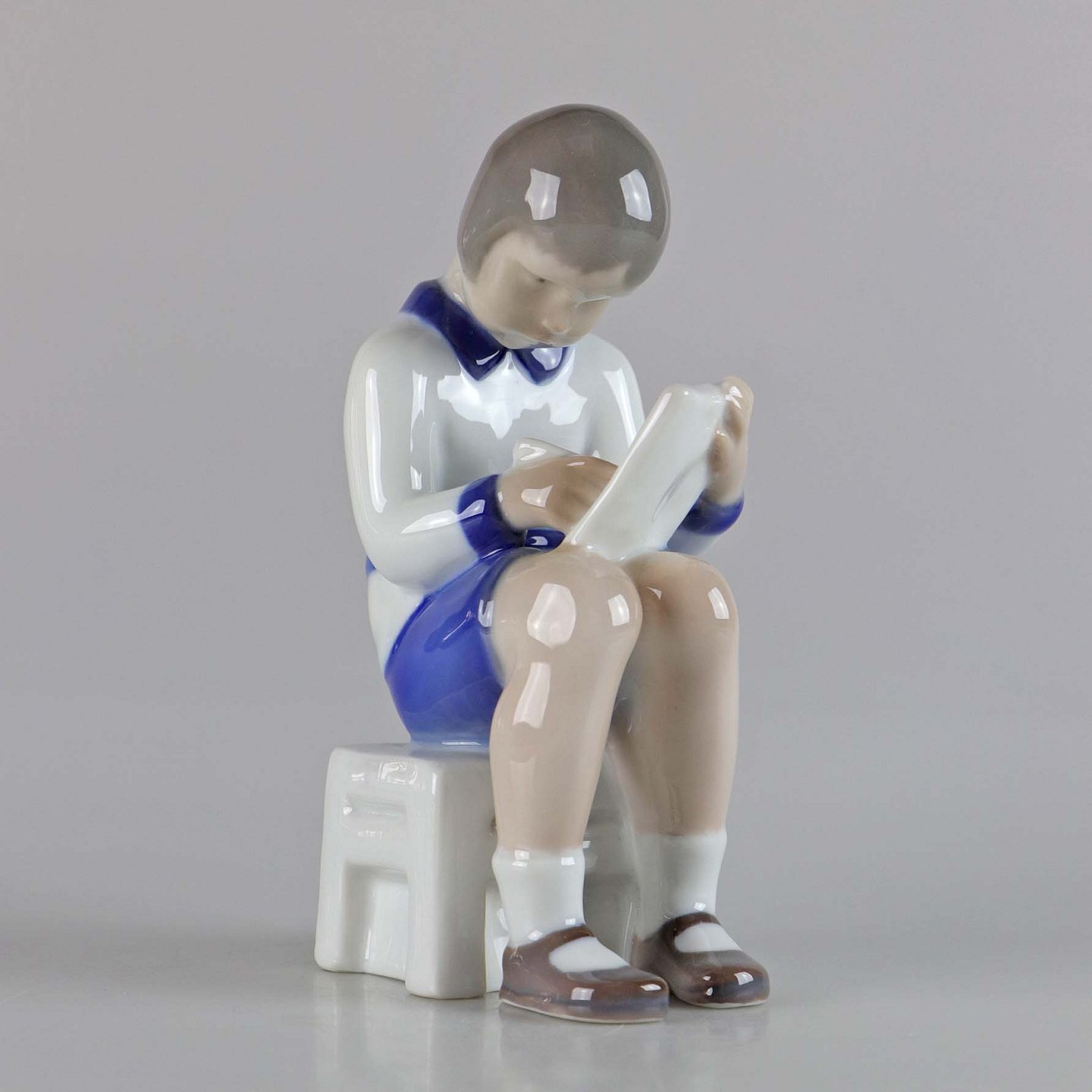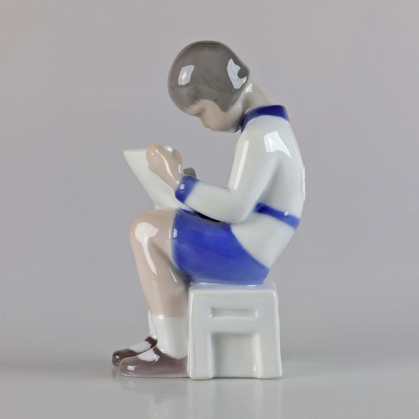 Figur af porcelæn af siddende pige med papir og blyant. No 2184