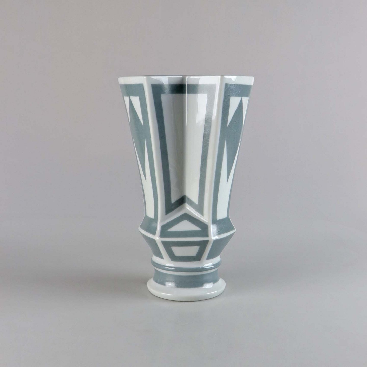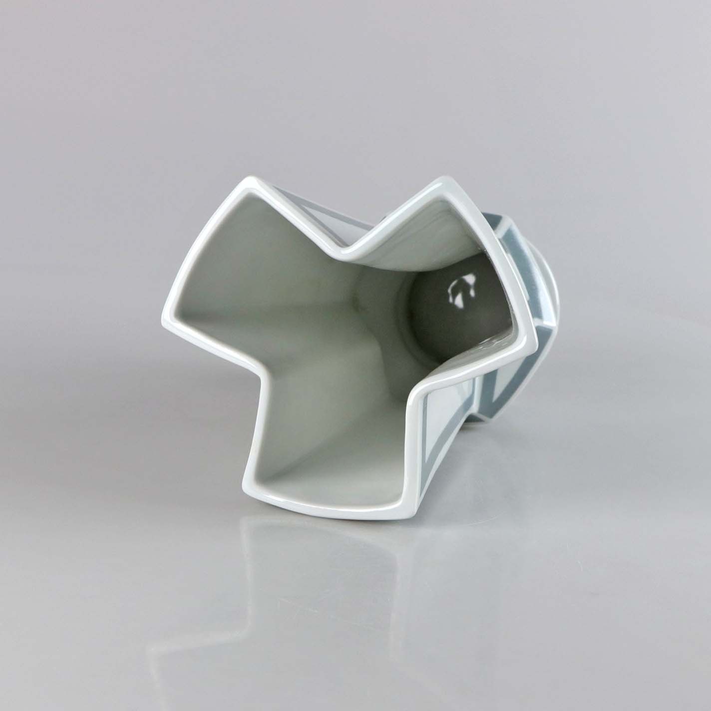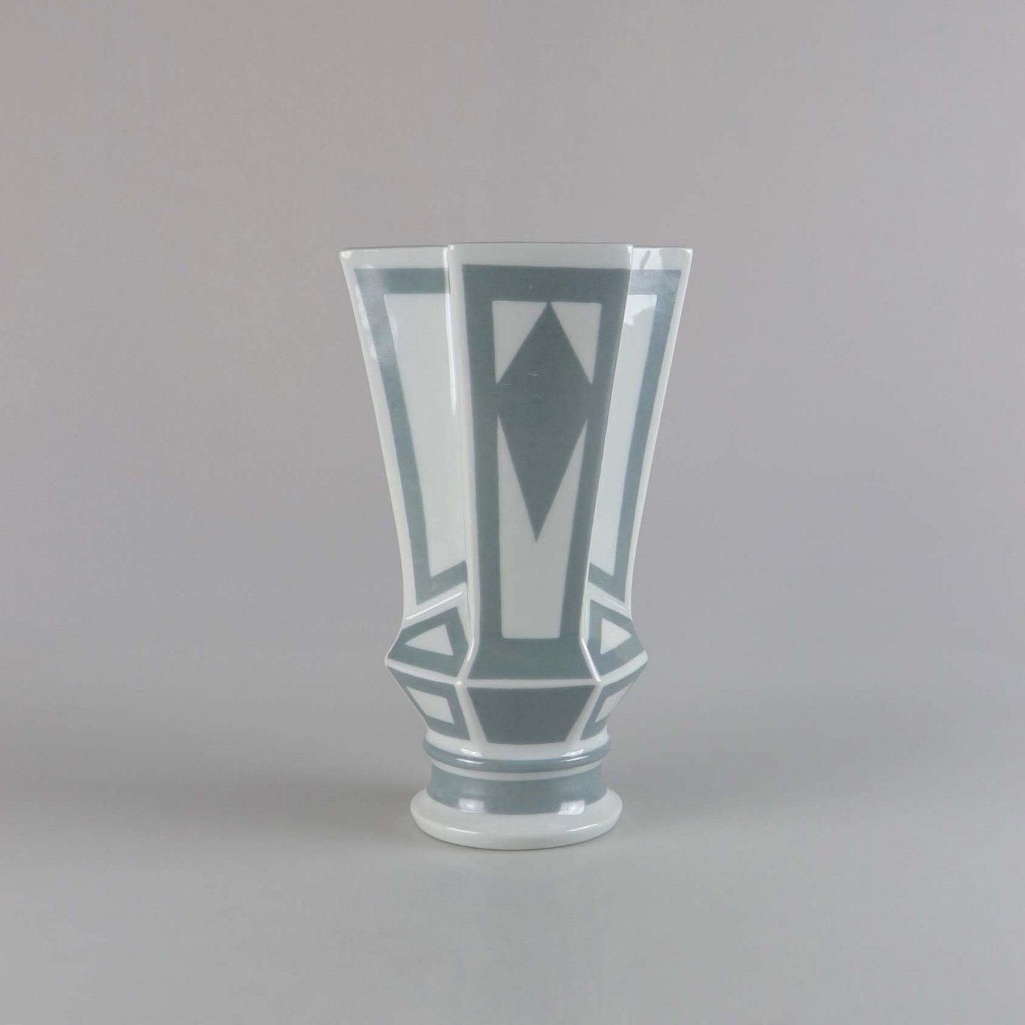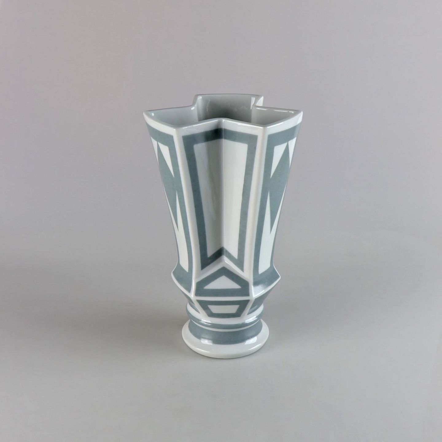 Kantet vase i porcelæn, dekoreret med grå mønstre. No 5818/1898