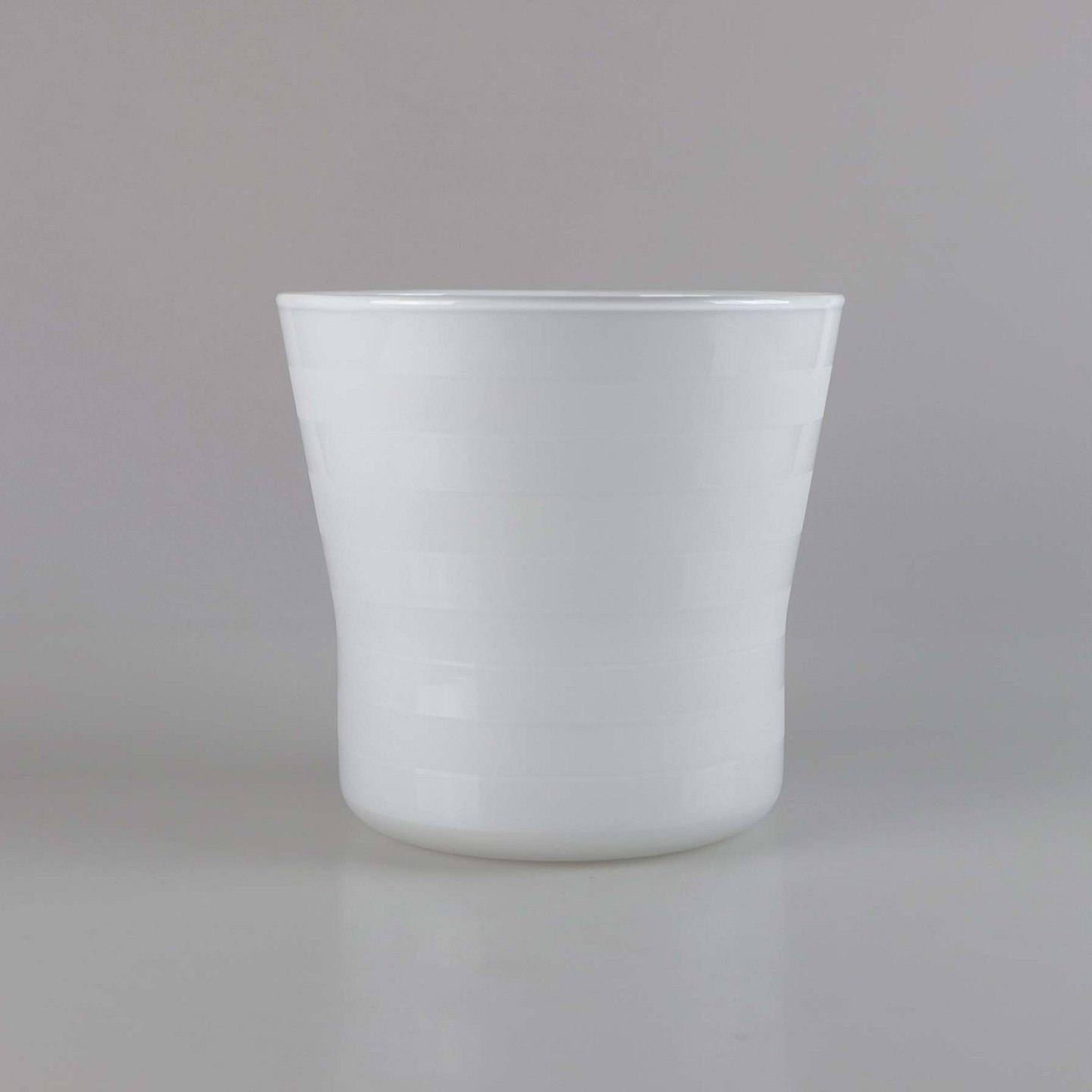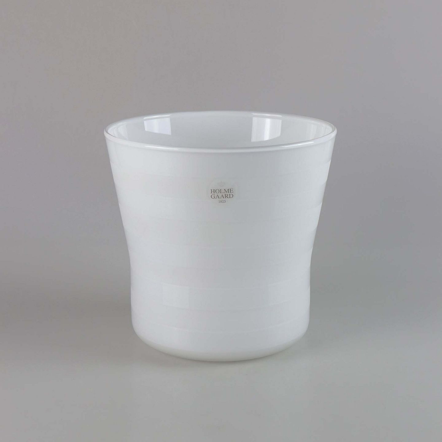 Urtepotteskjuler i mundblæst glas. Opal hvid med slebet stribeeffekt