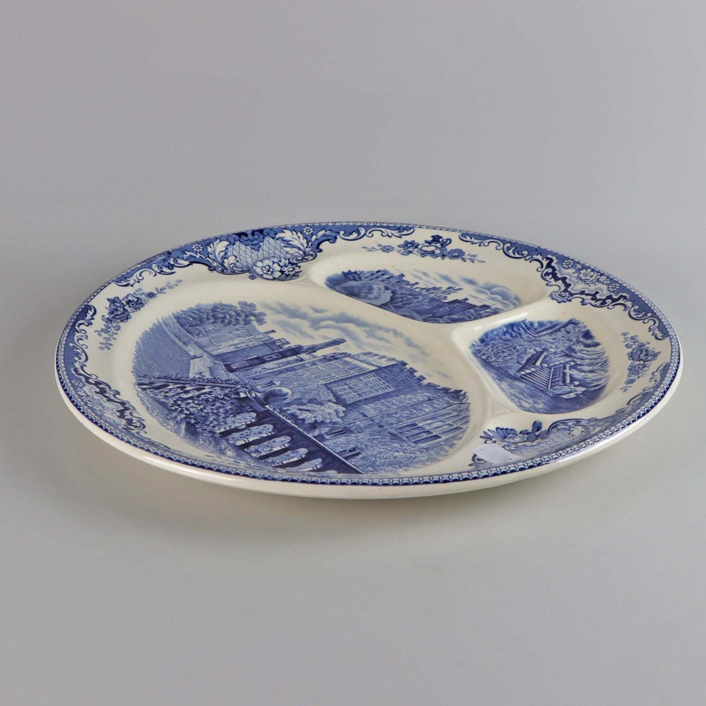 Fad af engelsk fajance fra stellet Old Britain Castles i blå