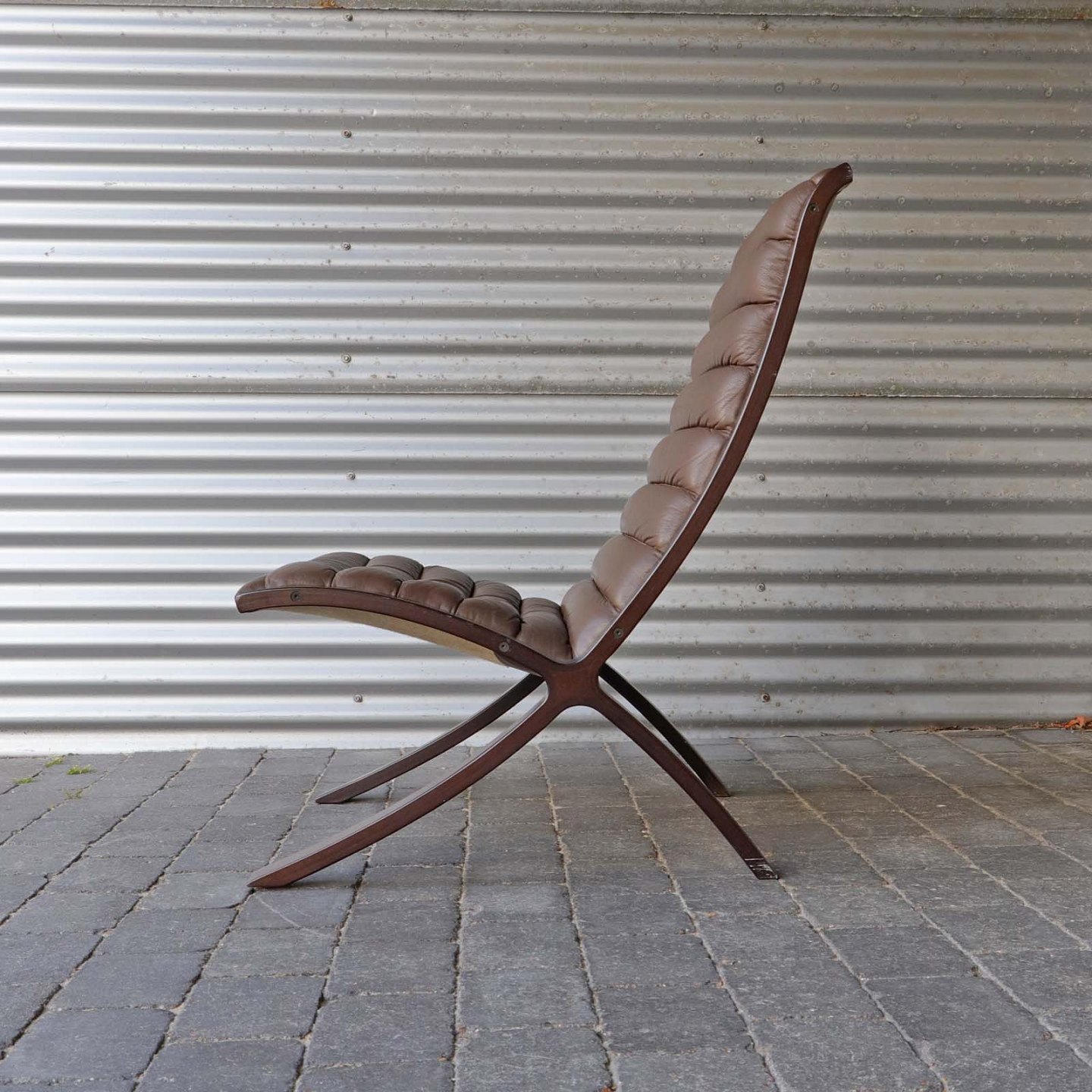 Dansk AX Highback lænestol fra 1980'erne. Sæde i brunt læder.