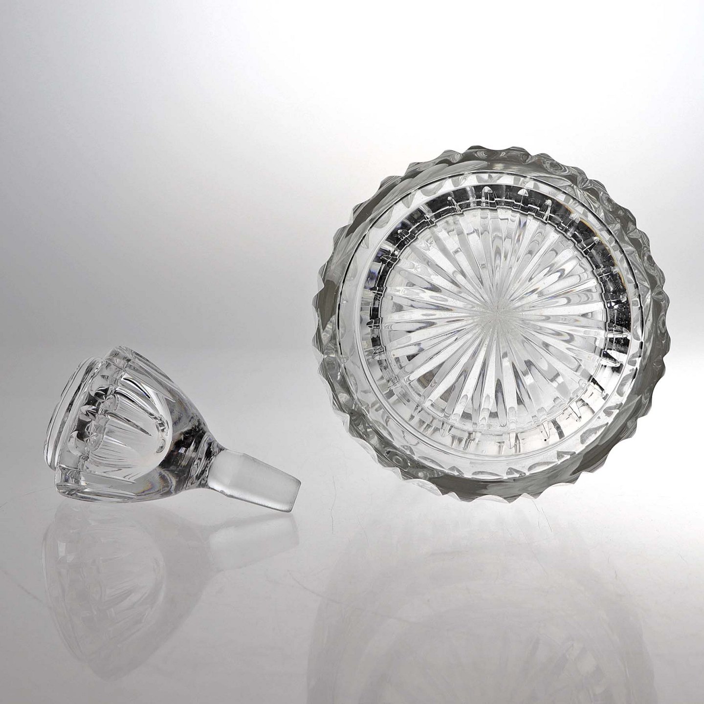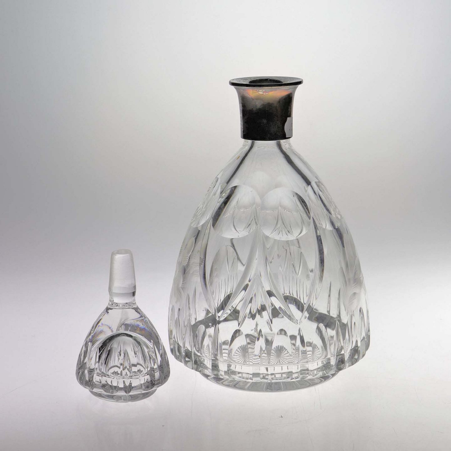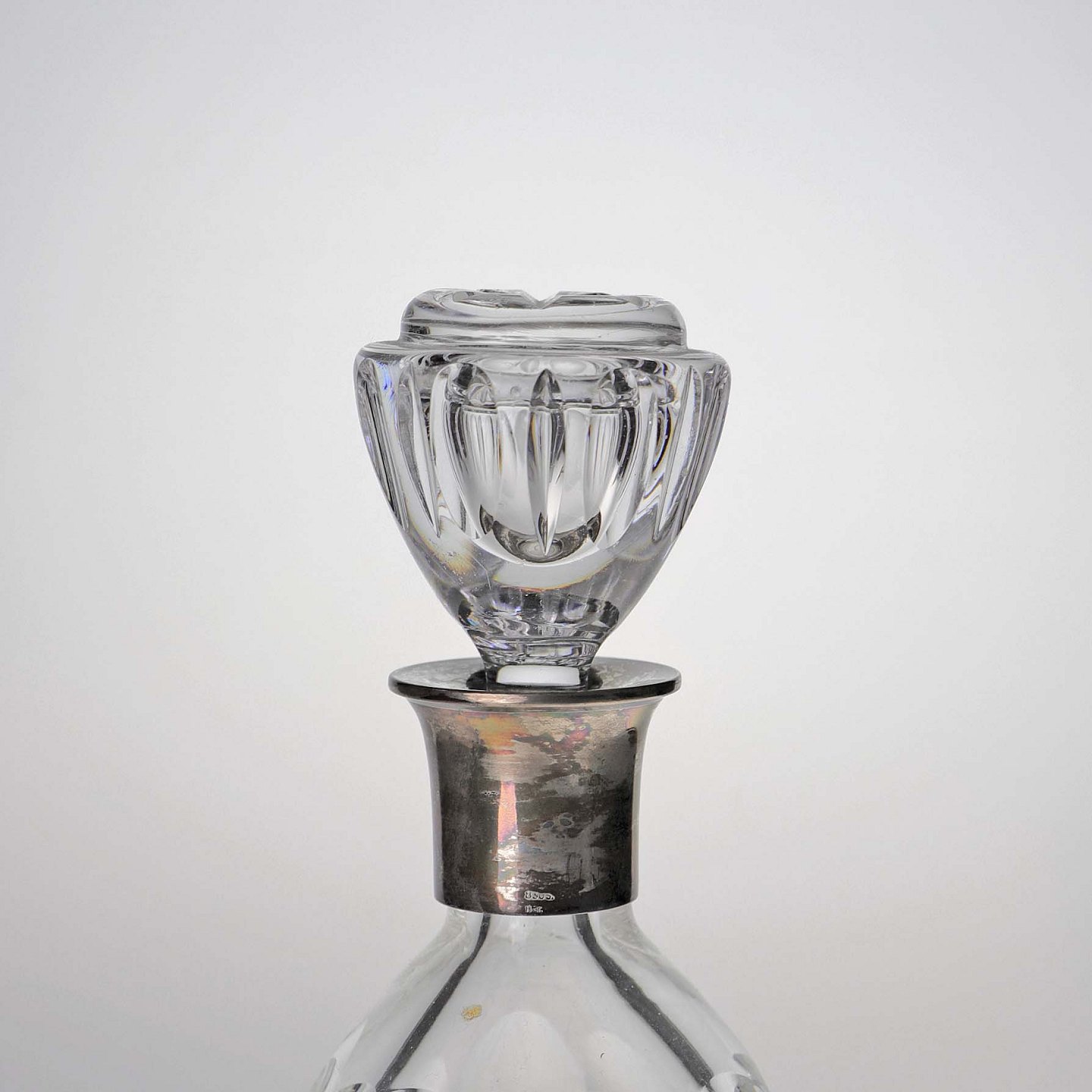 Karaffel i presset glas med motiv mad agern og blade samt top i sølv