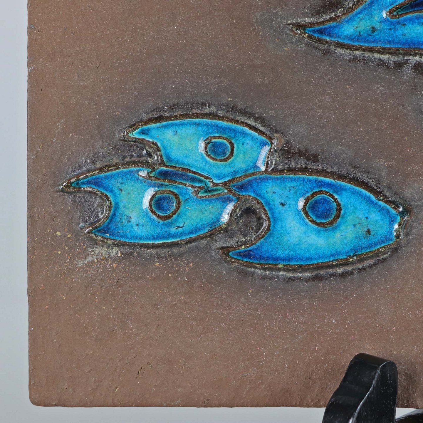 Relief af stentøj dekoreret med stime af blå fisk. No 933/829