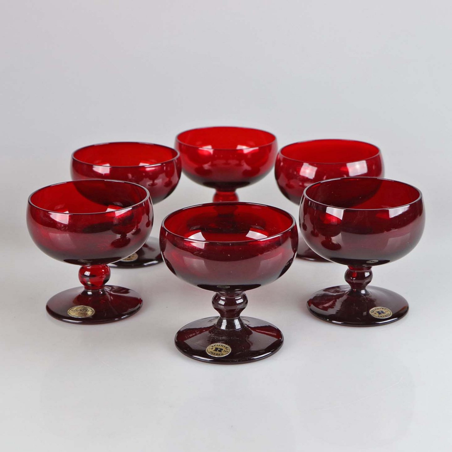 6 stk likørglas i dyb rød farve
