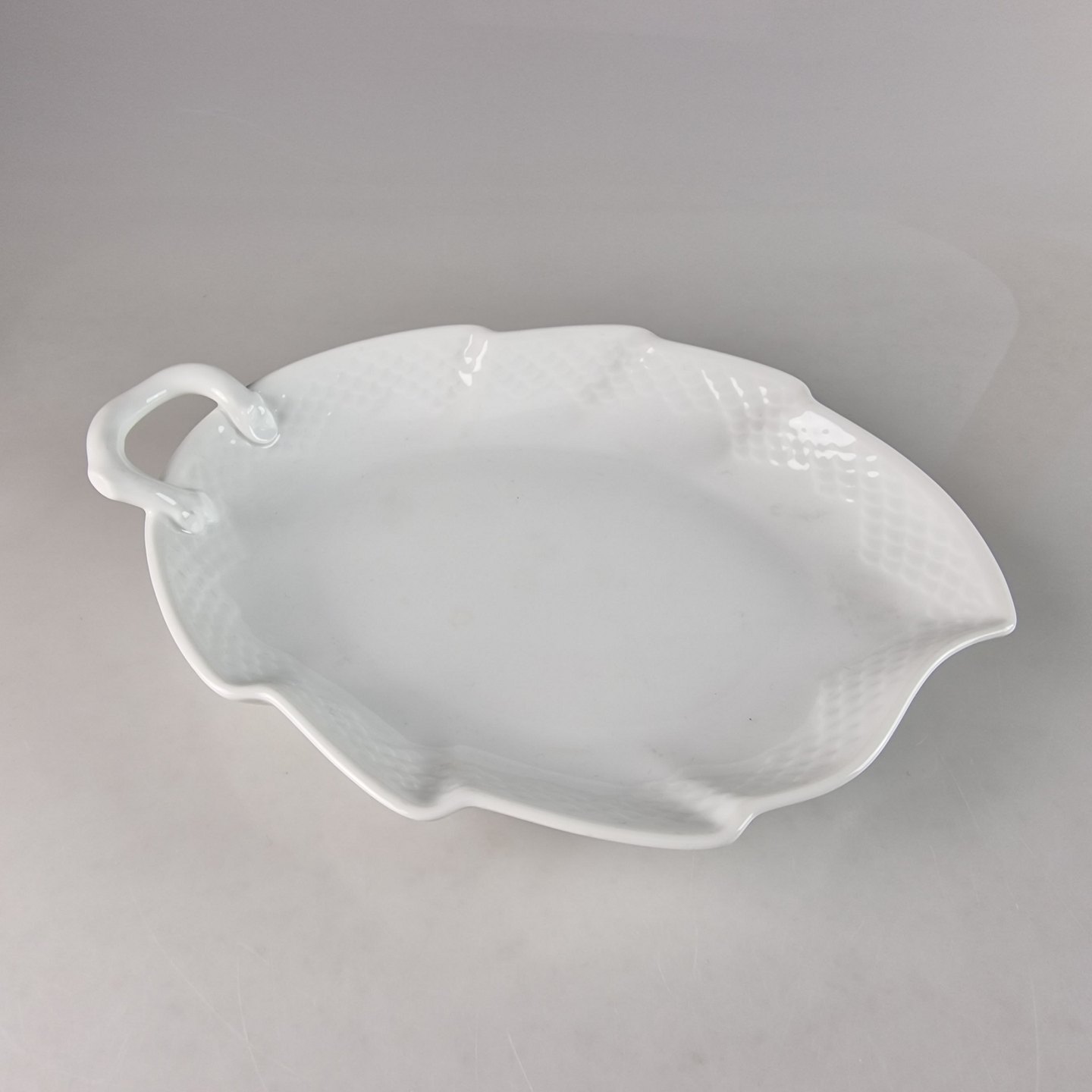Bladformet fad med hank fra stellet Elegance. No 199