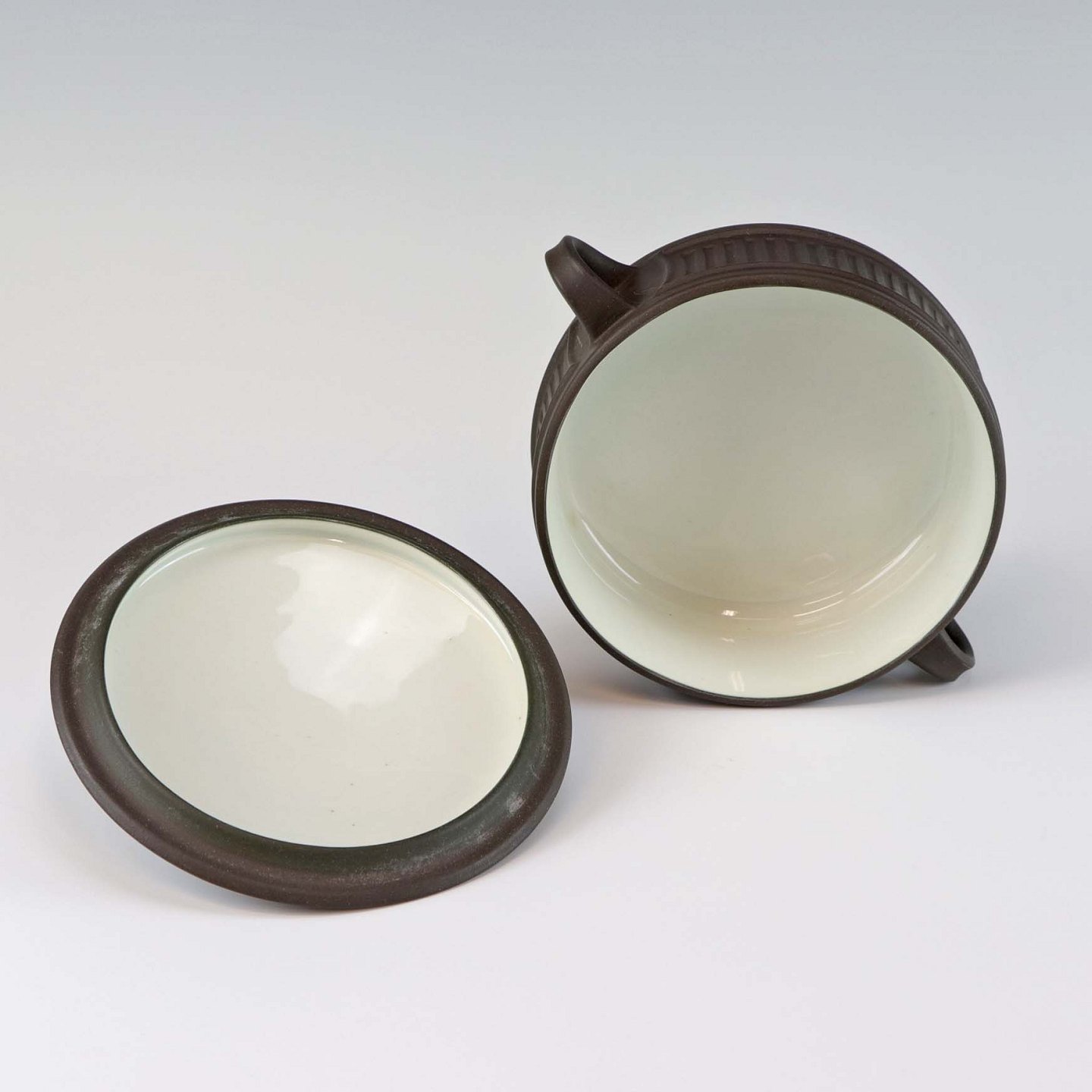 Stellet Flamestone har hvidt glasur indvendigt og ydersiden er i rå uglaseret stentøj