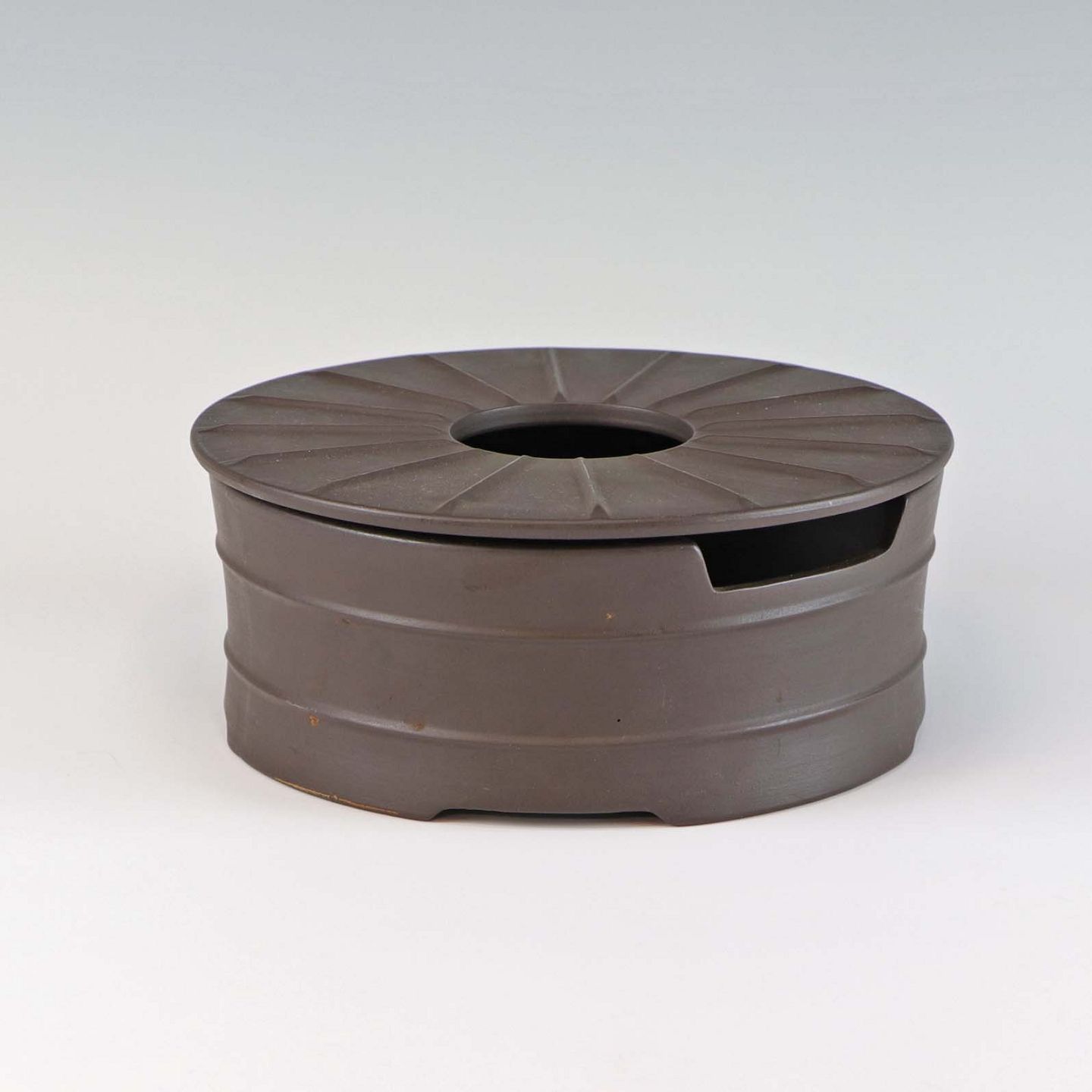 Stellet Flamestone har hvidt glasur indvendigt og ydersiden er i rå uglaseret stentøj