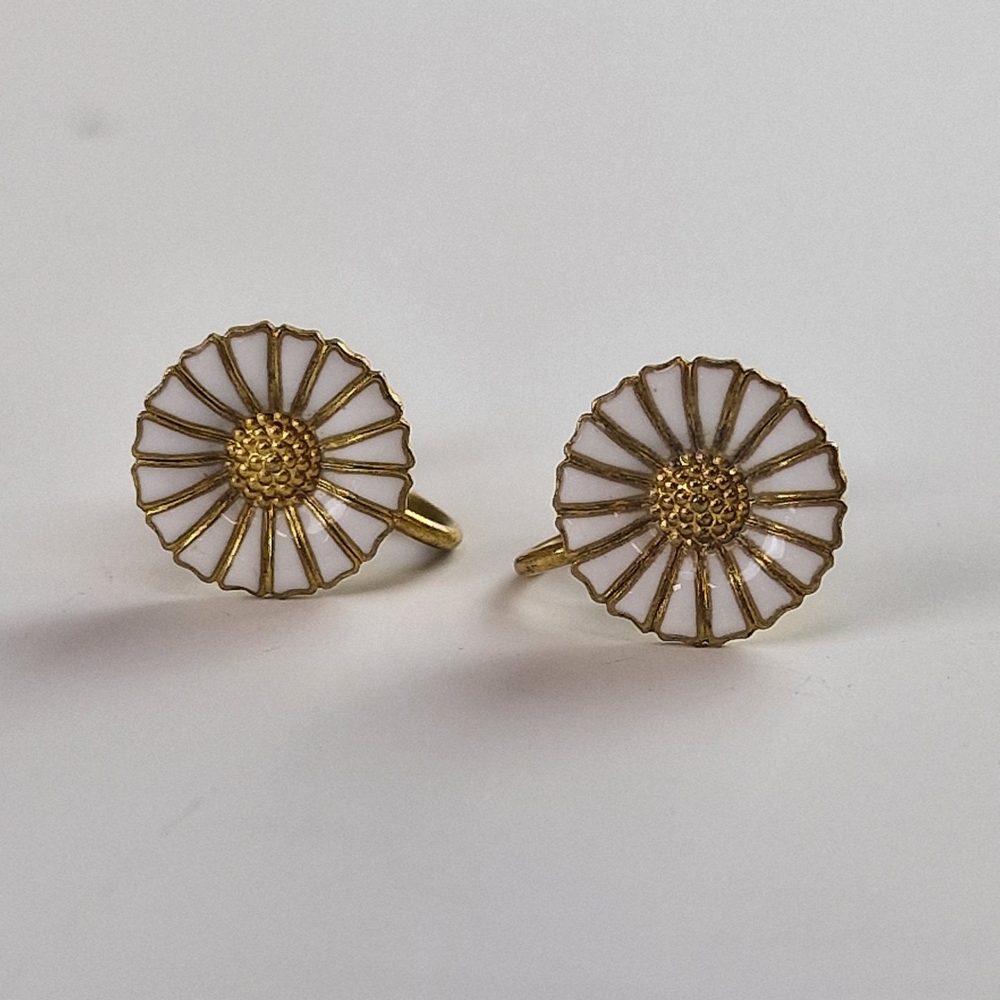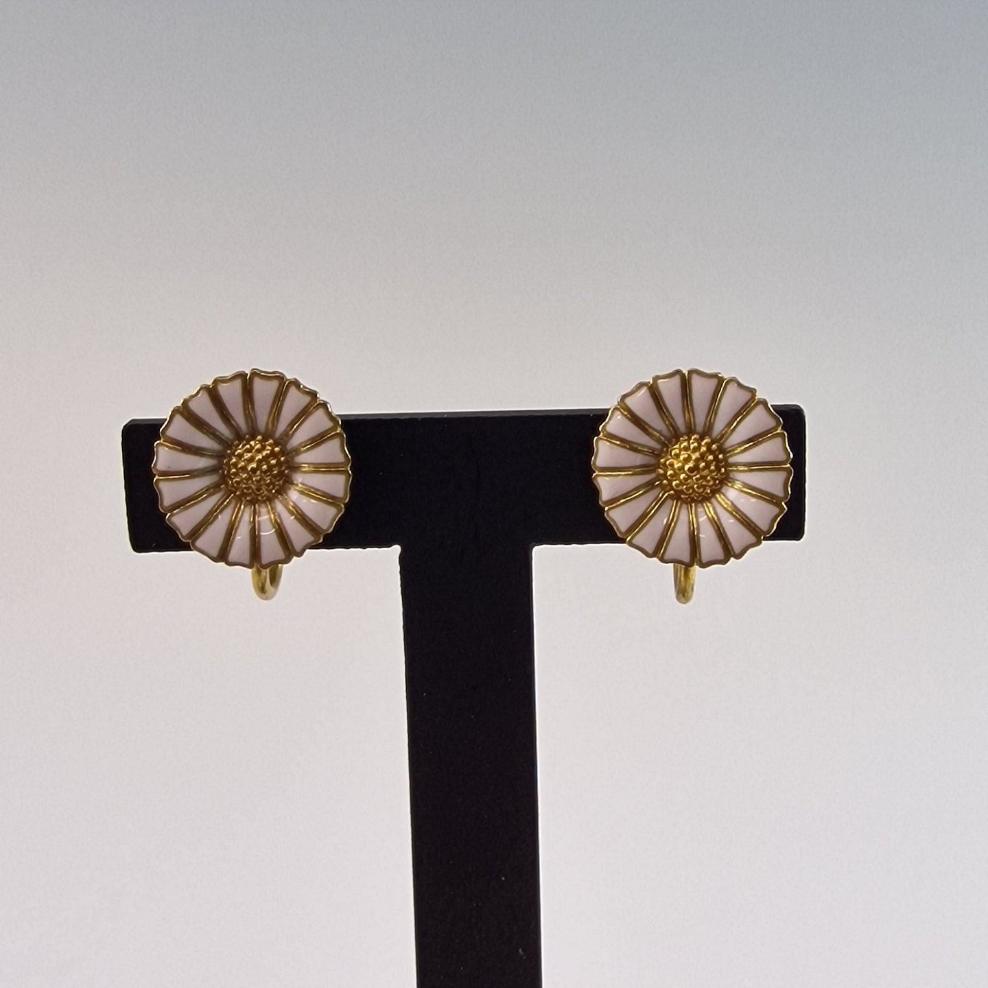 Margueritøreringe med skruelås af guldbelagt sterling sølv. Dateret til 1940erne