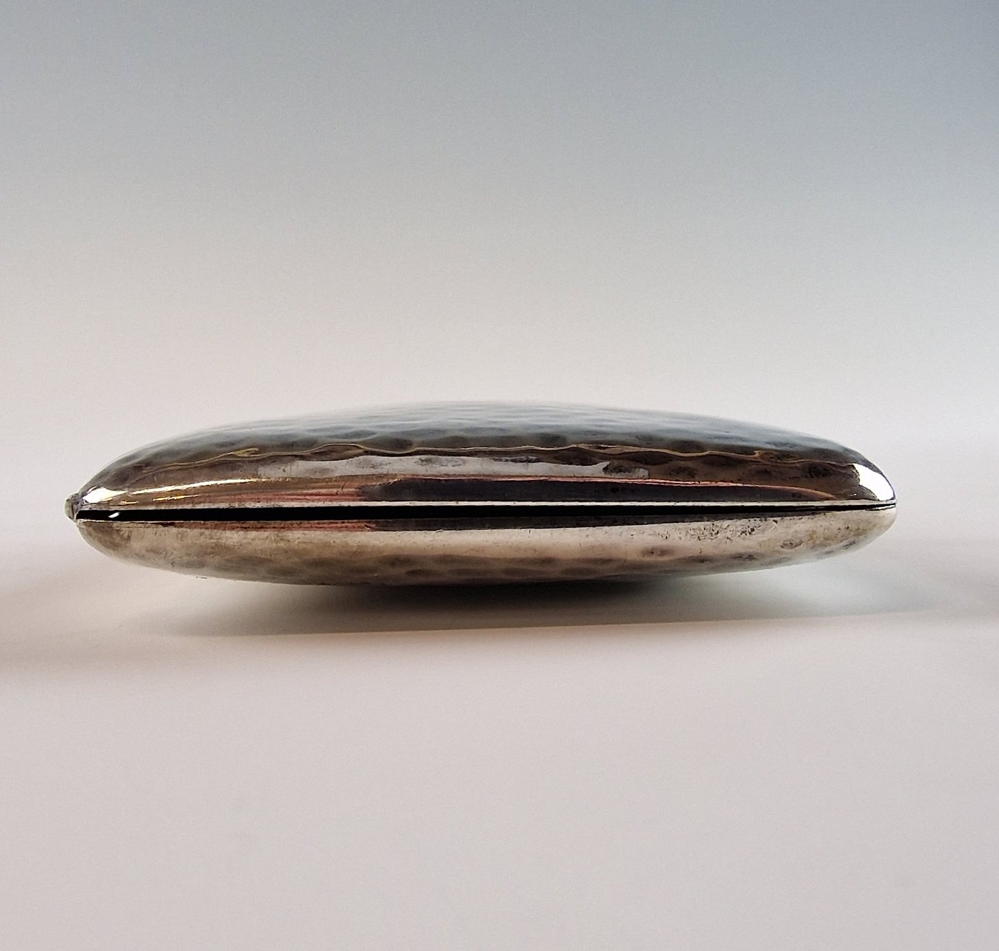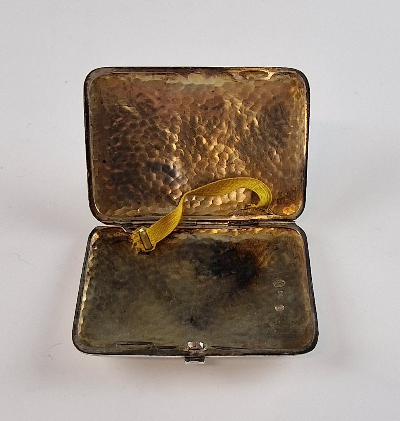 Cigaretetui i sølv med initialerne IH på forsiden.