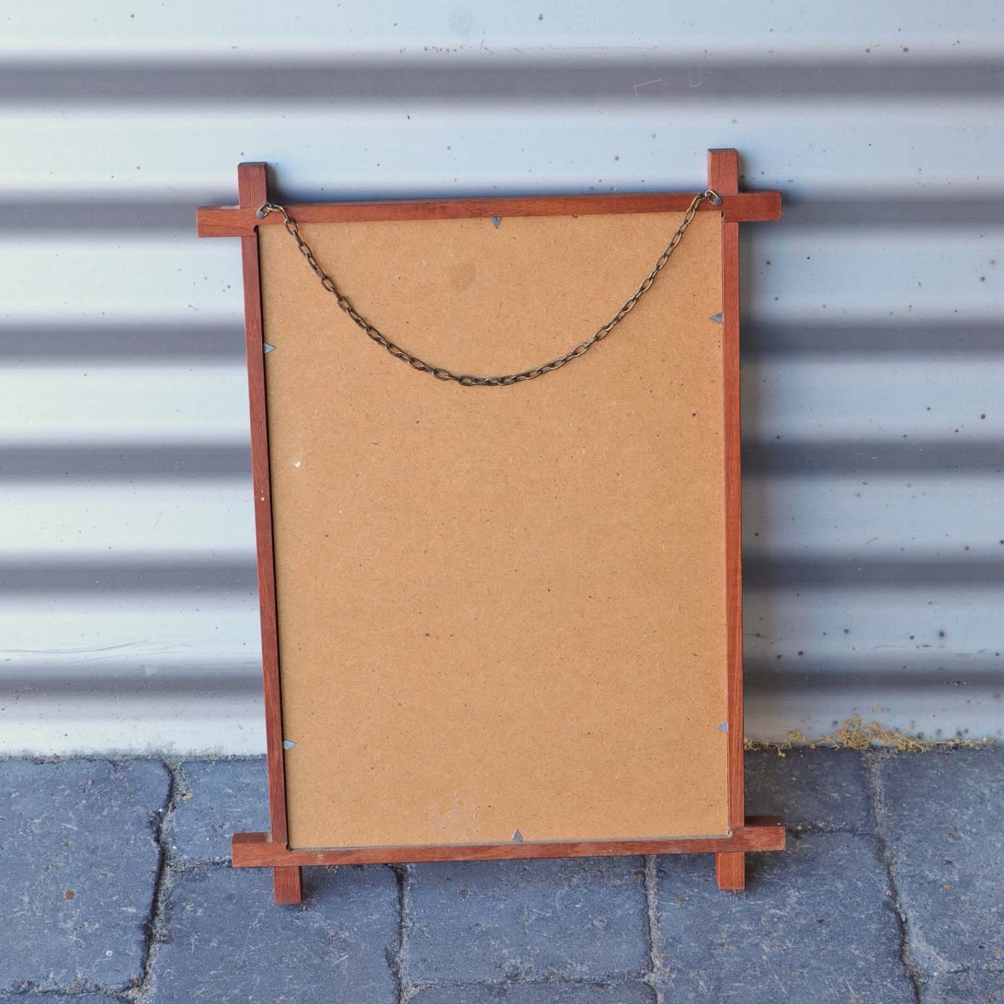 Spejl med ramme af teak og med kædeophæng