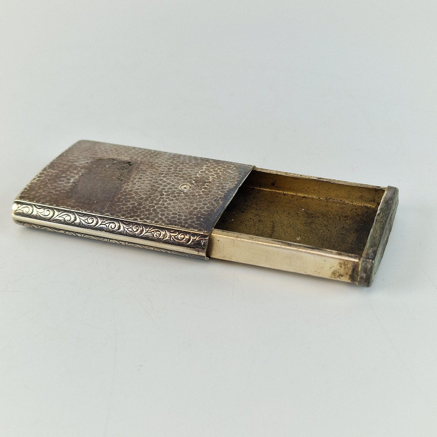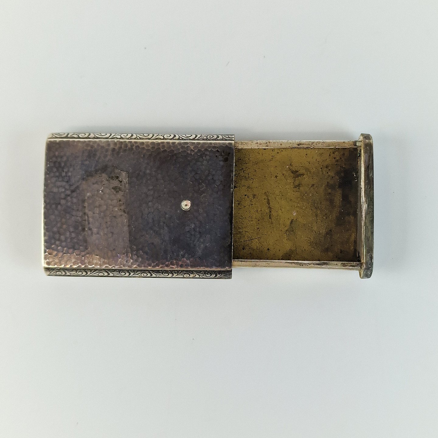 Tændstikæske med udtræksskuffe. Dekoreret med mønster på siden