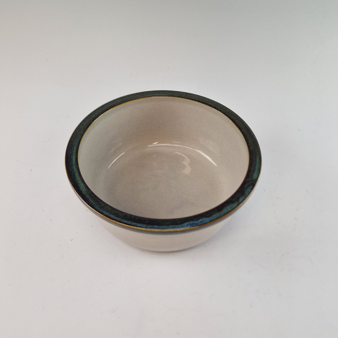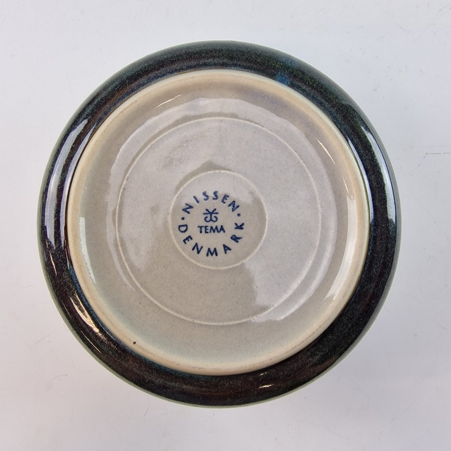 Stellet Tema er af stentøj, glaseret med lys grå og dekoreret med kanter af grønne og brune farver