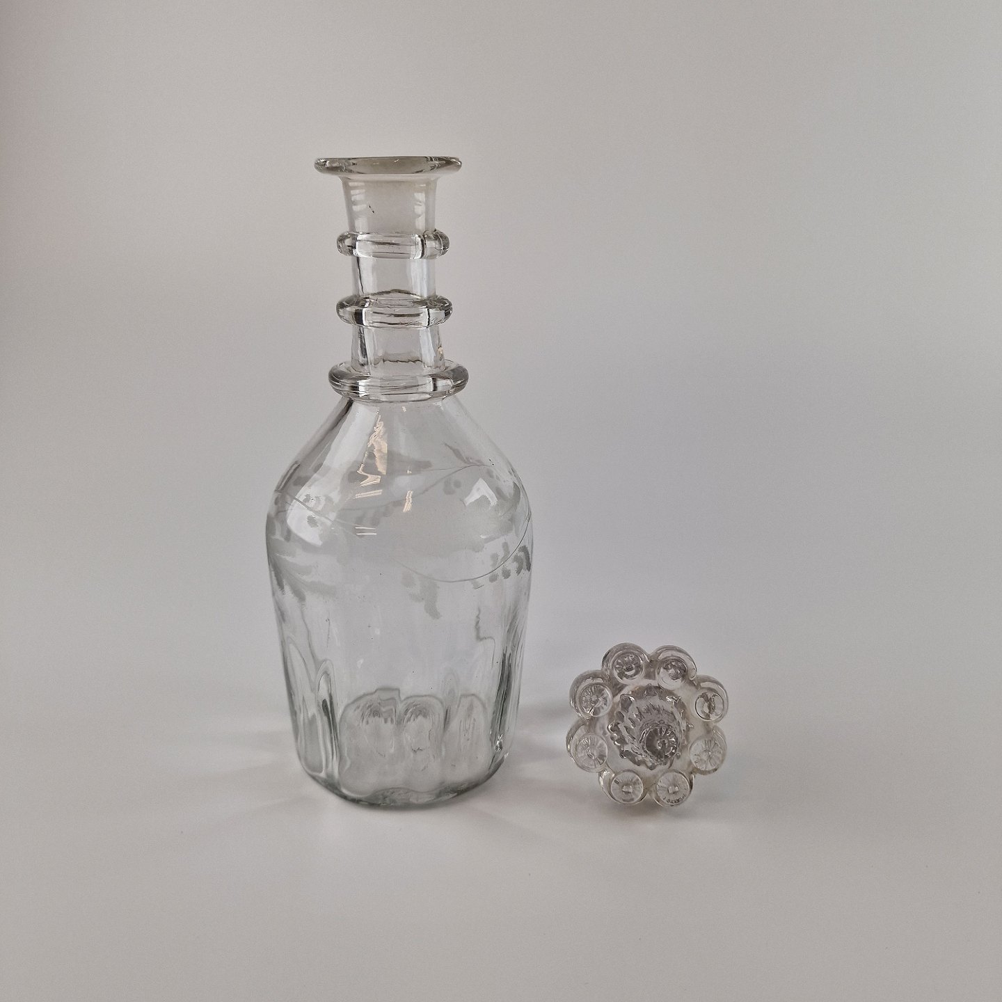 Glaskaraffel med låg med spids top.