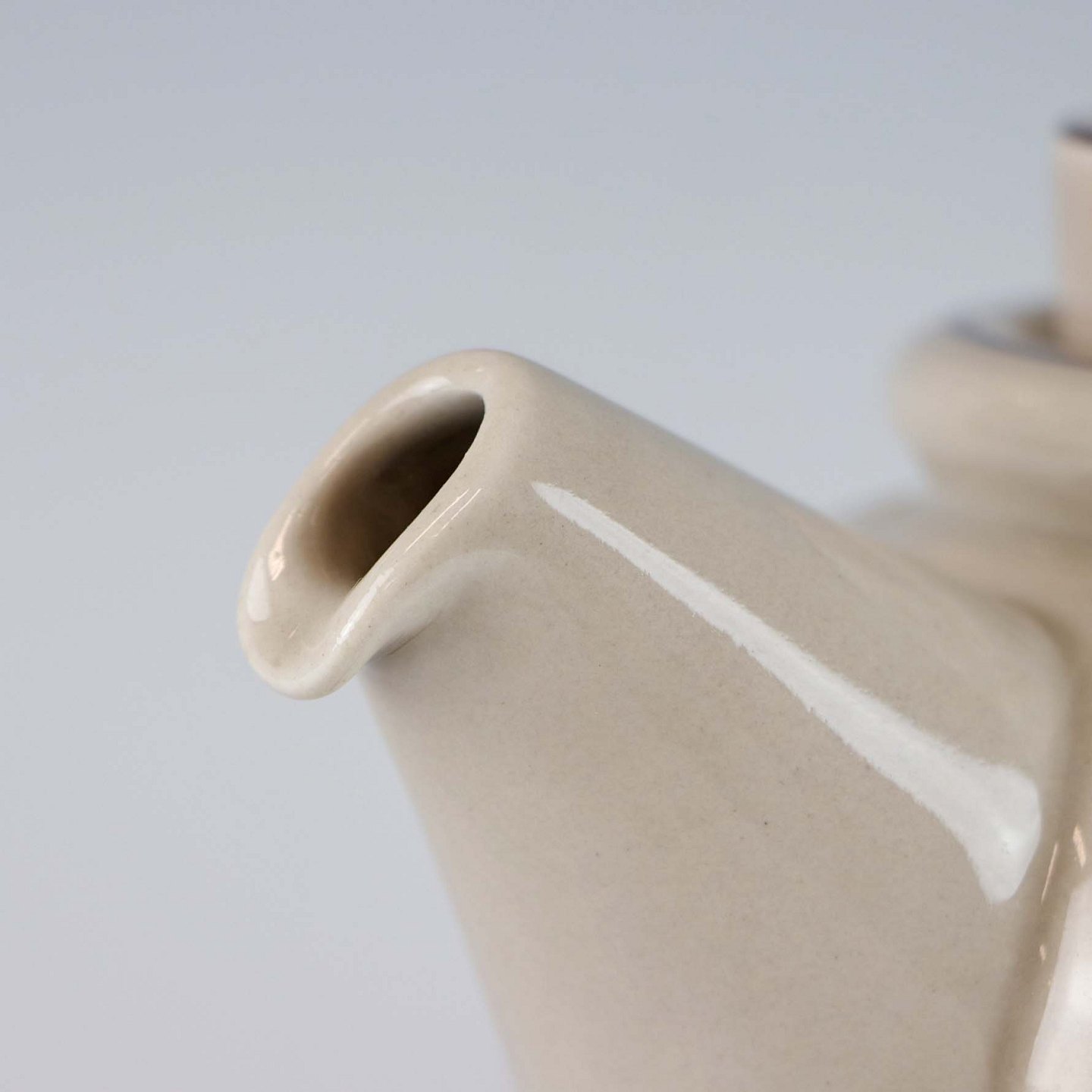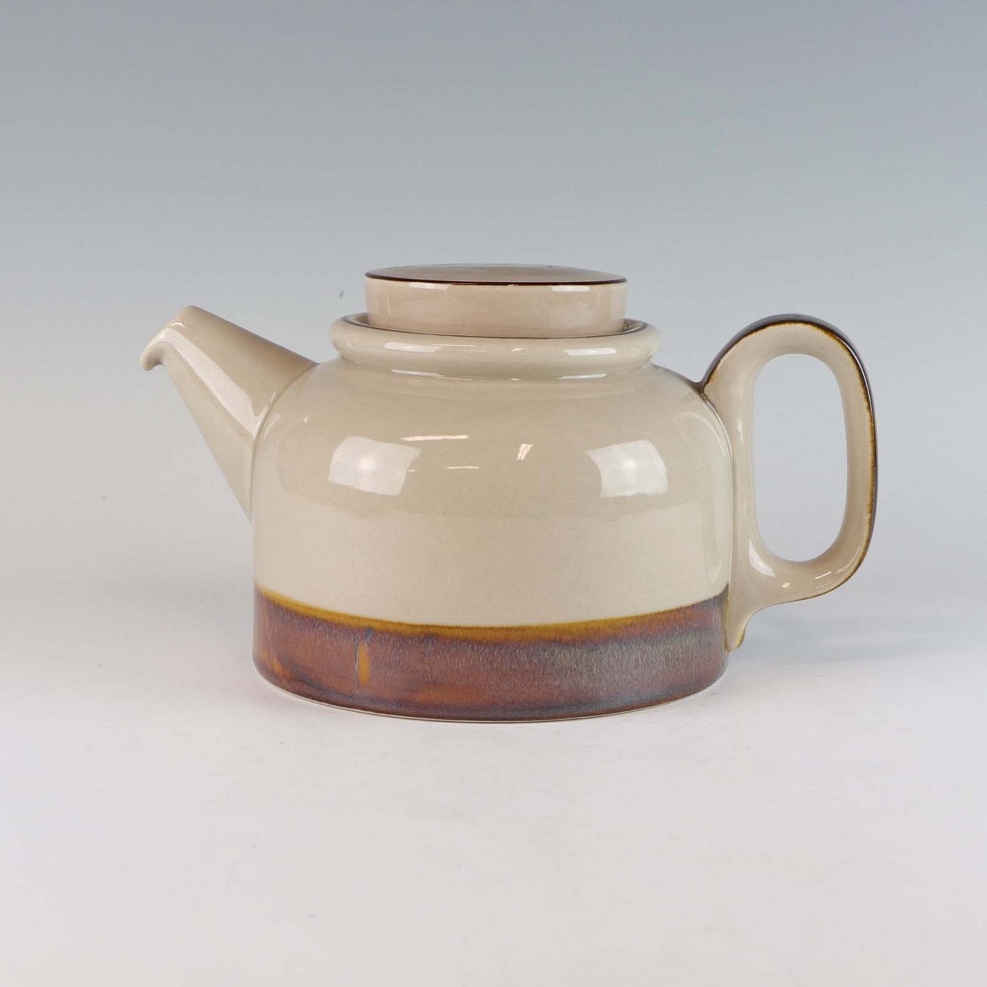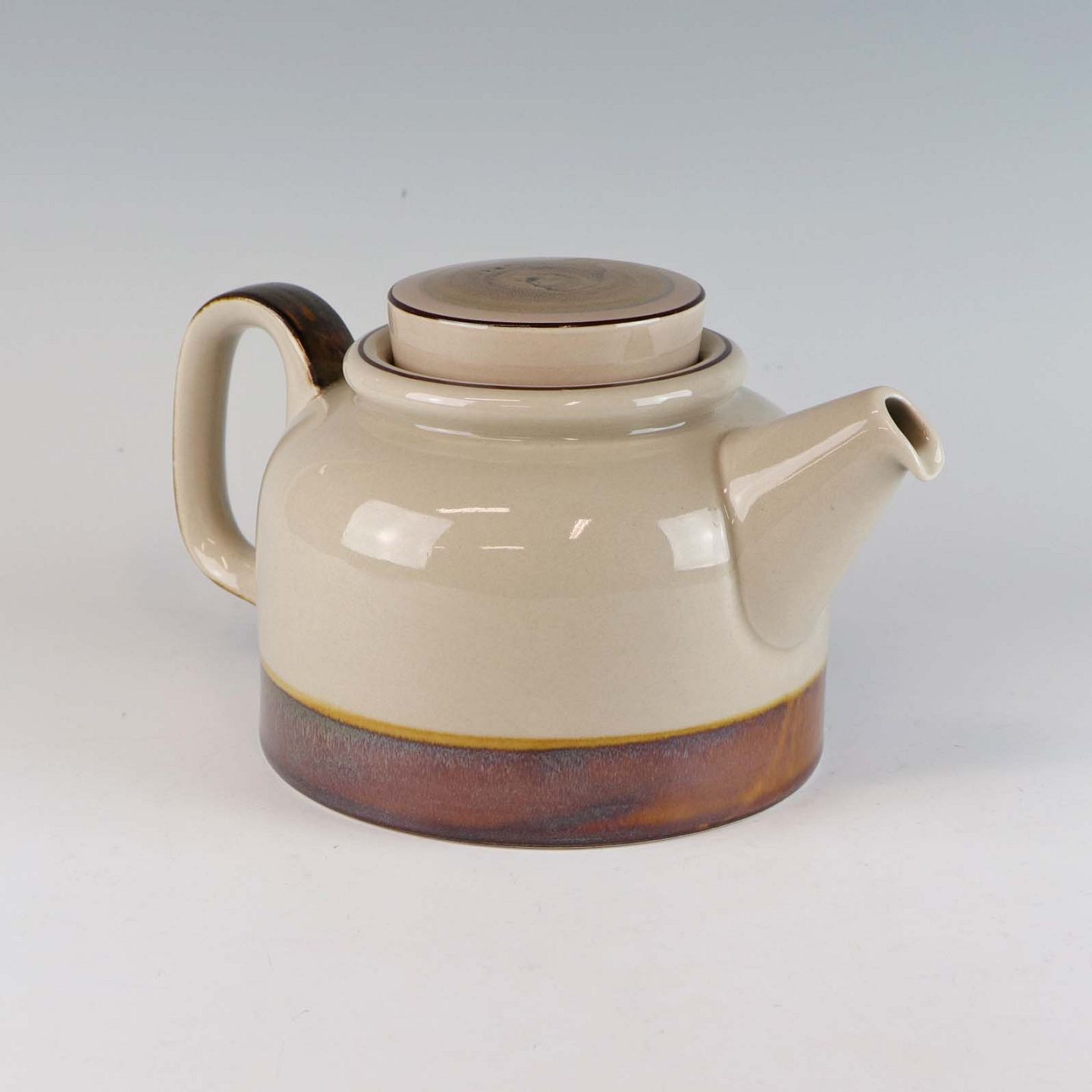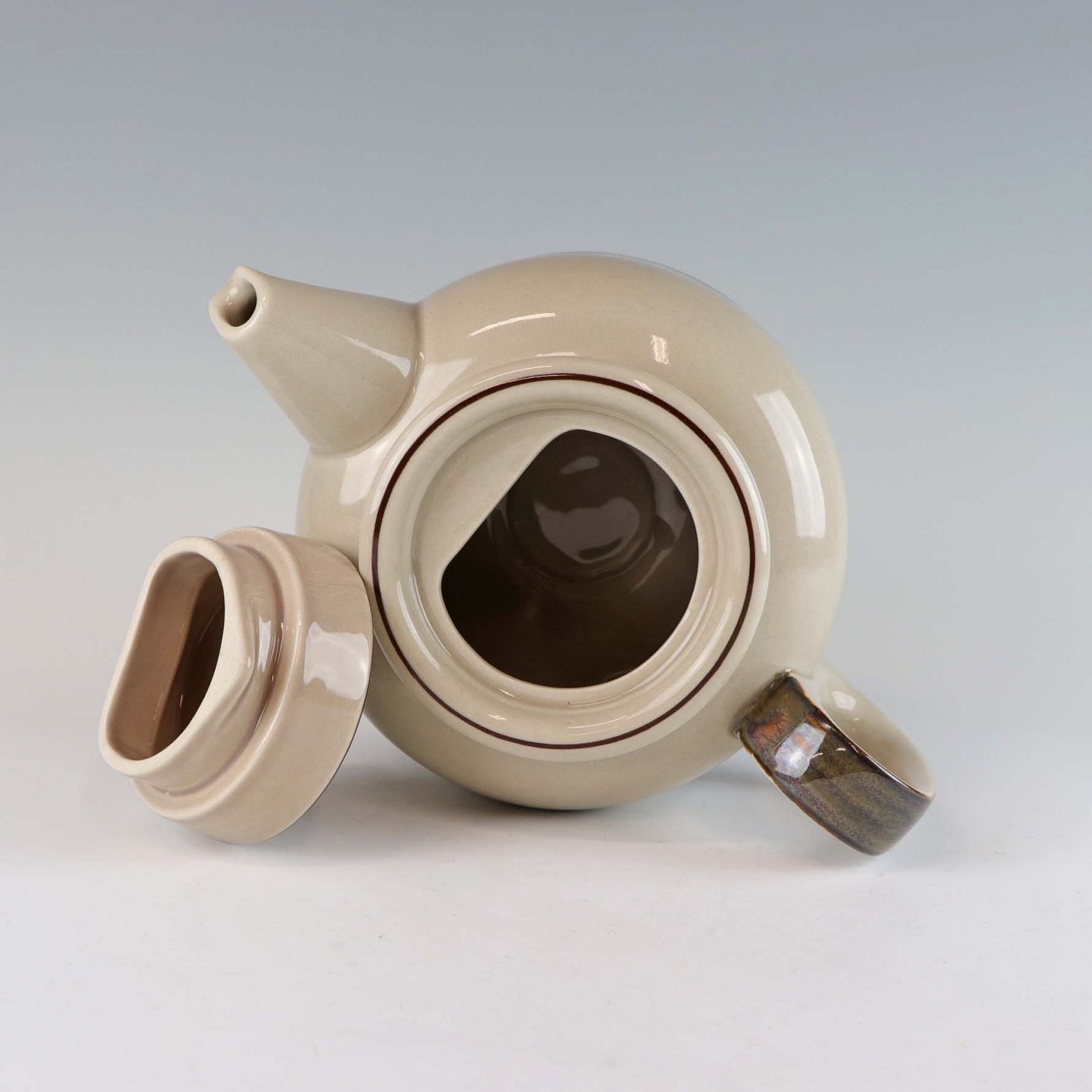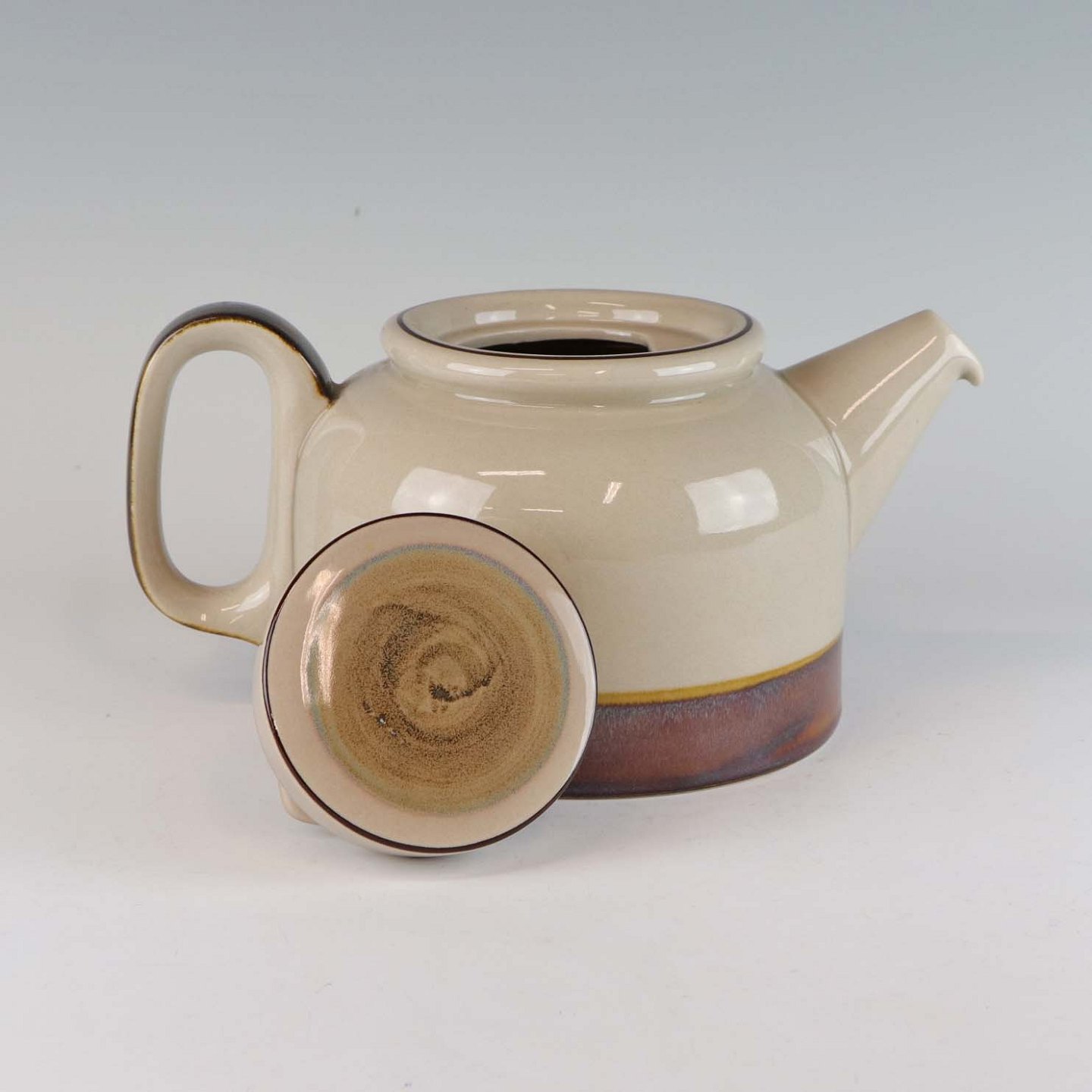 Stellet Peru er af stentøj, glaseret med lys grå farve og dekoreret med bånd af grøn/brunlige farve