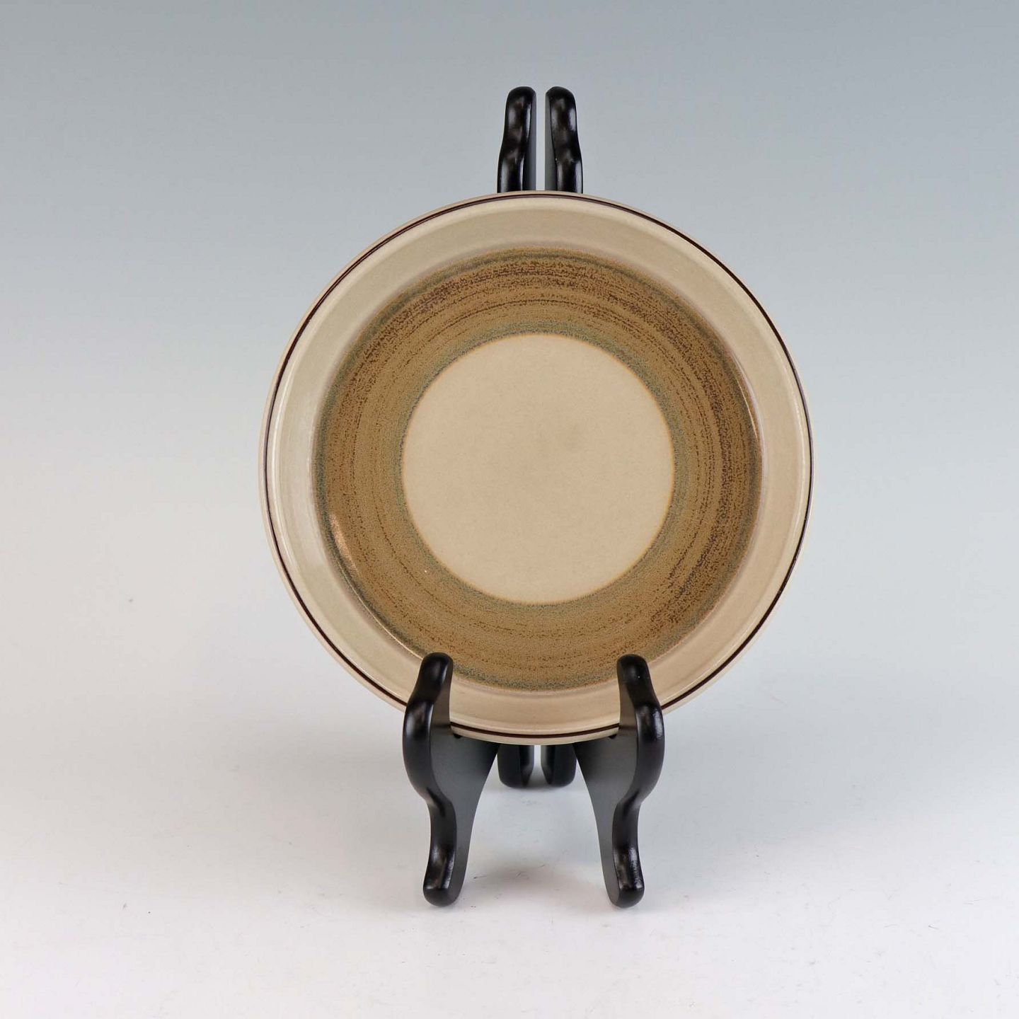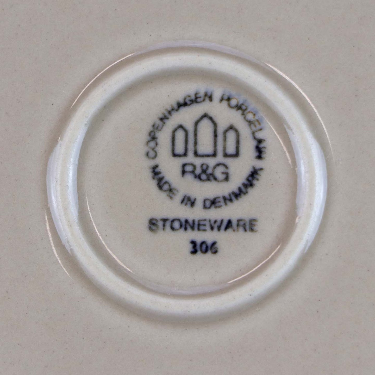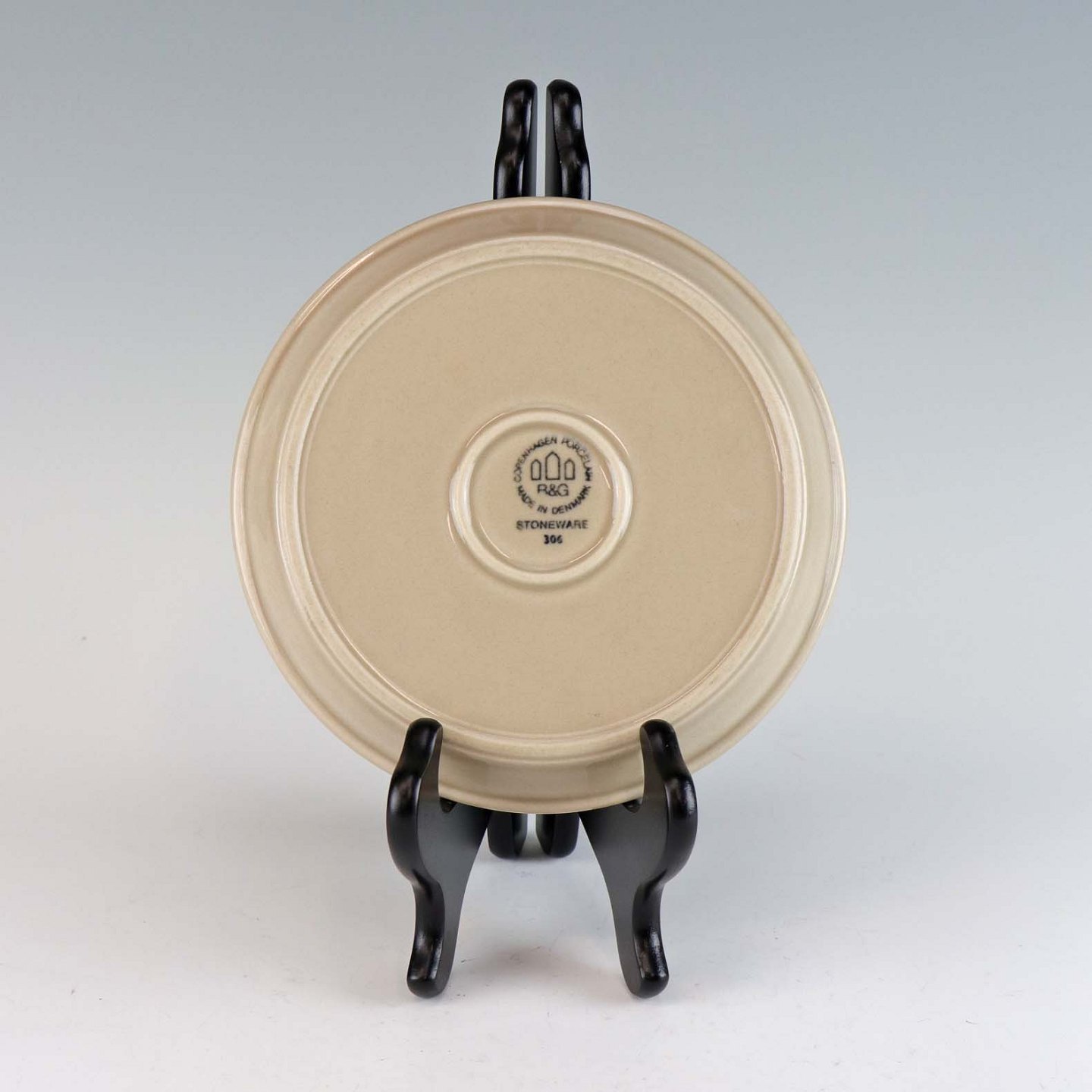 Stellet Peru er af stentøj, glaseret med lys grå farve og dekoreret med bånd af grøn/brunlige farve
