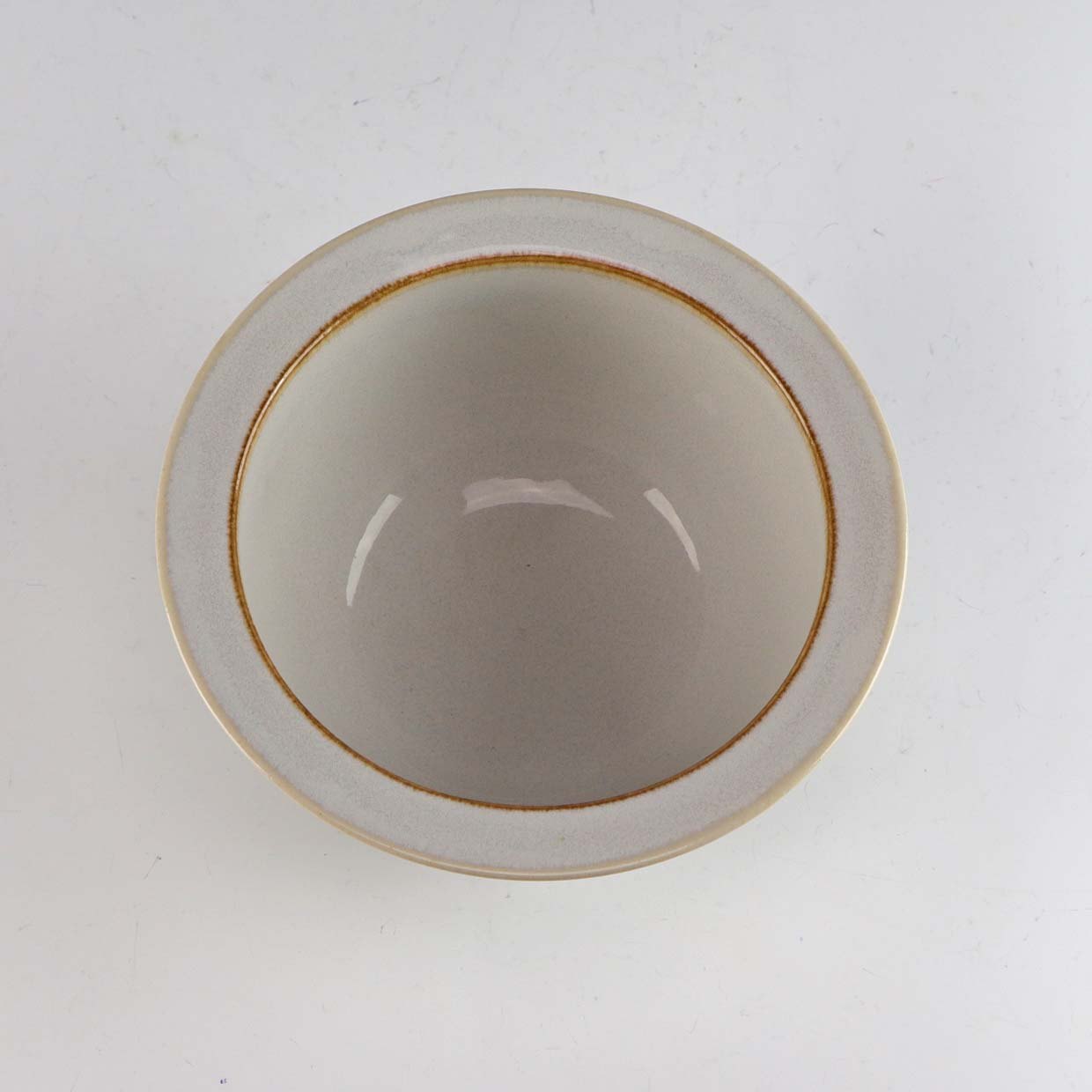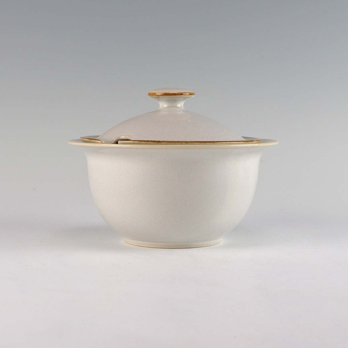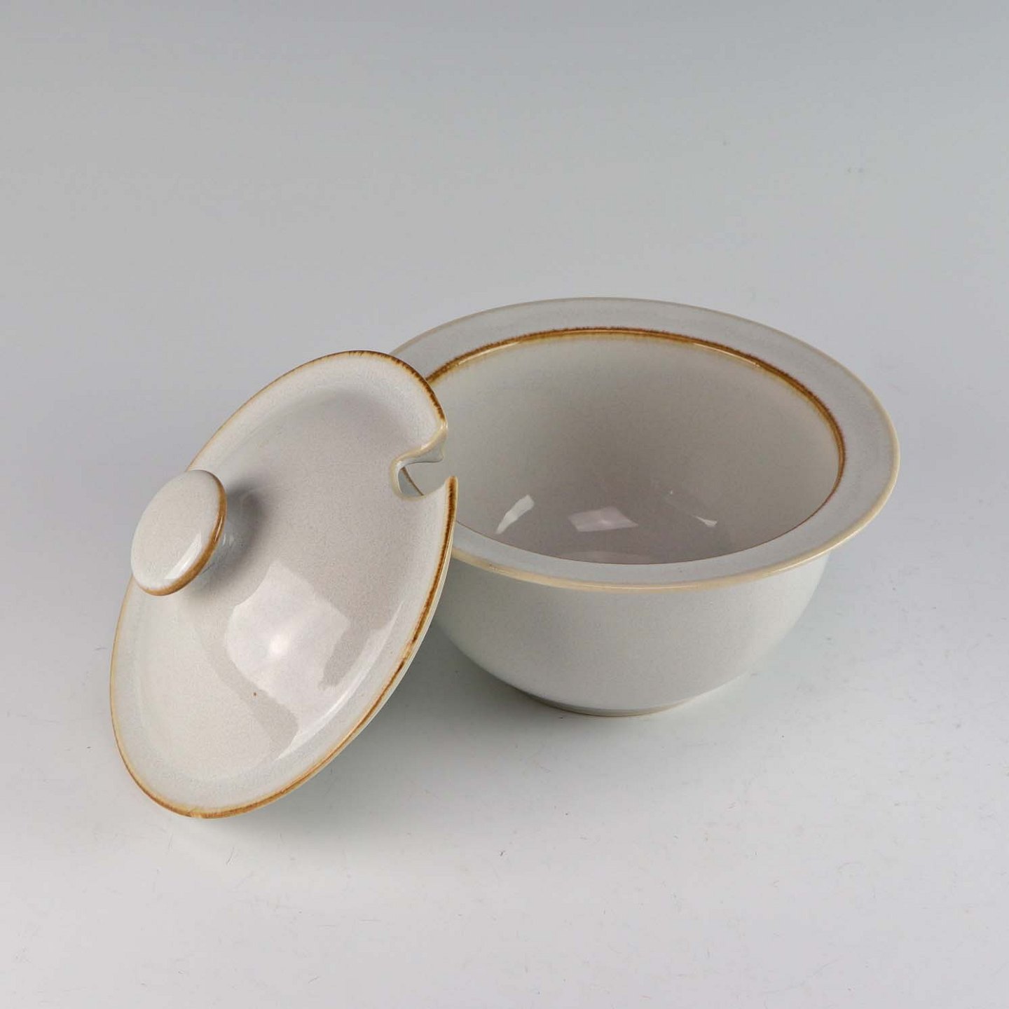 Stellet Coppelia er glaseret hvidt stentøj, dekoreret med kanter af lys brun farve