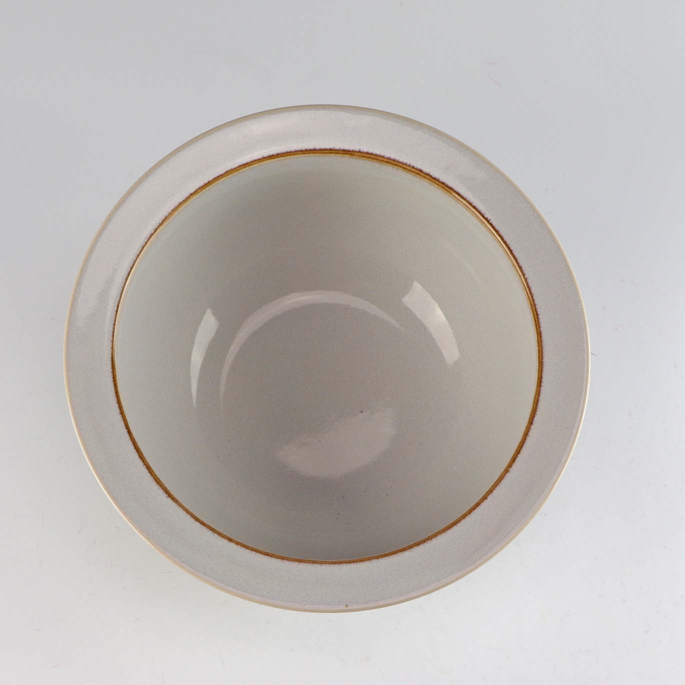 Stellet Coppelia er glaseret hvidt stentøj, dekoreret med kanter af lys brun farve