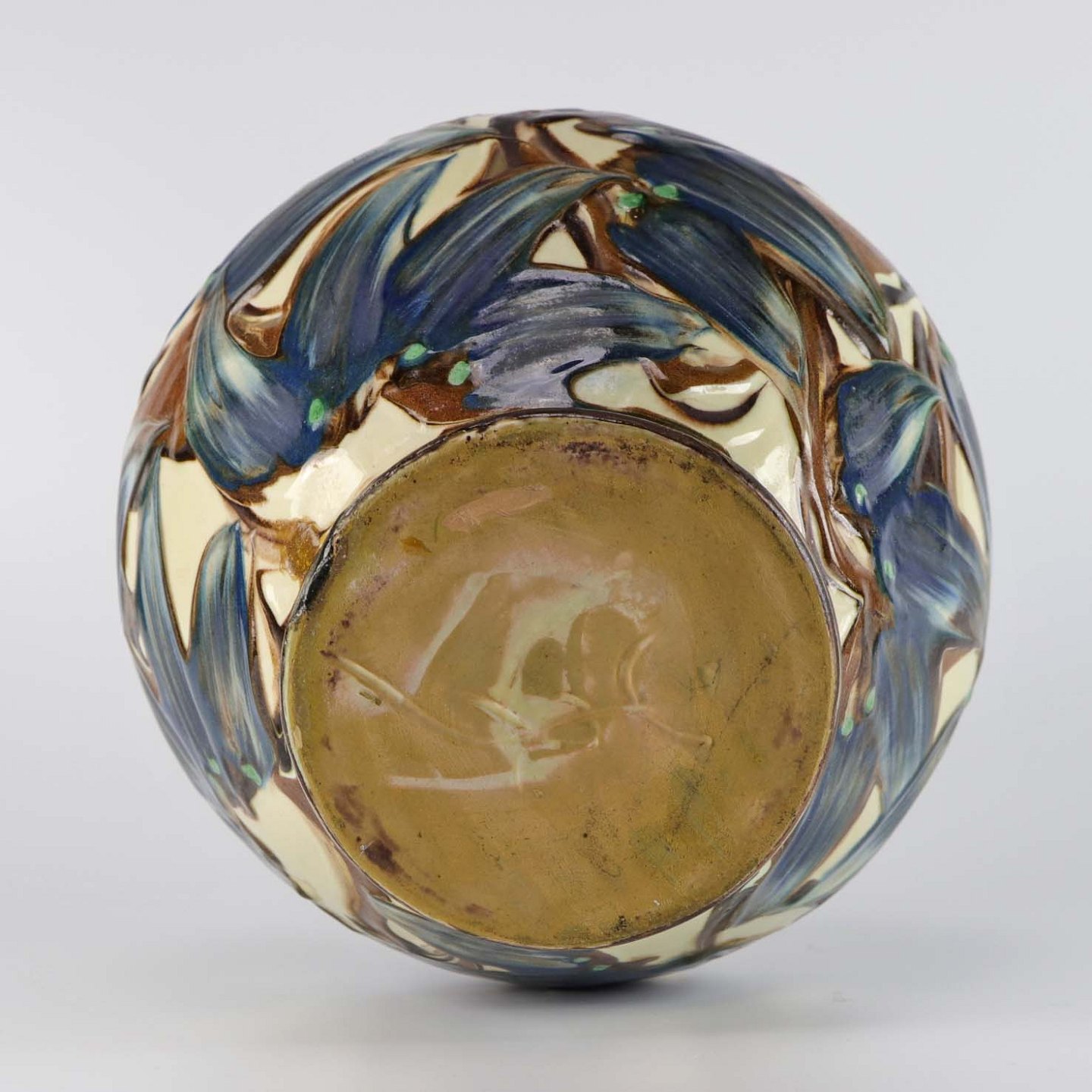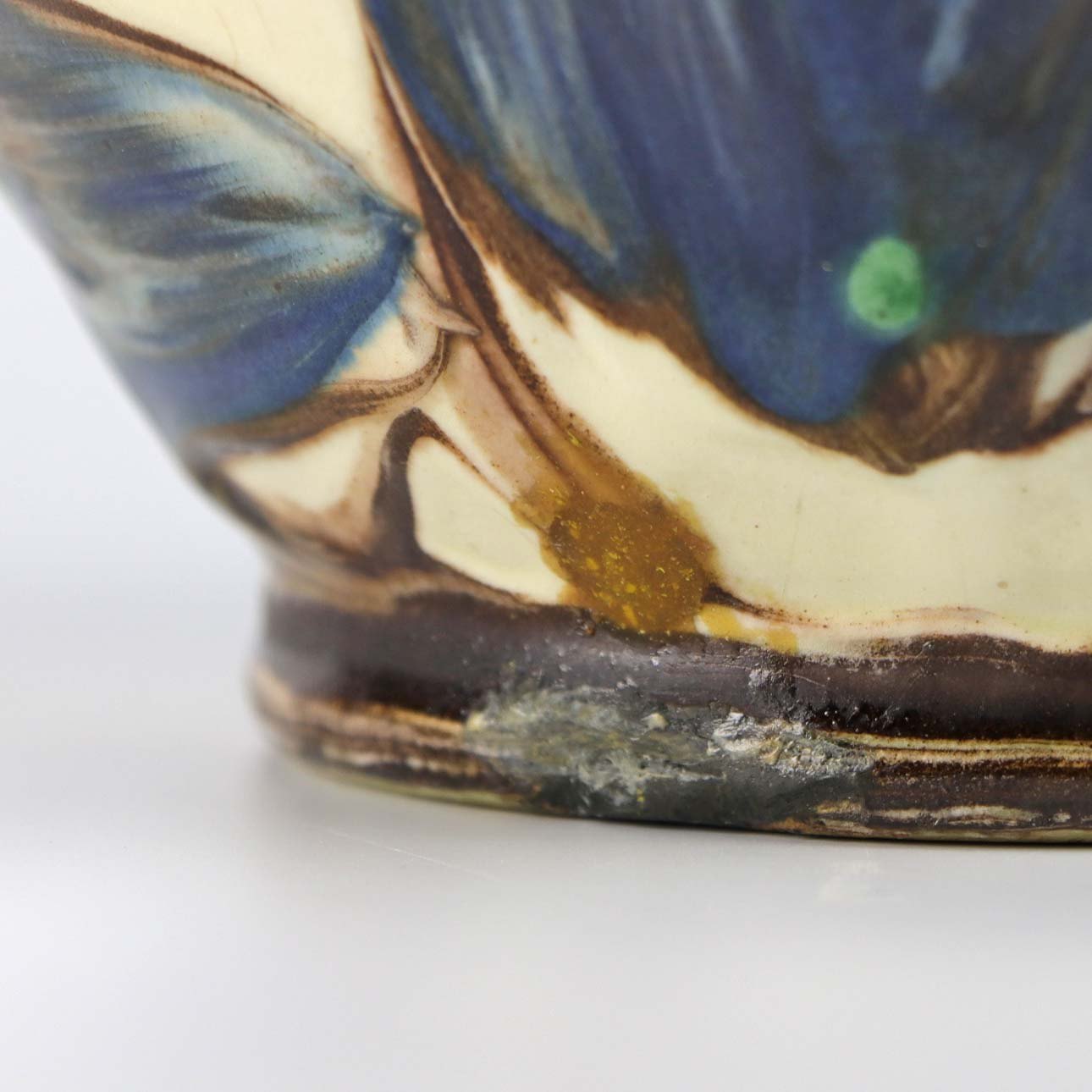 Vase af keramik med kohornsglasur i blå, brun og cremefarvet
