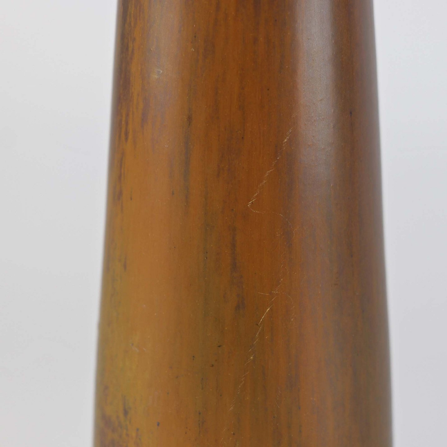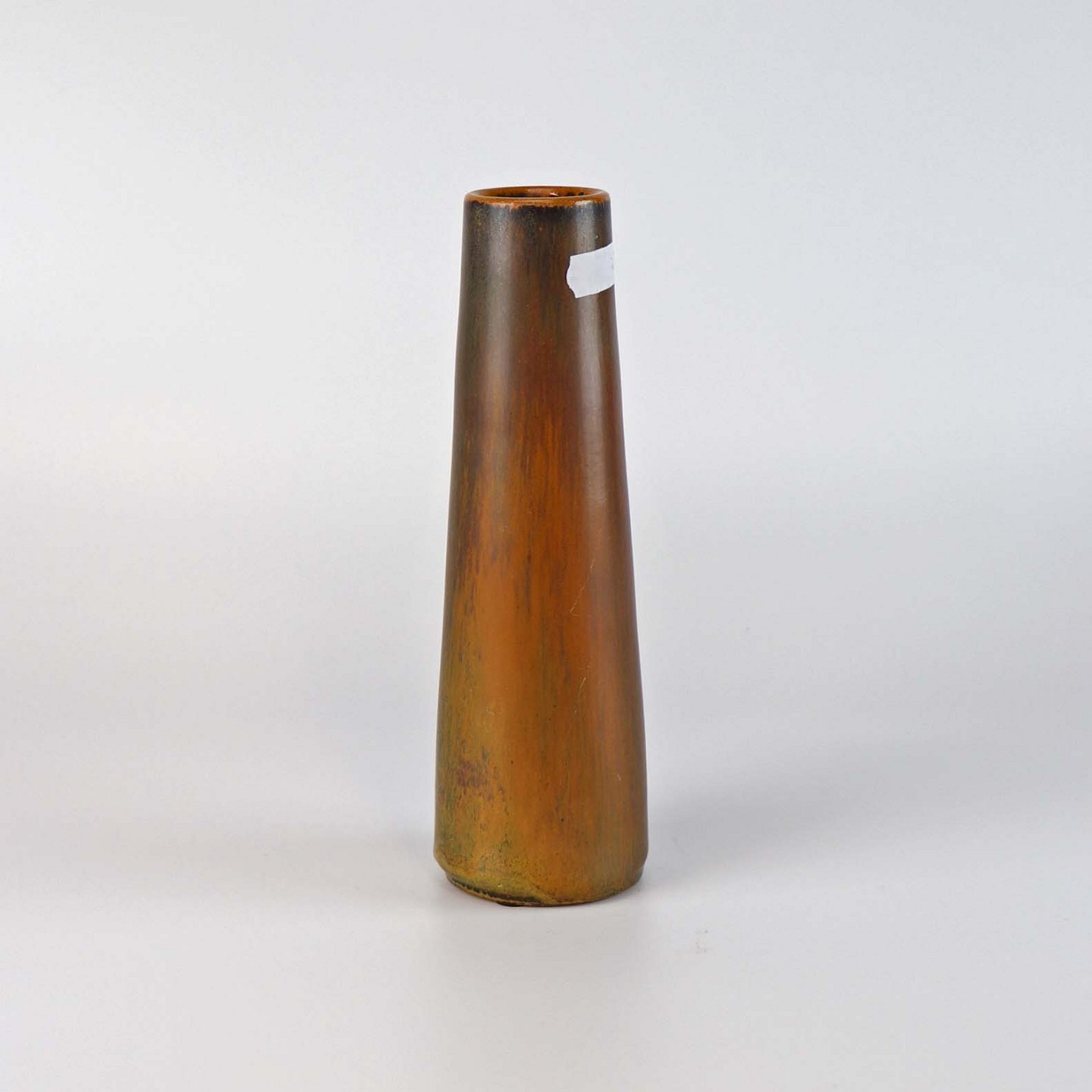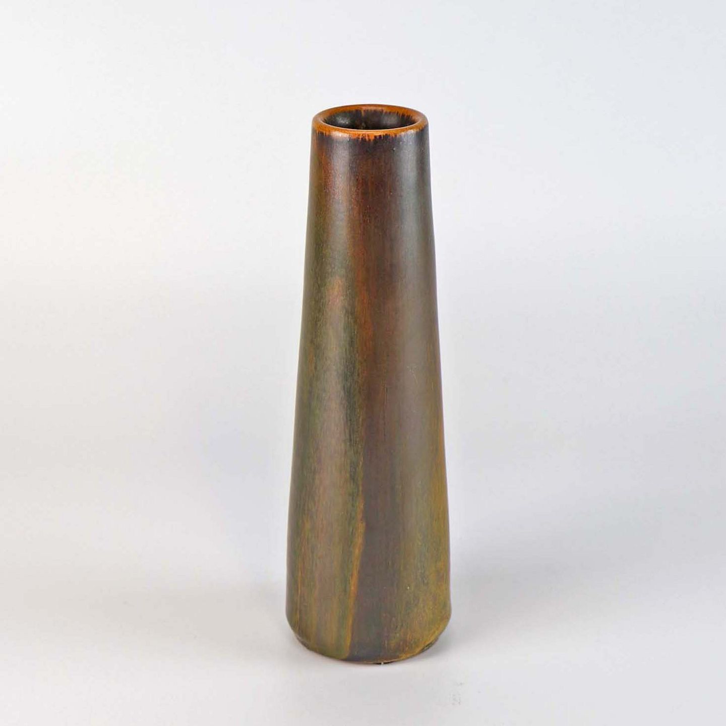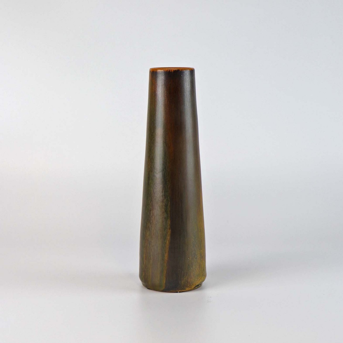 Høj og slank vase af stentøj i brun og rødgyldne nuancer